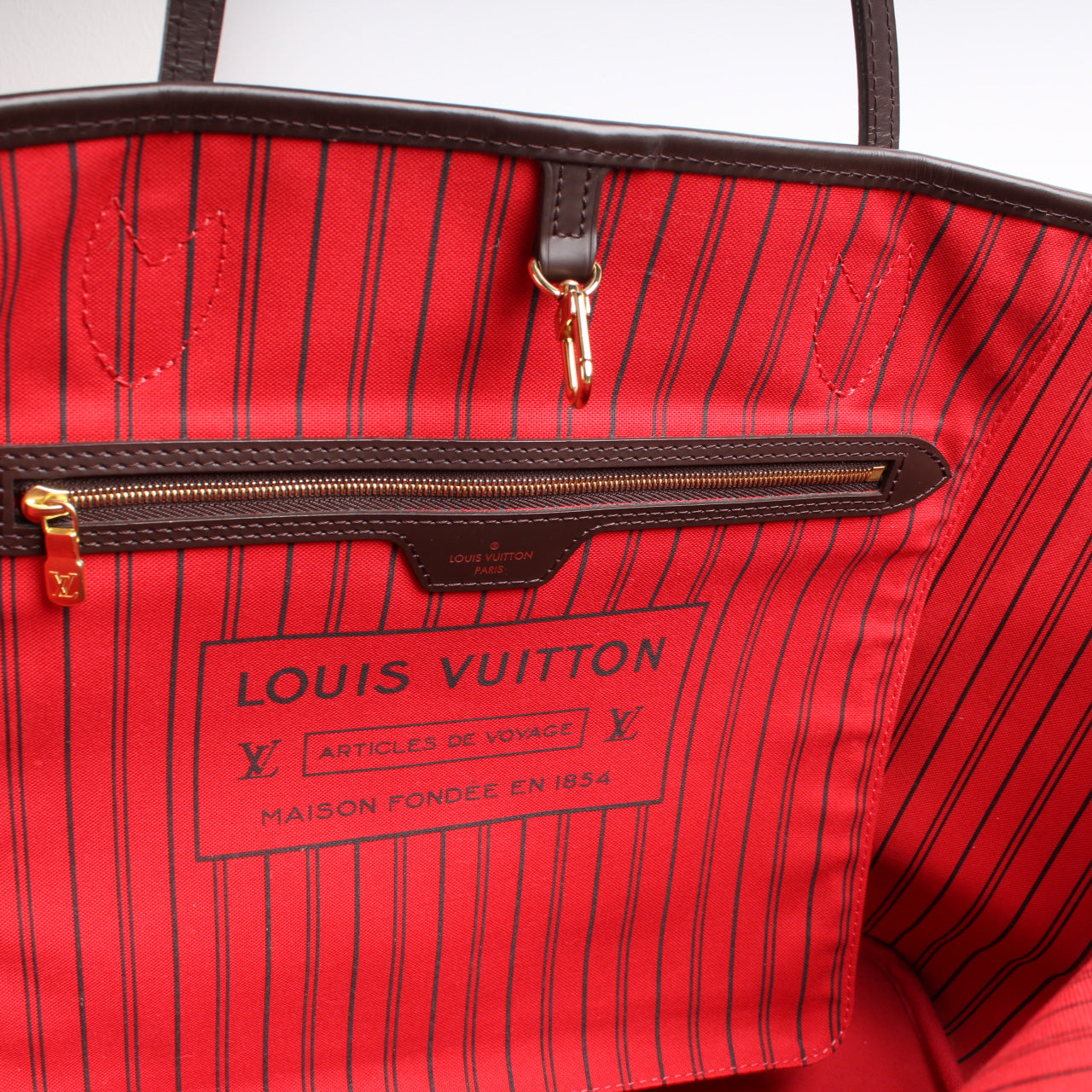 This pre-owned Louis Vuitton Neverfull GM is guaranteed 100% authentic. The exterior is in the classic Louis Vuitton Damier Ebene coated canvas.