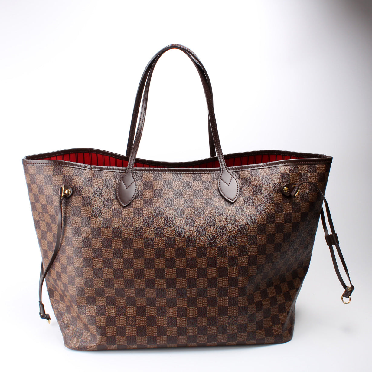 This pre-owned Louis Vuitton Neverfull GM is guaranteed 100% authentic. The exterior is in the classic Louis Vuitton Damier Ebene coated canvas.