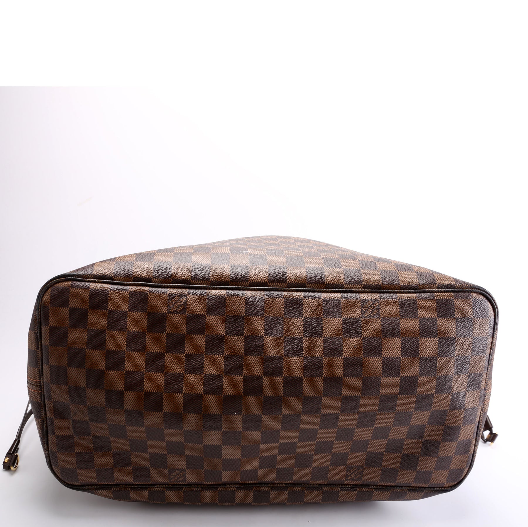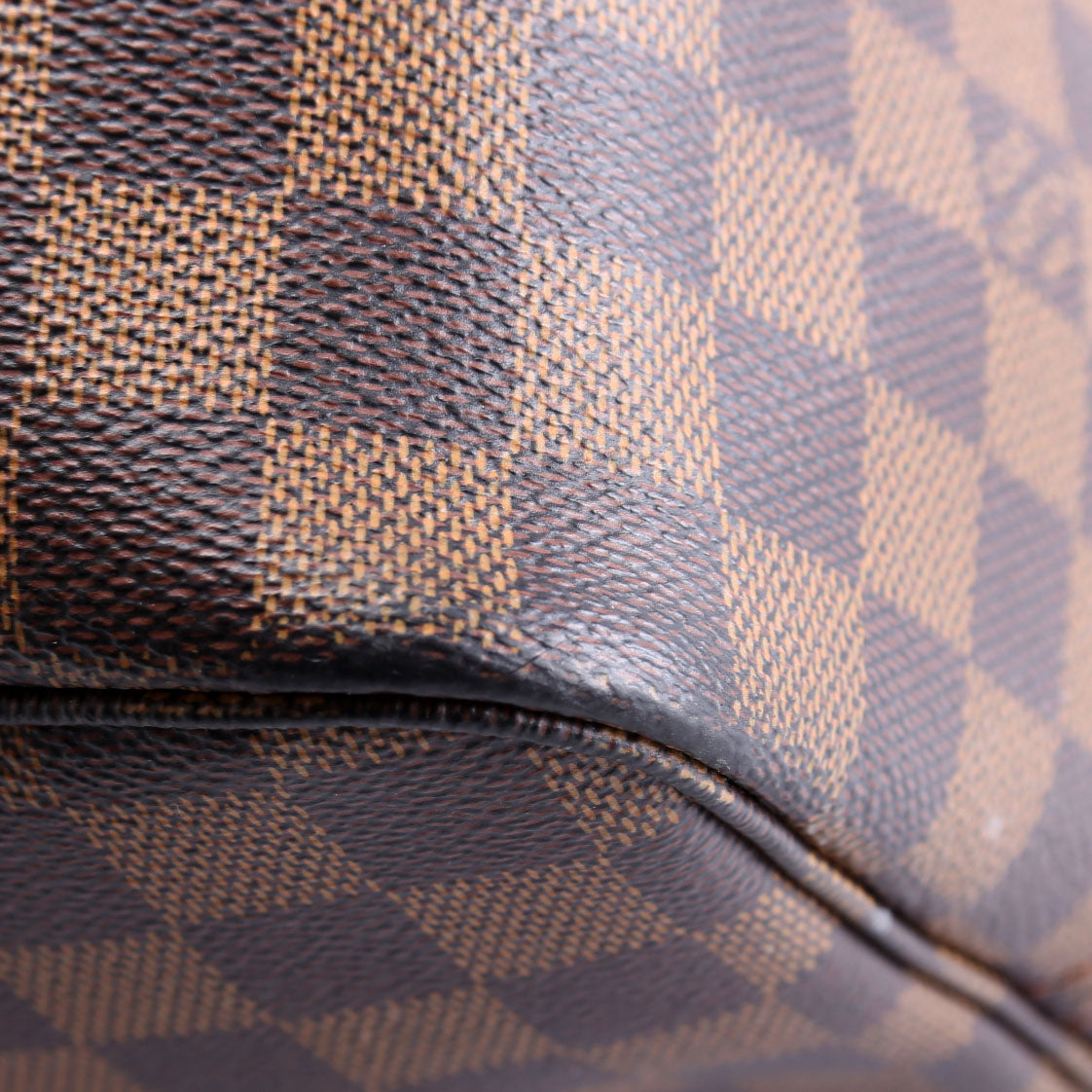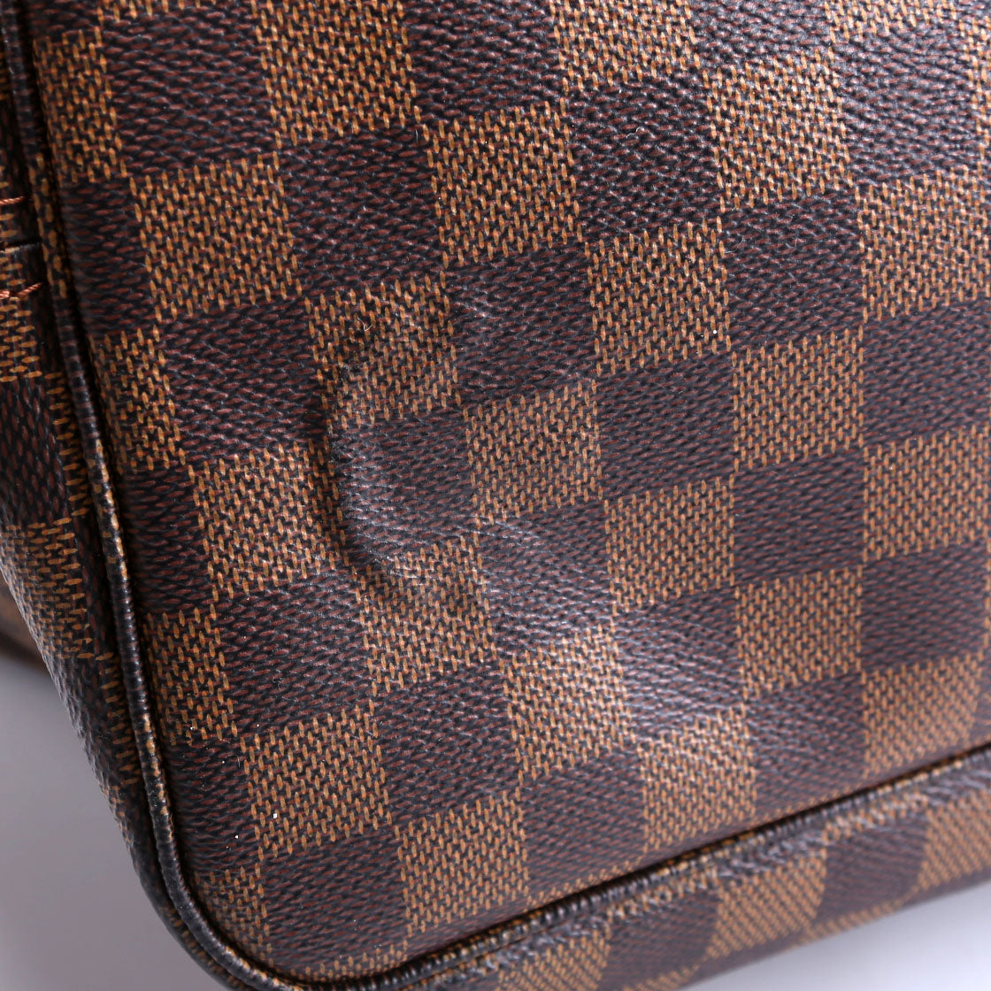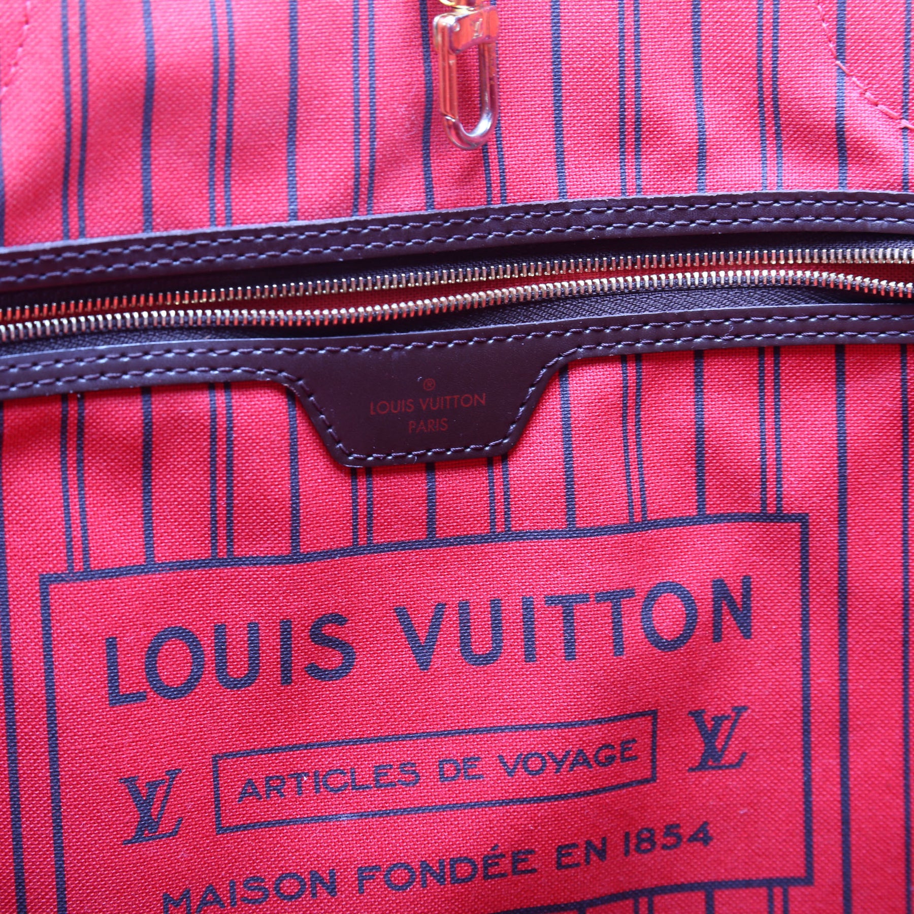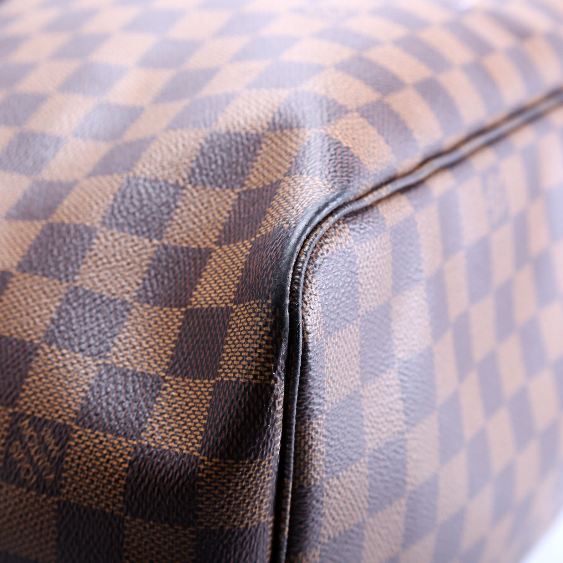 This pre-owned Louis Vuitton Neverfull W/Wallet GM is guaranteed 100% authentic. The exterior is in the classic Louis Vuitton Damier Ebene coated canvas.