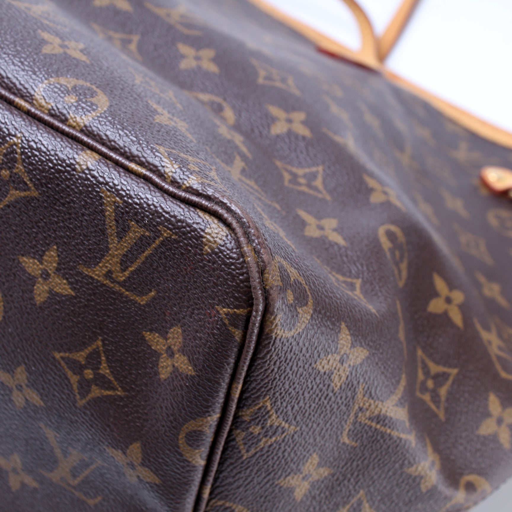 This pre-owned Louis Vuitton Neverfull GM is guaranteed 100% authentic. The exterior is in the classic Louis Vuitton Monogram coated canvas.