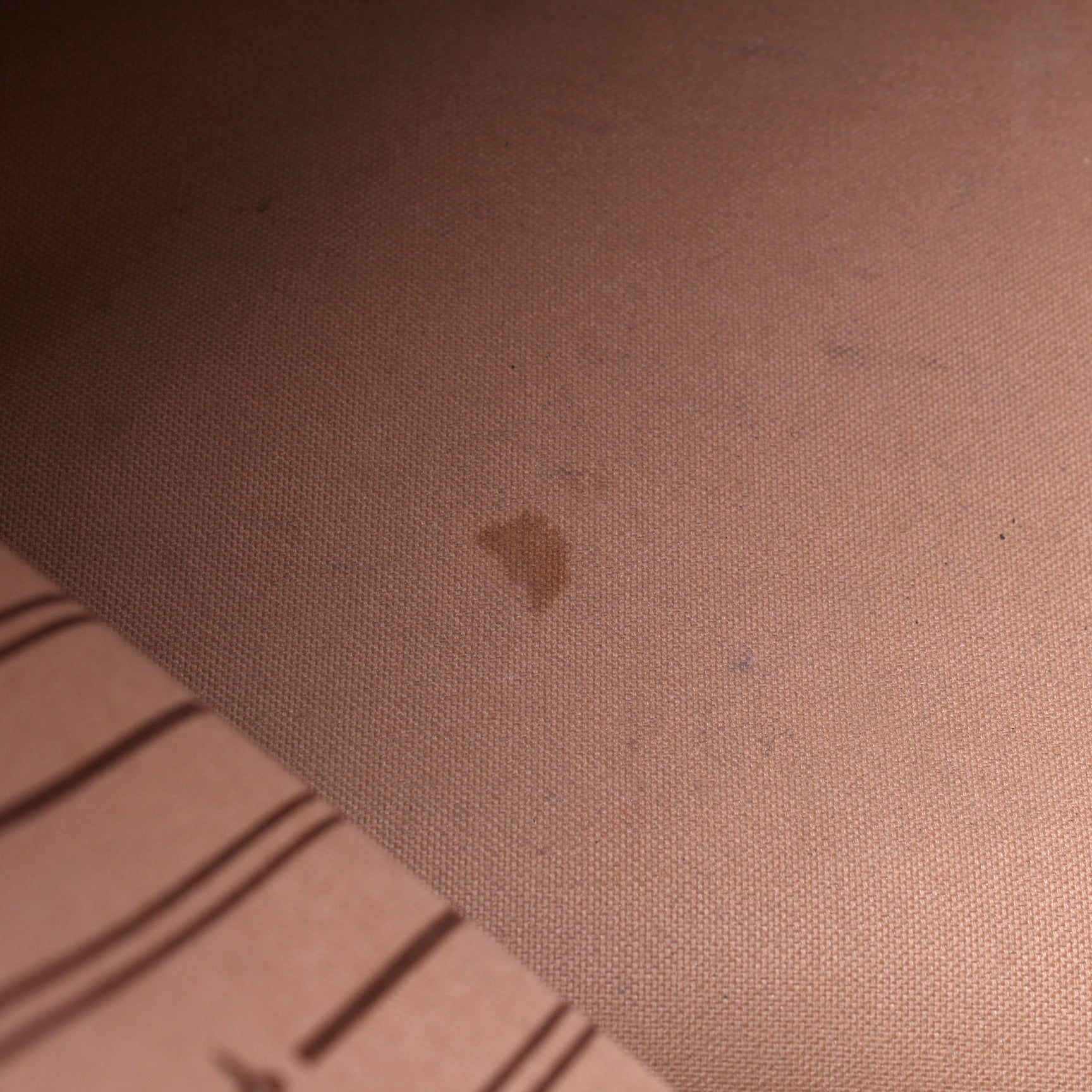 Exterior: The exterior coated canvas is free of any rips or cracks. The leather trim shows wear.