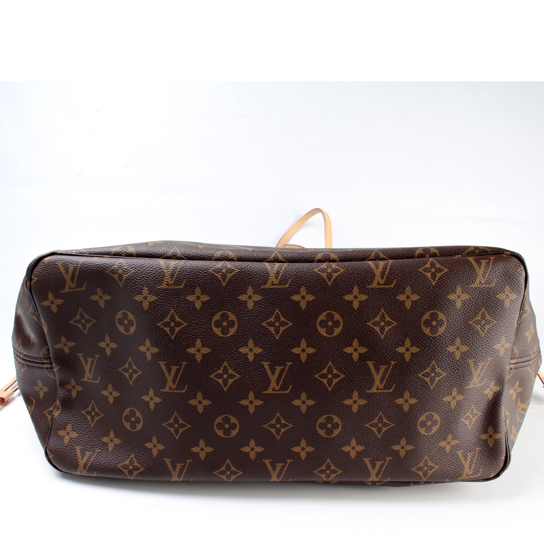 This pre-owned Louis Vuitton Neverfull GM is guaranteed 100% authentic. The exterior is in the classic Louis Vuitton Monogram coated canvas.