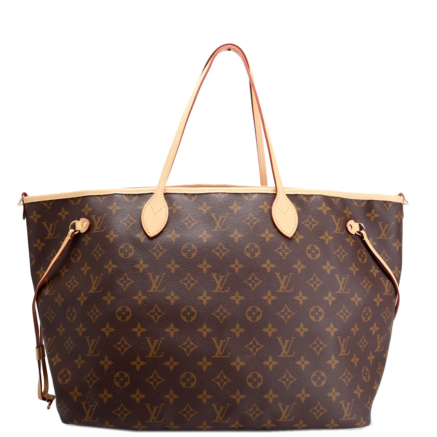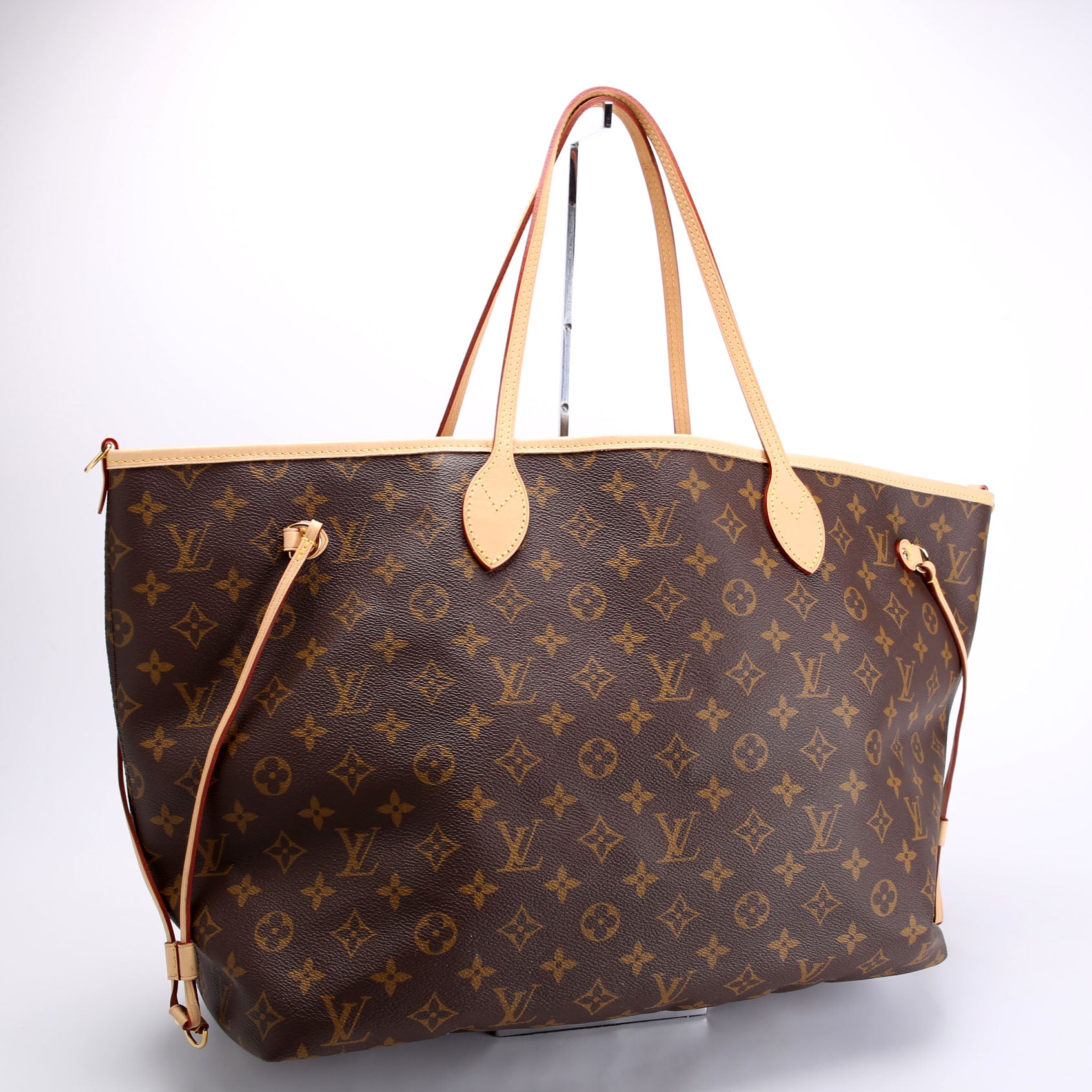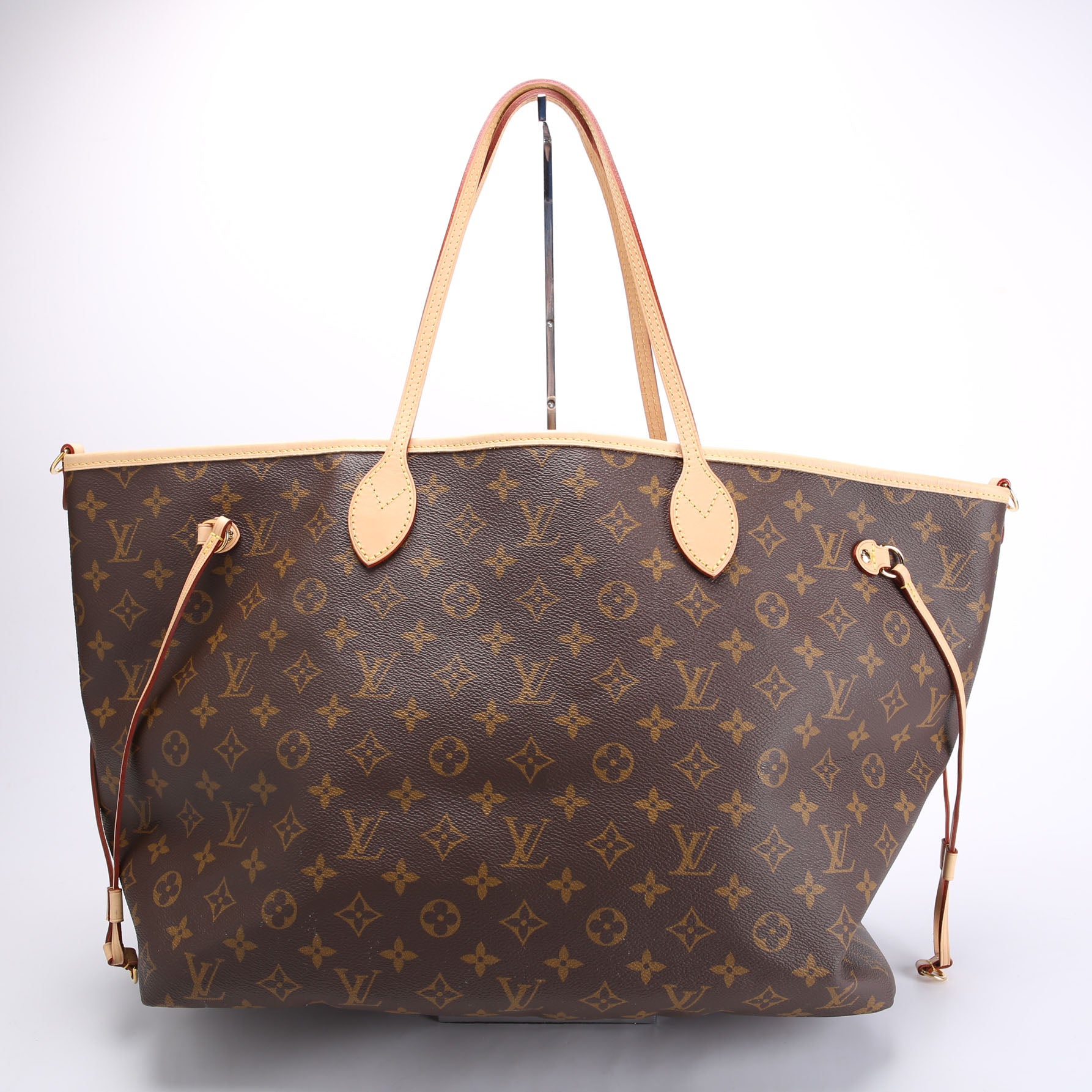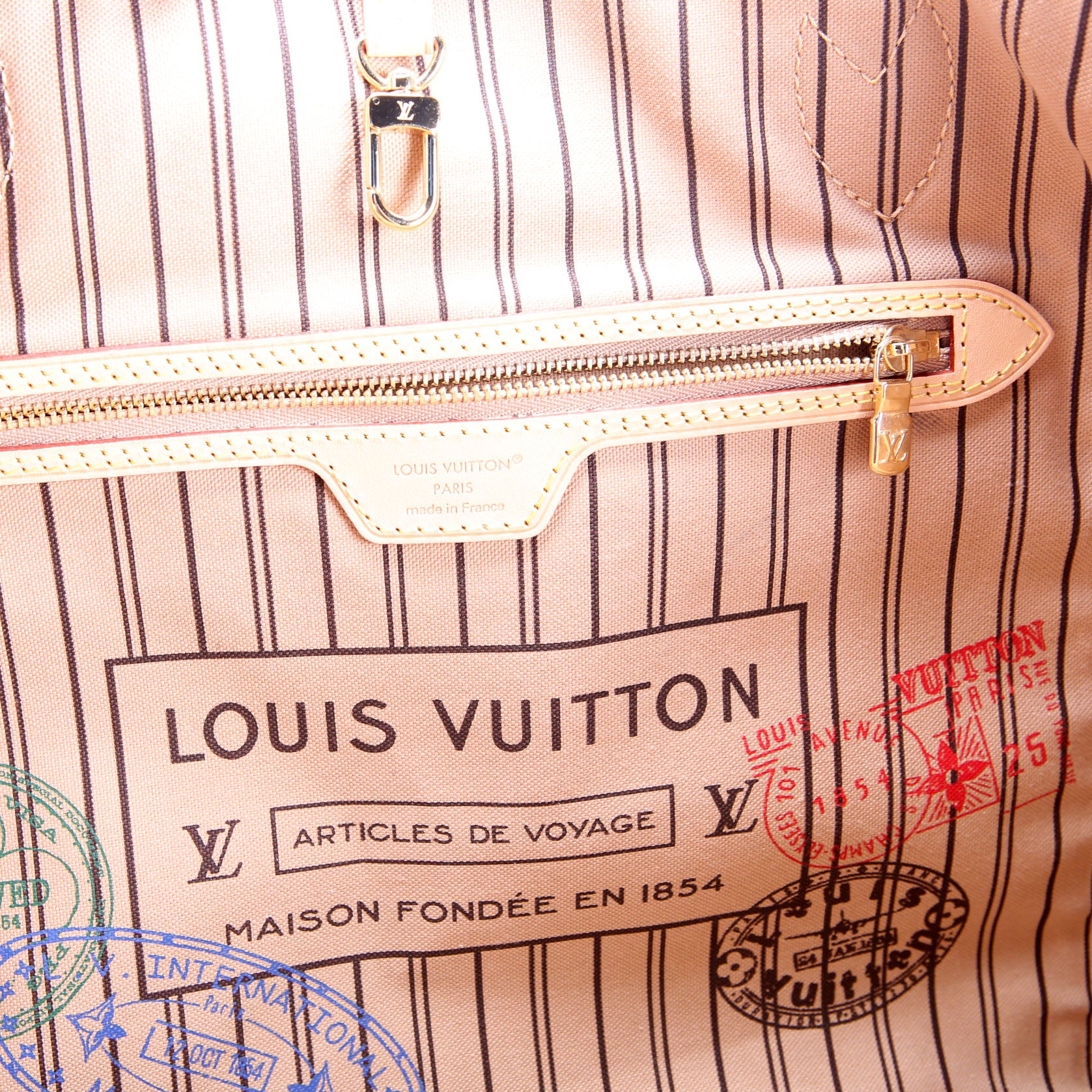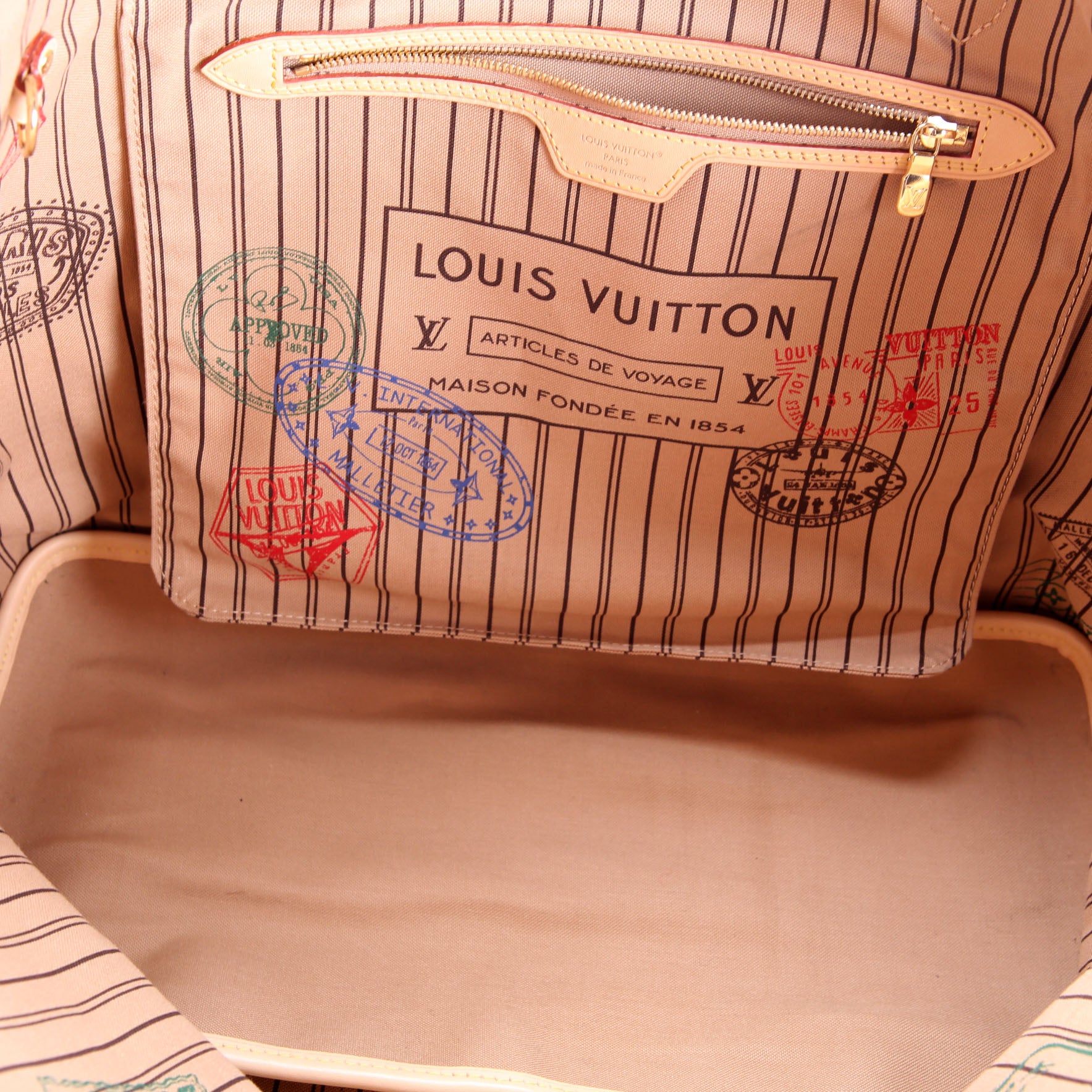 This pre-owned Louis Vuitton Neverfull GM Stamped Bando Inside Out is guaranteed 100% authentic. The exterior is in the classic Louis Vuitton Monogram coated canvas.