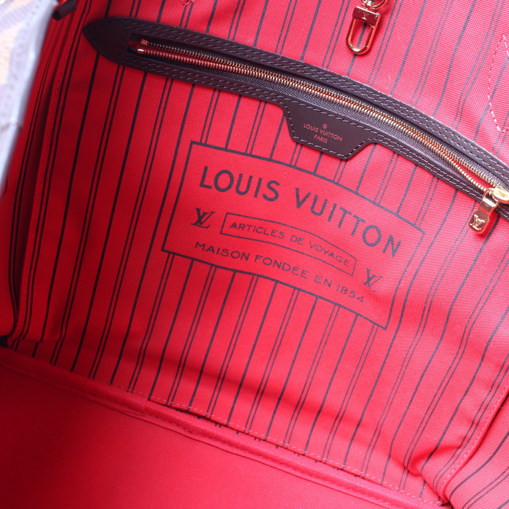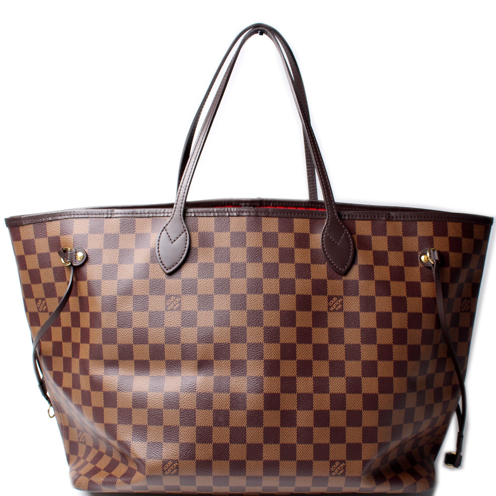 This pre-owned Louis Vuitton Neverfull GM W/Wallet is guaranteed 100% authentic. The exterior is in the classic Louis Vuitton Damier Ebene coated canvas.