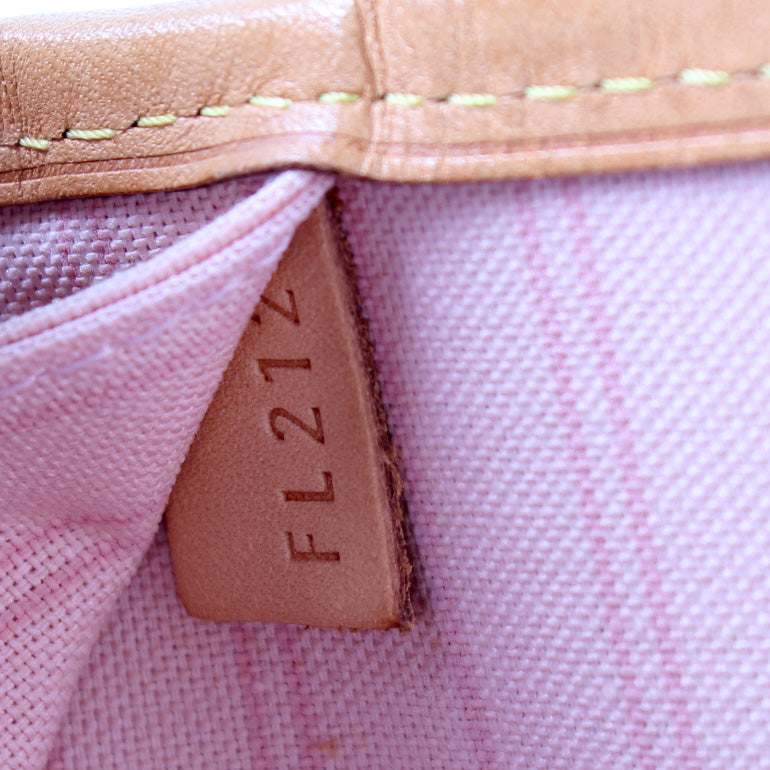 This pre-owned Louis Vuitton Neverfull MM is guaranteed 100% authentic. The exterior is in the classic Louis Vuitton Damier Azur coated canvas.