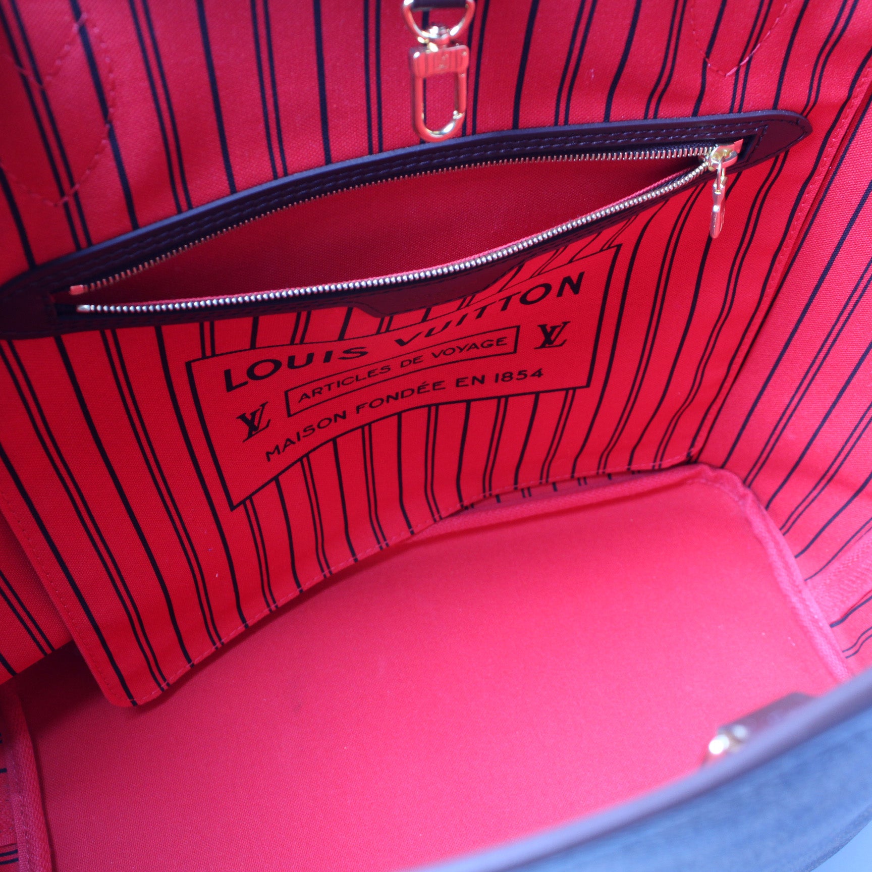 Interior: The interior is clean and free of rips or tears. The interior features one zip closure pocket.