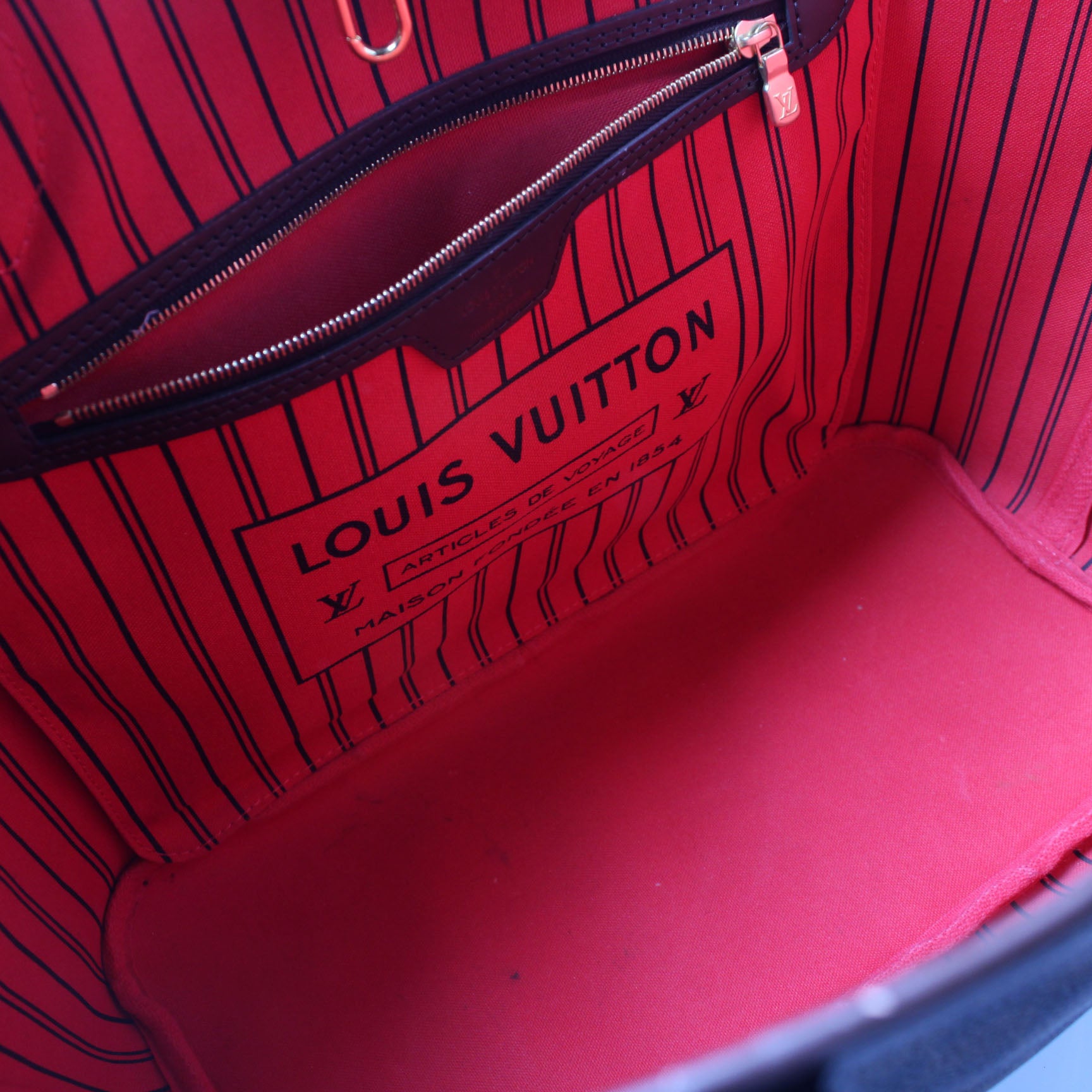 Interior: The interior is free of rips or tears. The interior features one zip closure pocket.