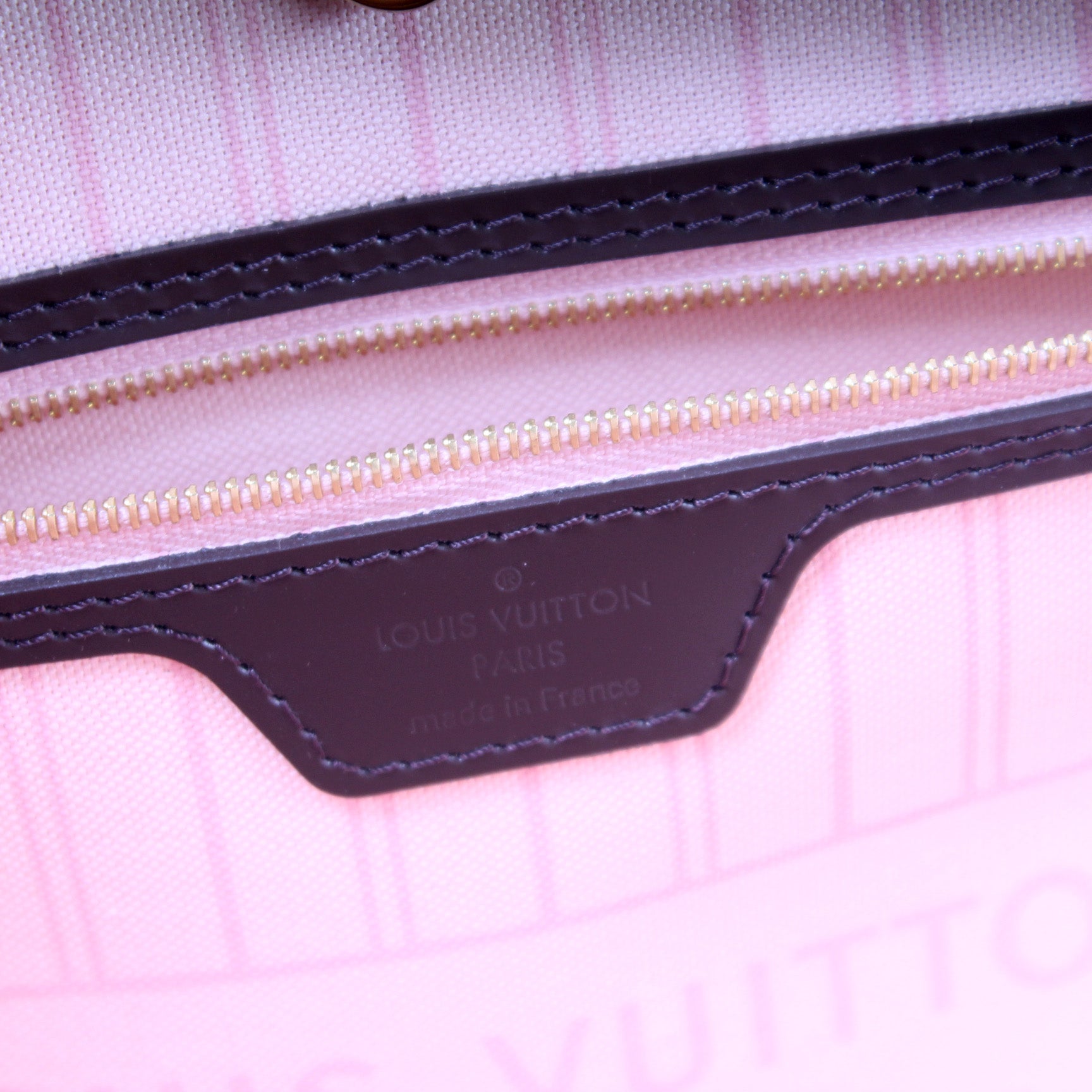 This pre-owned Louis Vuitton Neverfull MM is guaranteed 100% authentic. The exterior is in the classic Louis Vuitton Damier Ebene coated canvas.