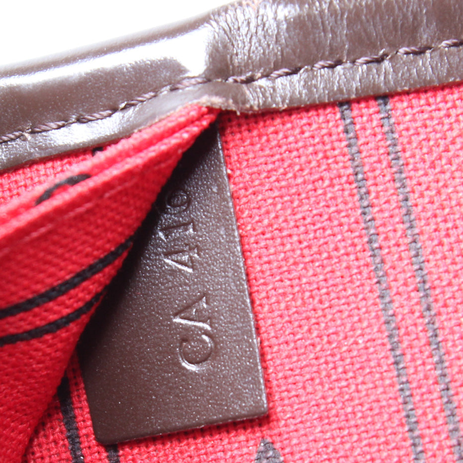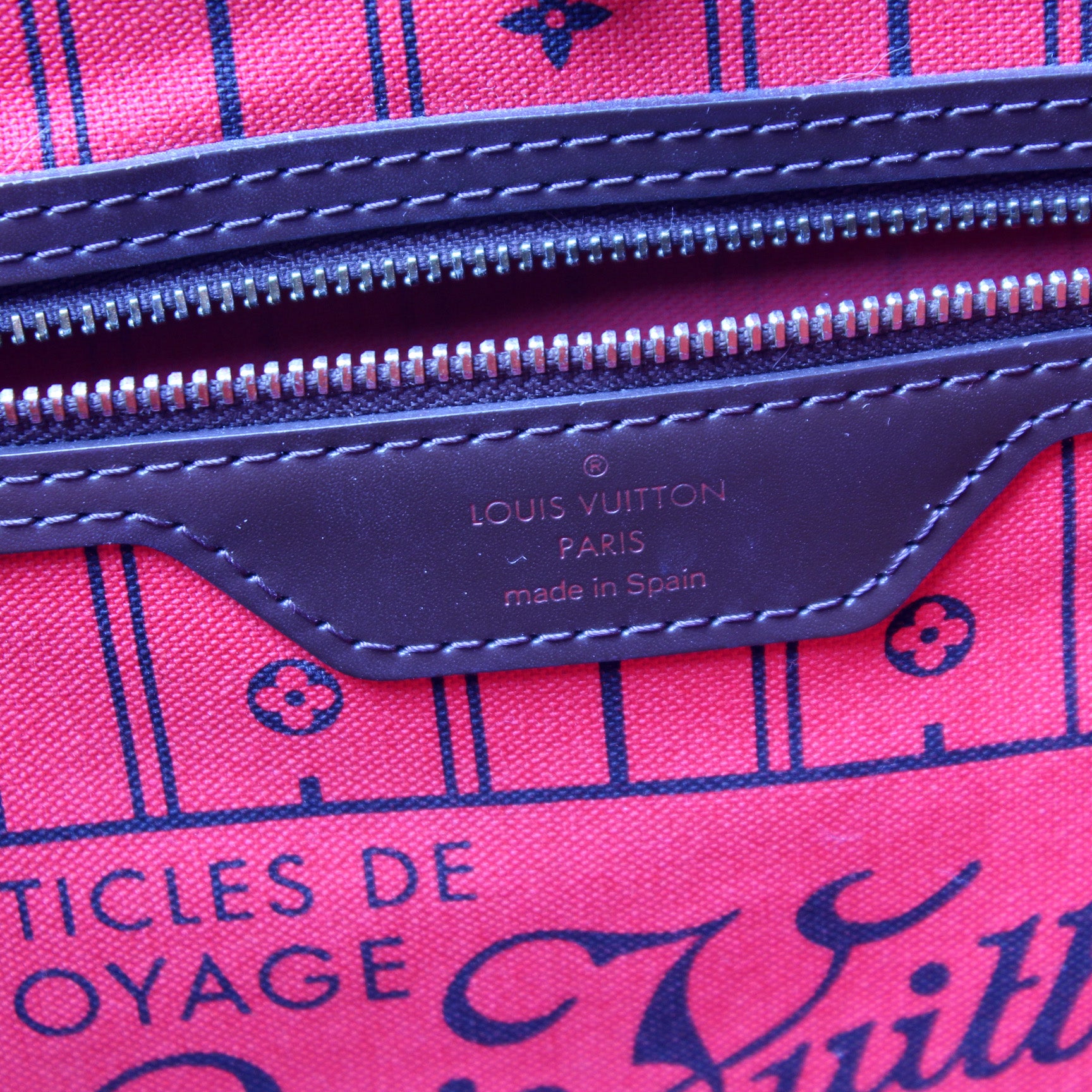 This pre-owned Louis Vuitton Neverfull MM is guaranteed 100% authentic. The exterior is in the classic Louis Vuitton Damier Ebene coated canvas.
