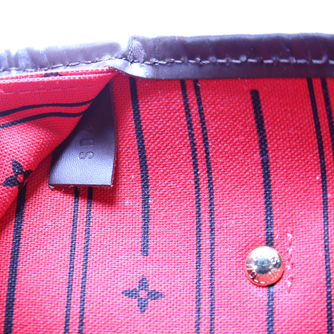 This pre-owned Louis Vuitton Neverfull MM is guaranteed 100% authentic. The exterior is in the classic Louis Vuitton Damier Ebene coated canvas.