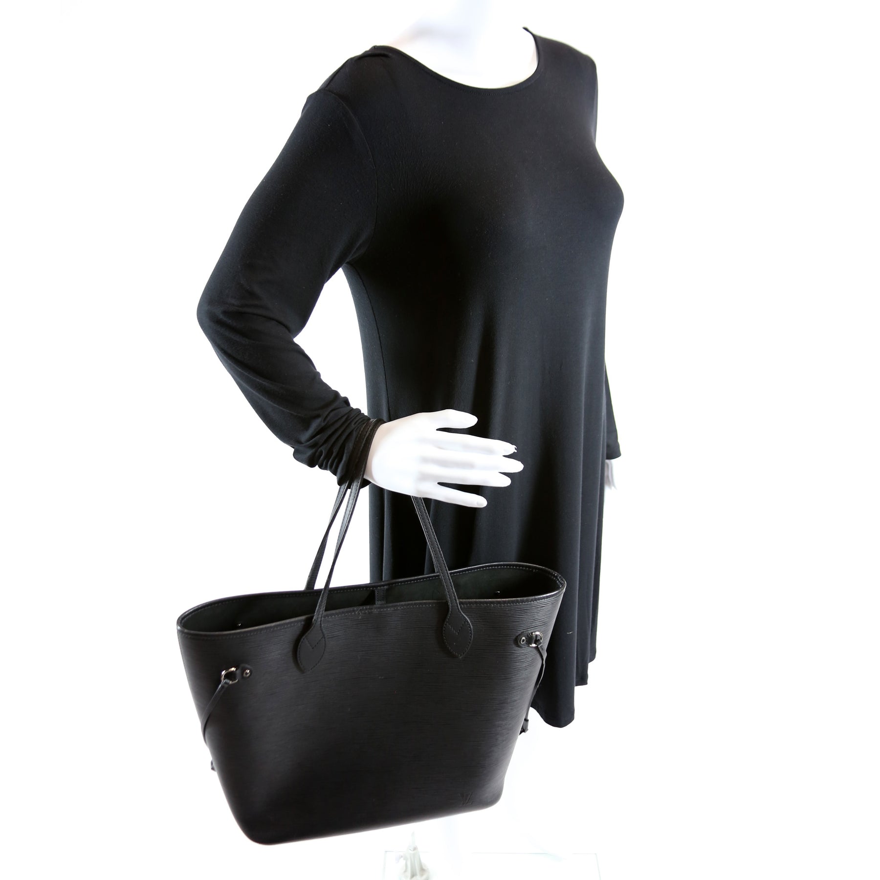 This pre-owned Louis Vuitton Neverfull MM is guaranteed 100% authentic. The exterior is in the classic Louis Vuitton Epi leather.