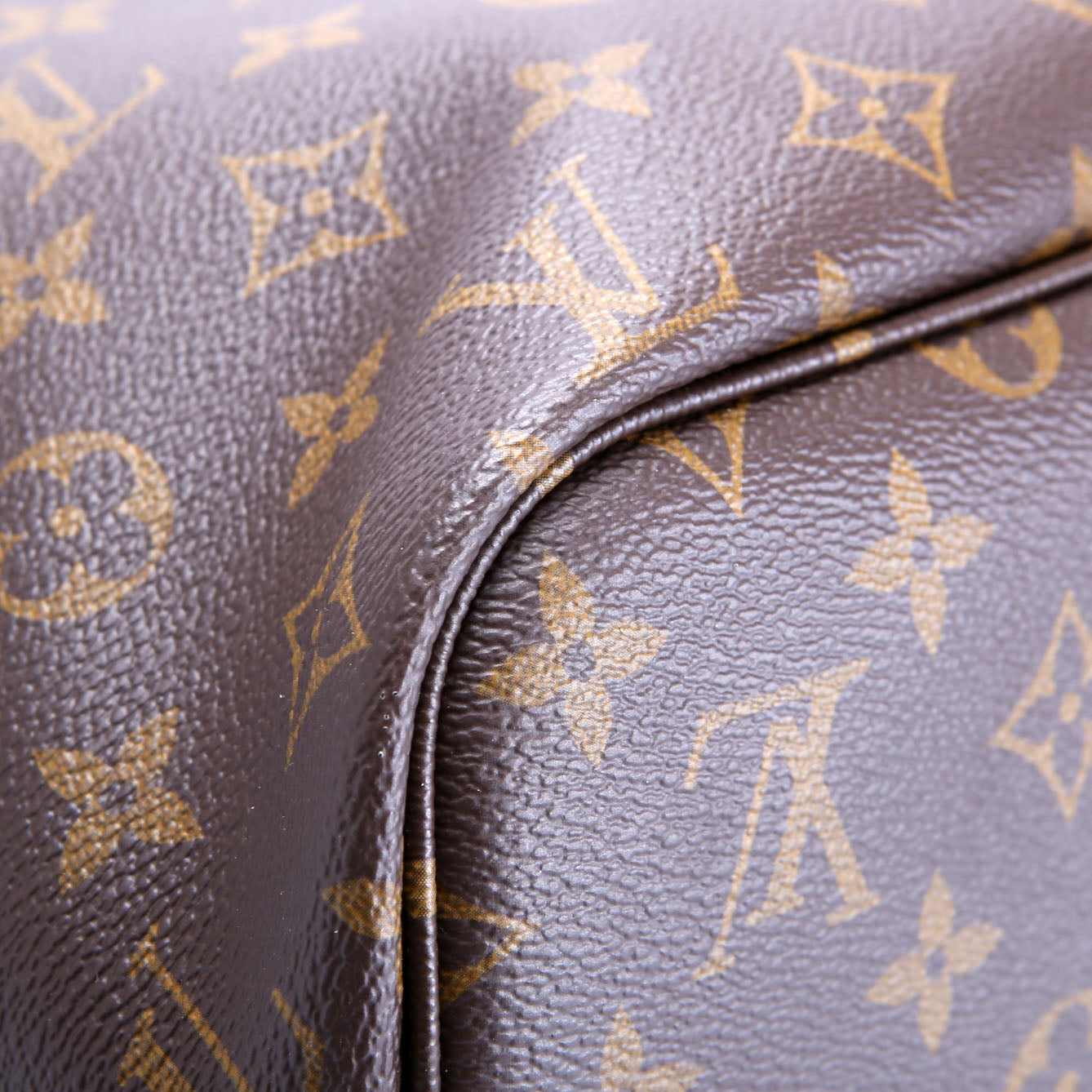 This pre-owned Louis Vuitton Neverfull MM Inside Out Leather/Monogram is guaranteed 100% authentic. The exterior is in the classic Louis Vuitton Monogram coated canvas.