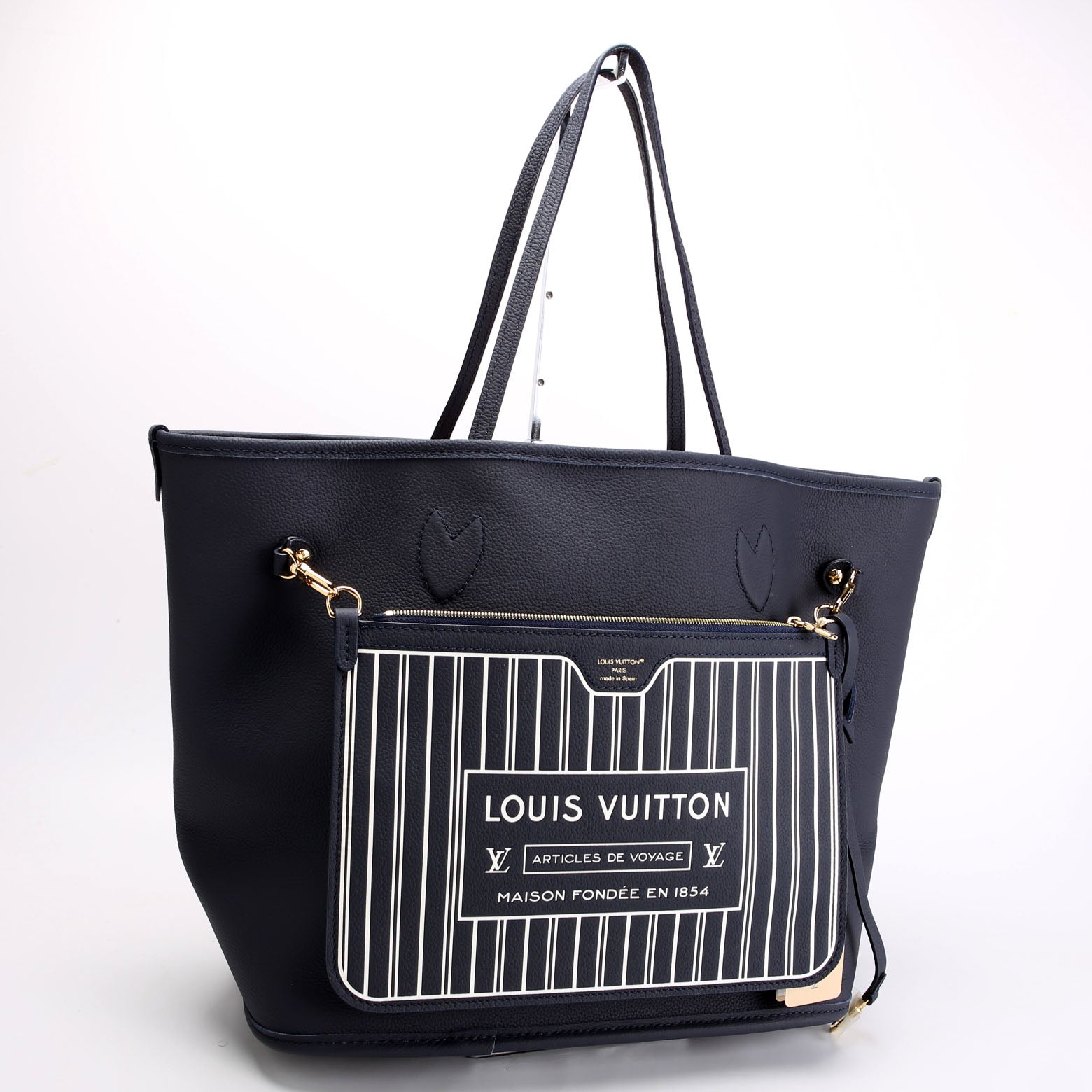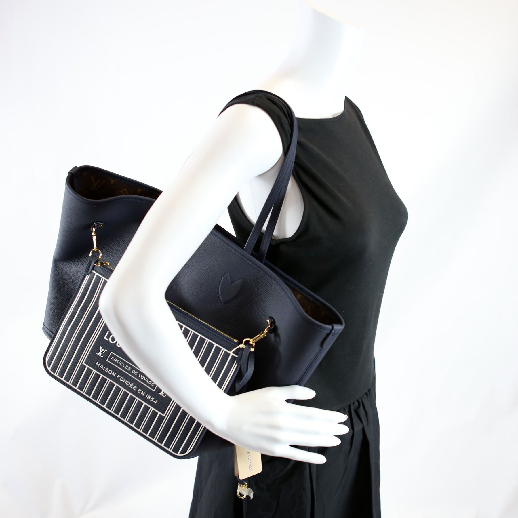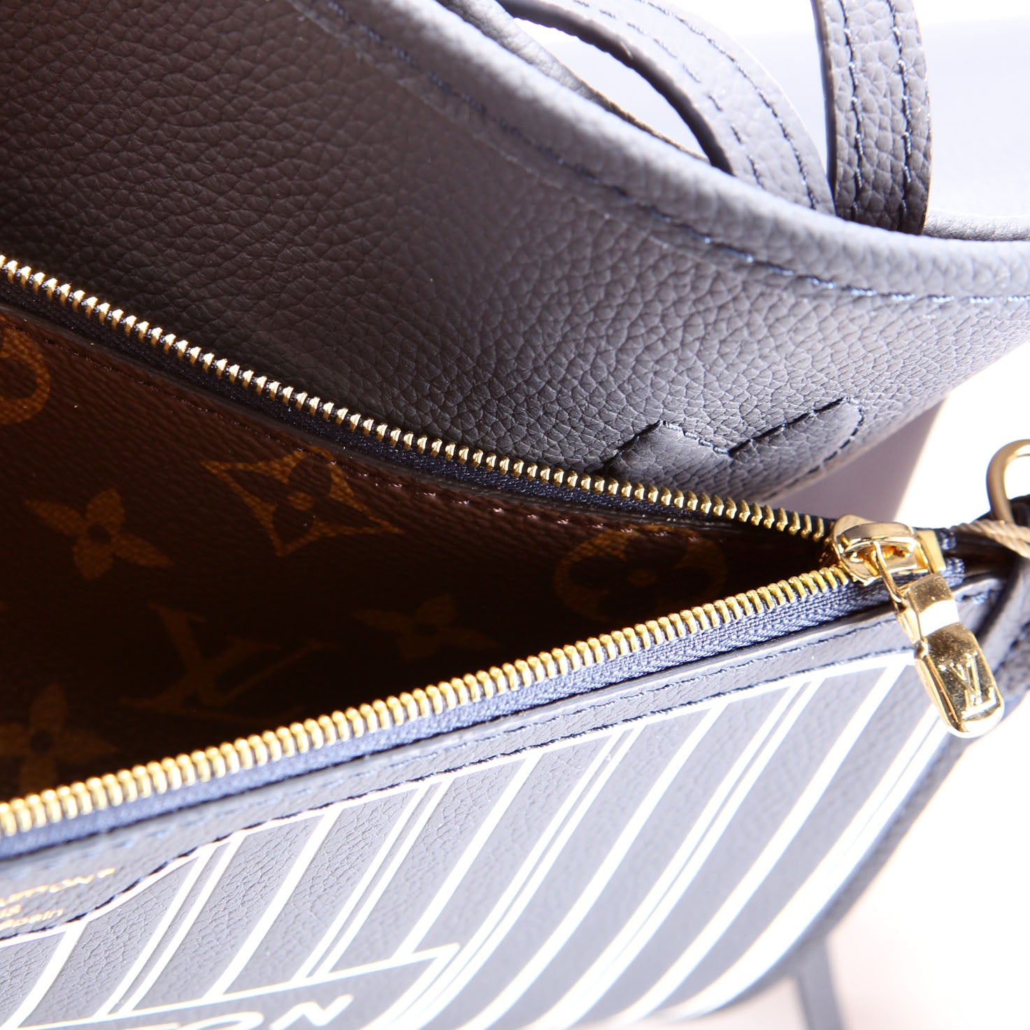 Neverfull MM Inside Out Leather/Monogram Navy