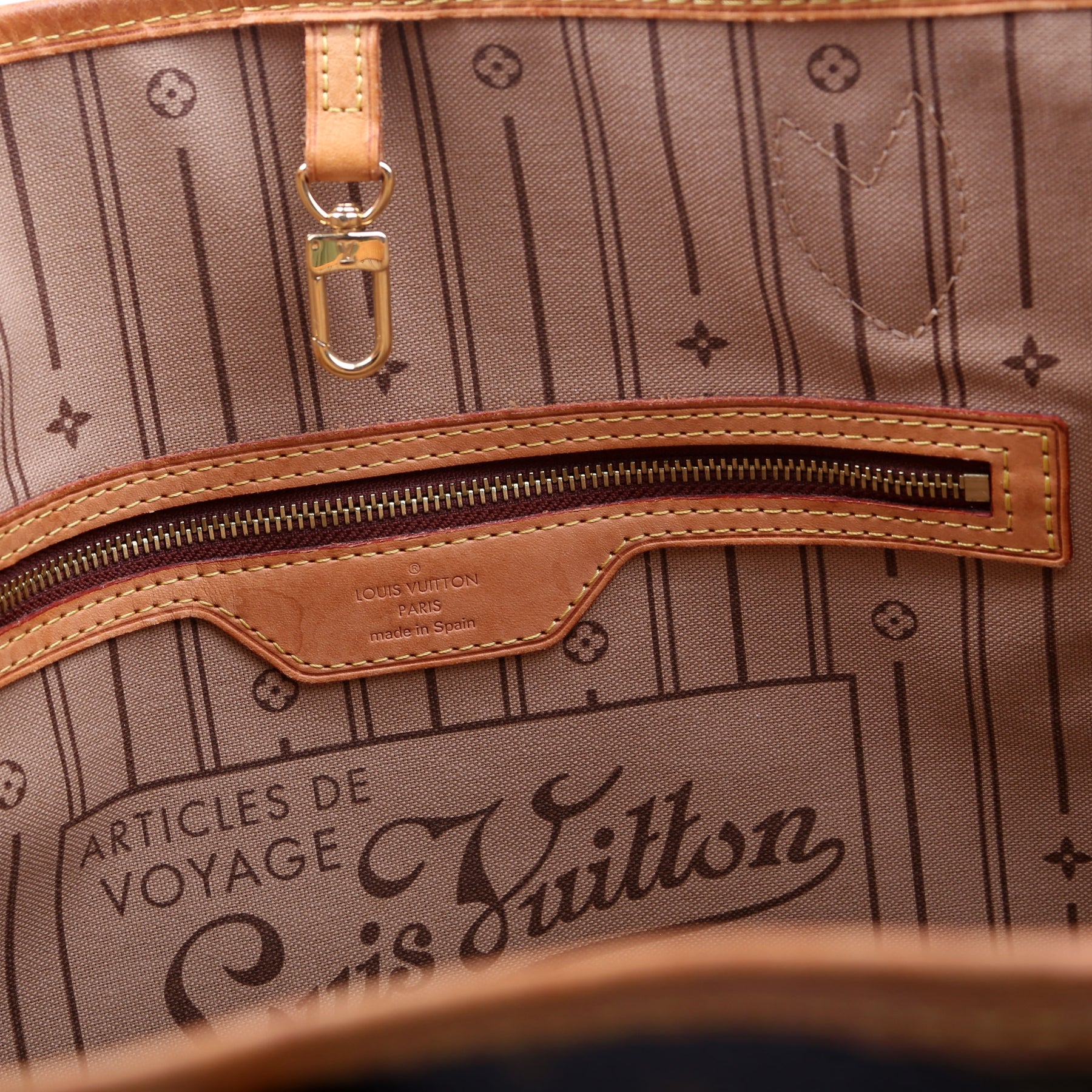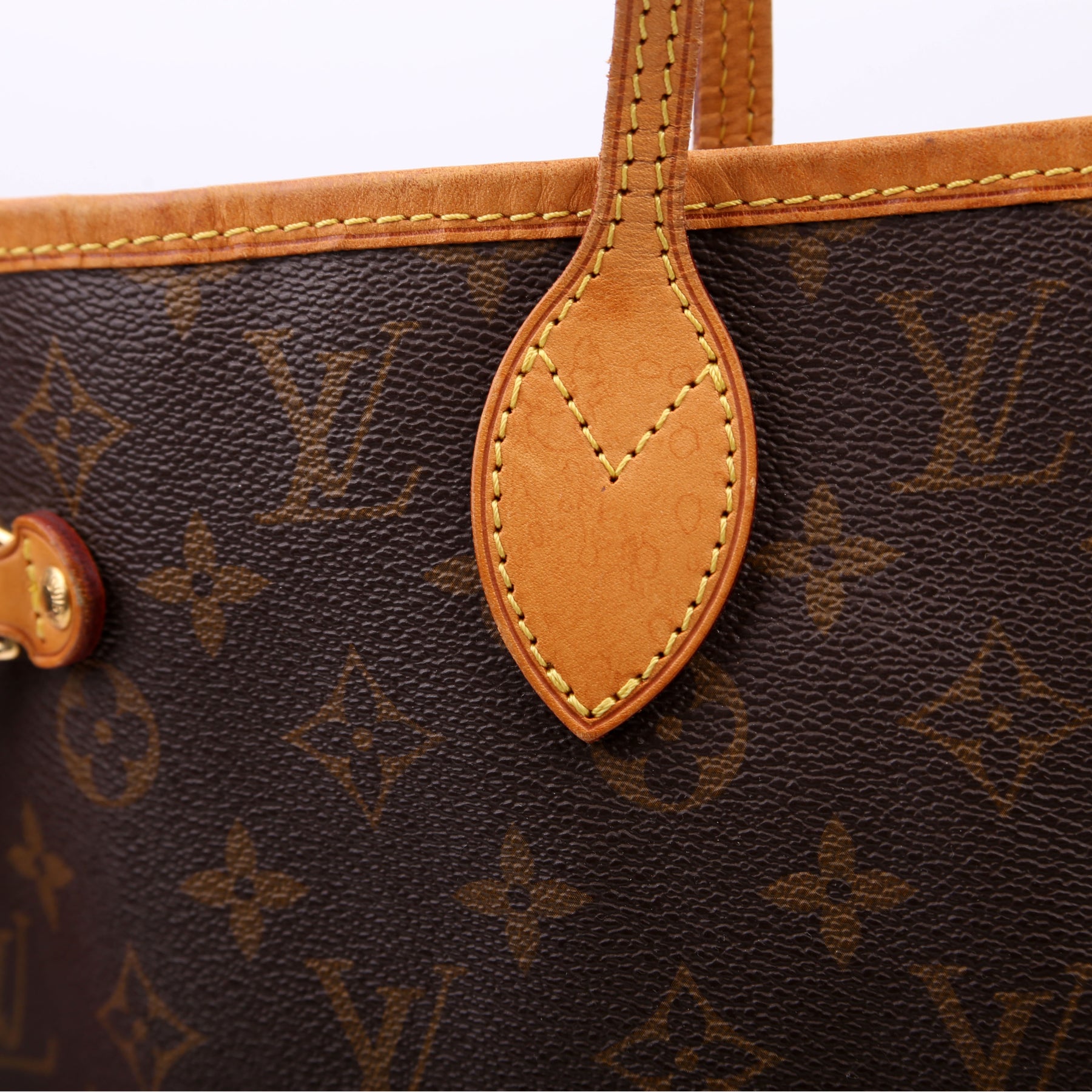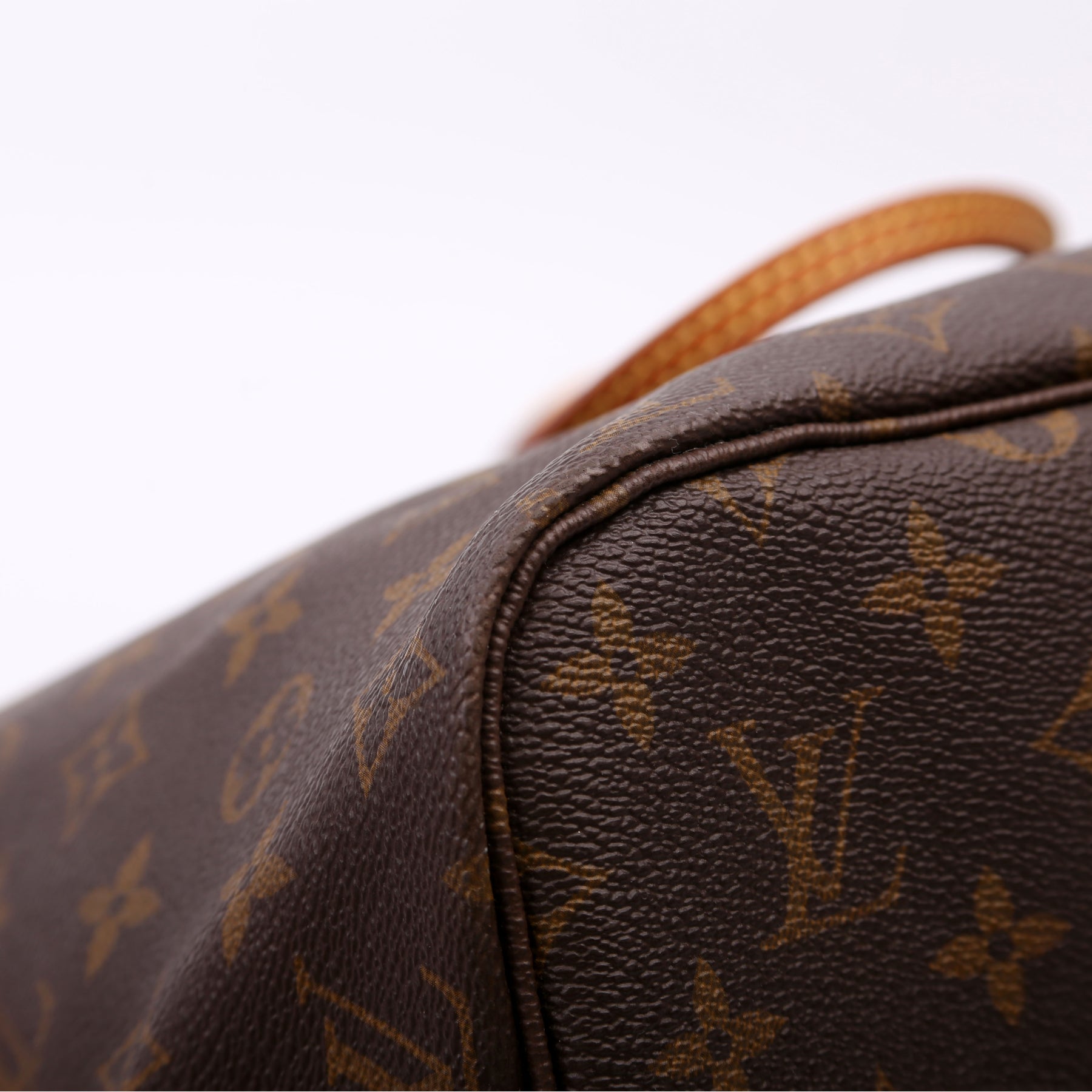 This pre-owned Louis Vuitton Neverfull MM is guaranteed 100% authentic. The exterior is in the classic Louis Vuitton Monogram coated canvas.