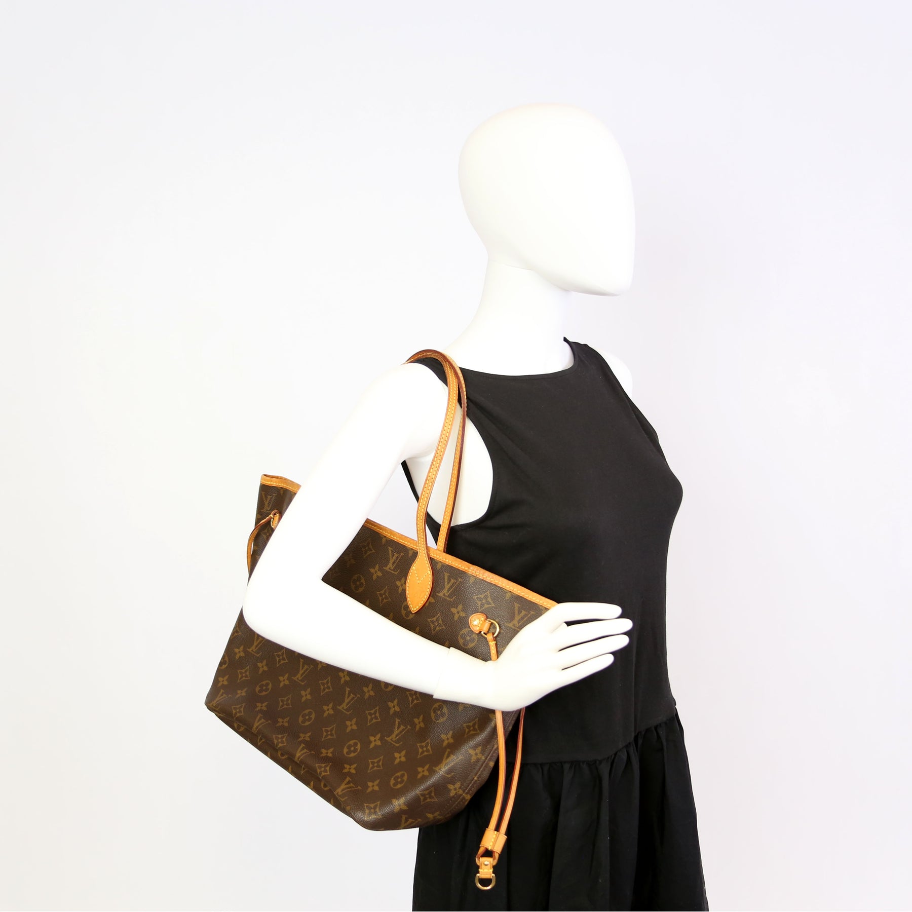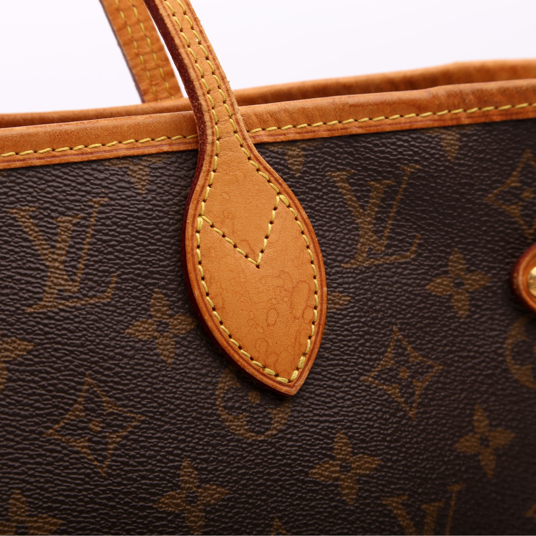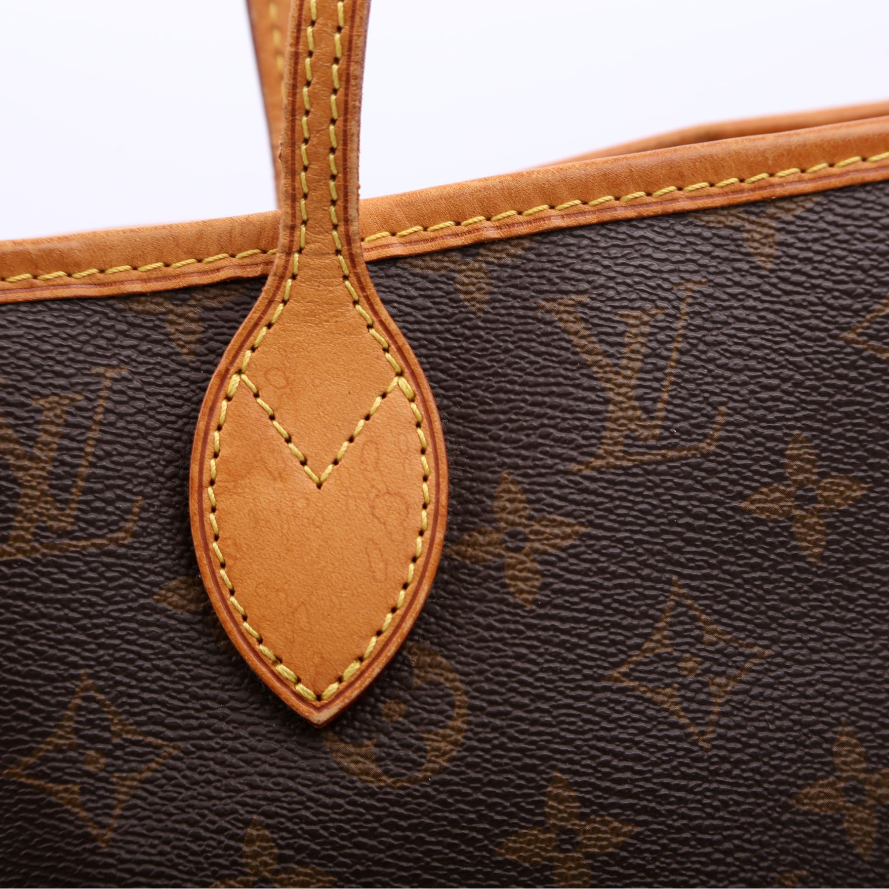 This pre-owned Louis Vuitton Neverfull MM is guaranteed 100% authentic. The exterior is in the classic Louis Vuitton Monogram coated canvas.