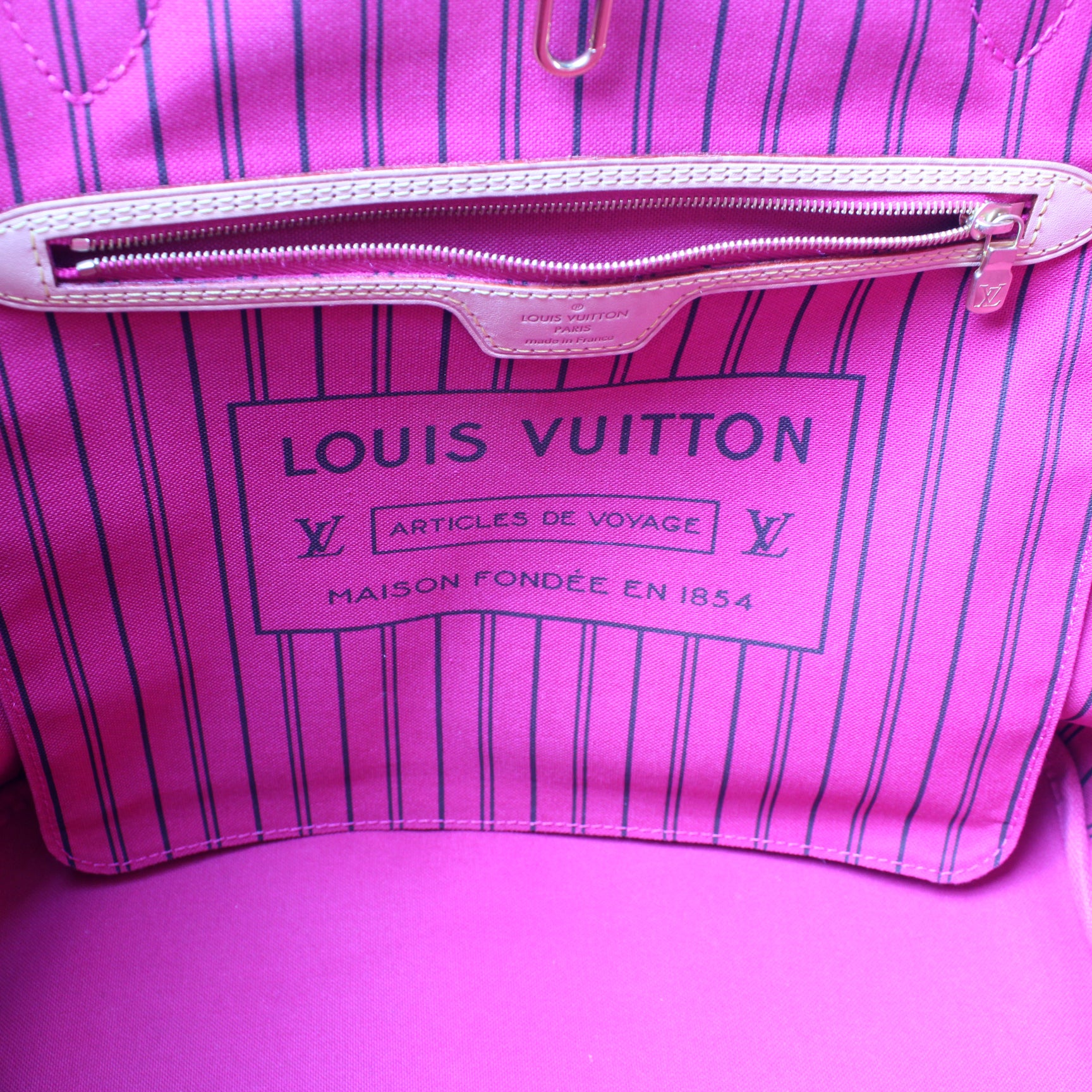 This pre-owned Louis Vuitton Neverfull MM is guaranteed 100% authentic. The exterior is in the classic Louis Vuitton Monogram coated canvas.