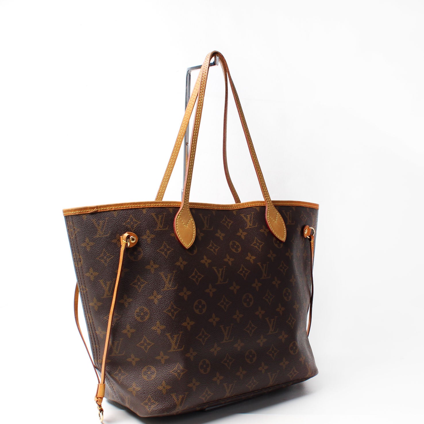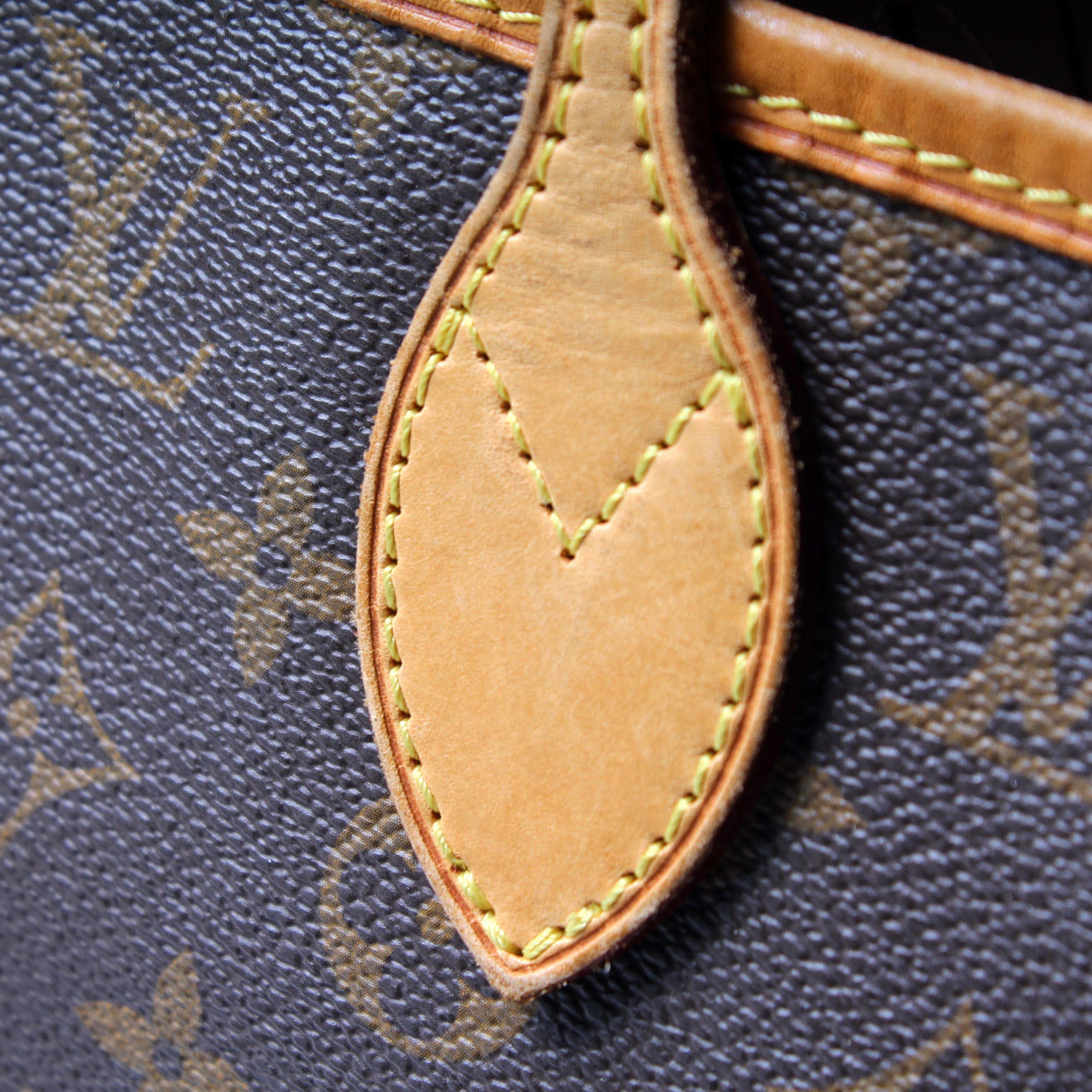 This pre-owned Louis Vuitton Neverfull MM is guaranteed 100% authentic. The exterior is in the classic Louis Vuitton Monogram coated canvas.