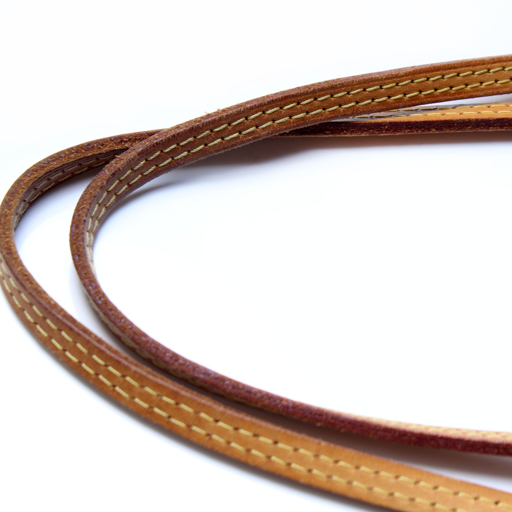Handle: The leather handles are free of any rips or cracks. They have discoloration.