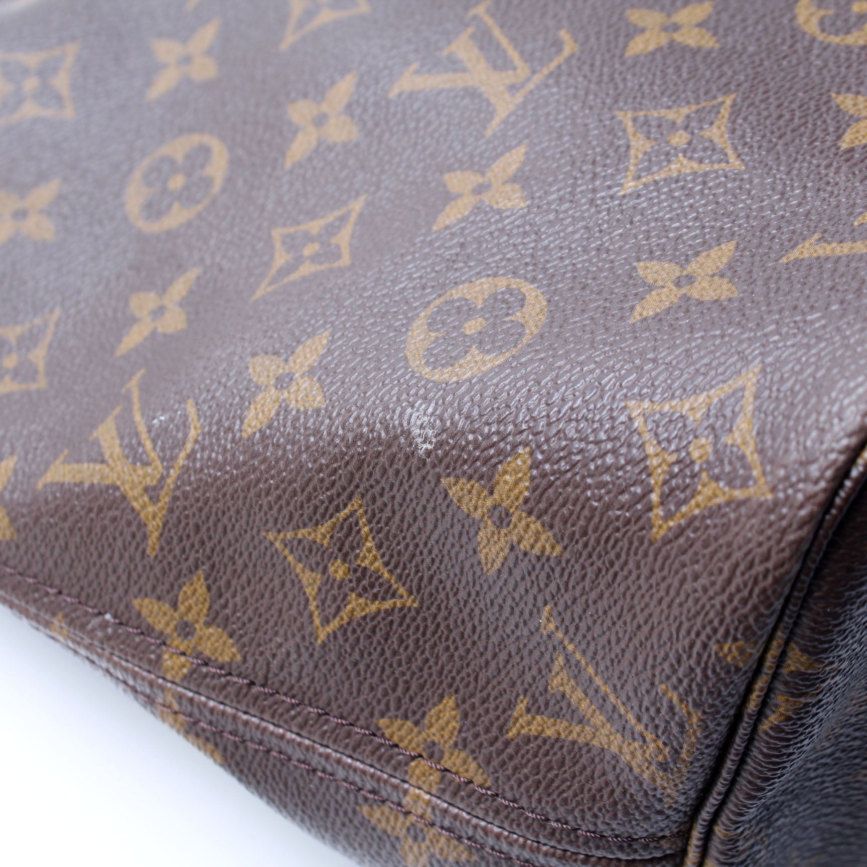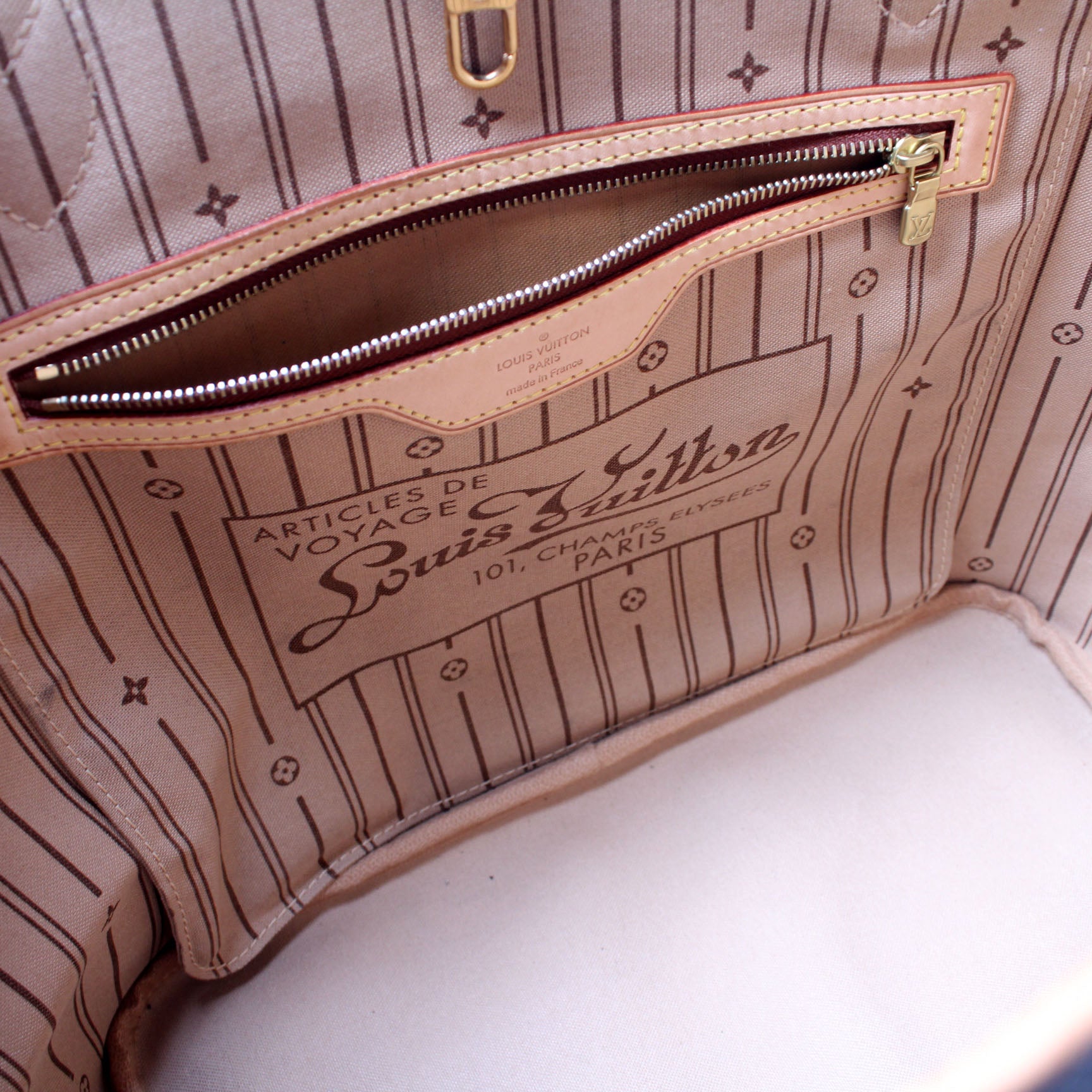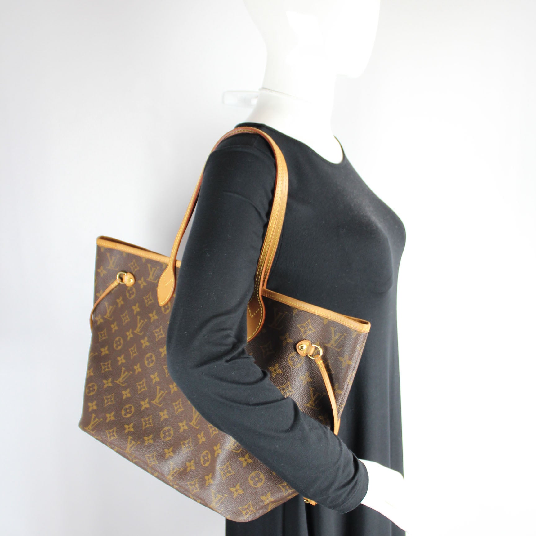 This pre-owned Louis Vuitton Neverfull MM is guaranteed 100% authentic. The exterior is in the classic Louis Vuitton Monogram coated canvas.