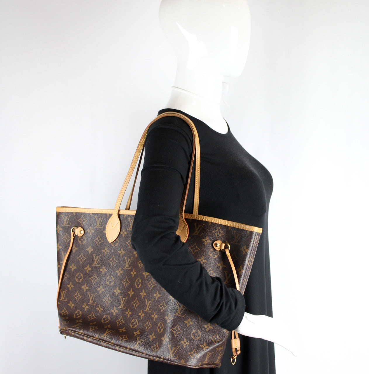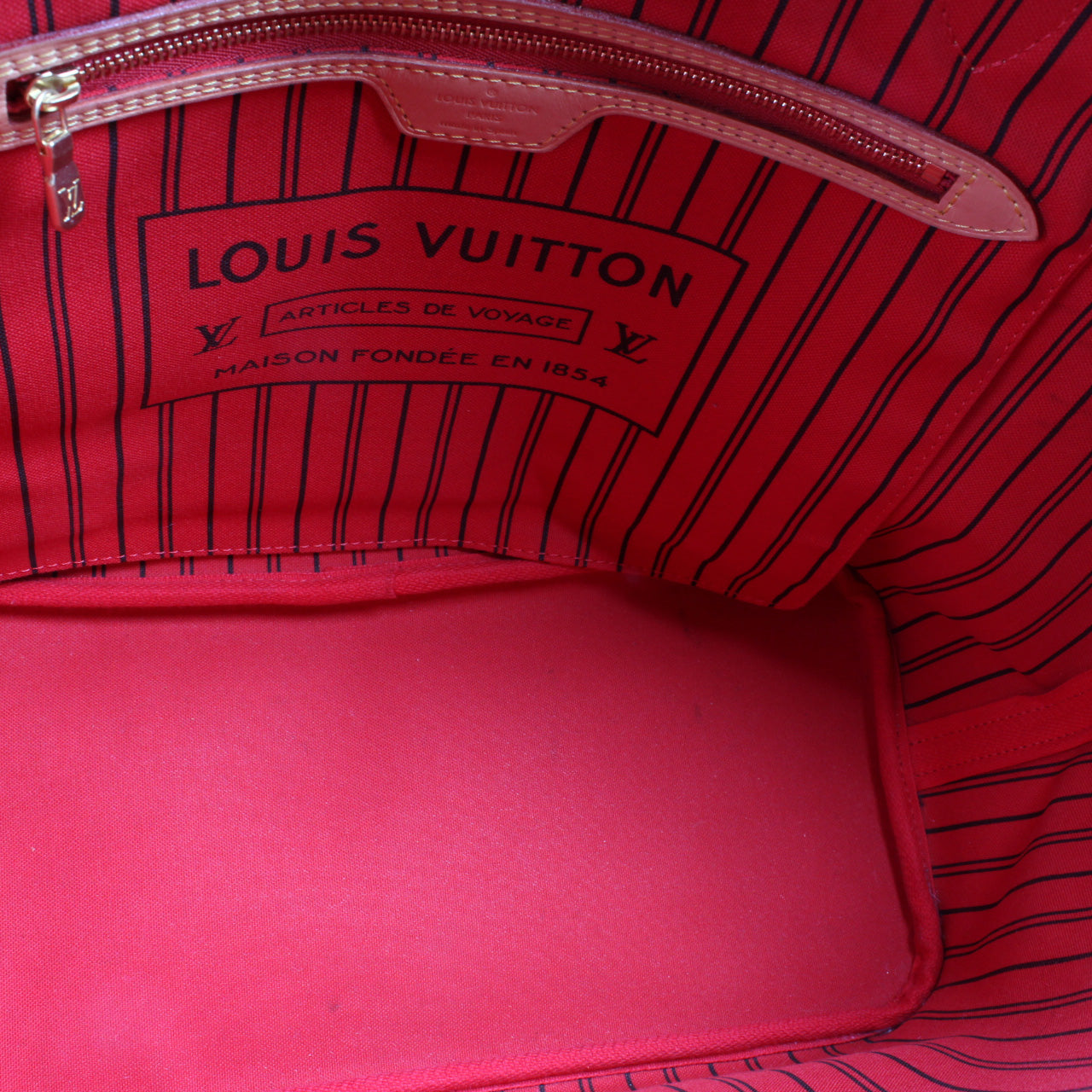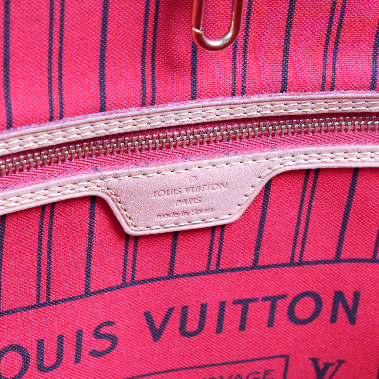 This pre-owned Louis Vuitton Neverfull MM is guaranteed 100% authentic. The exterior is in the classic Louis Vuitton Monogram coated canvas.