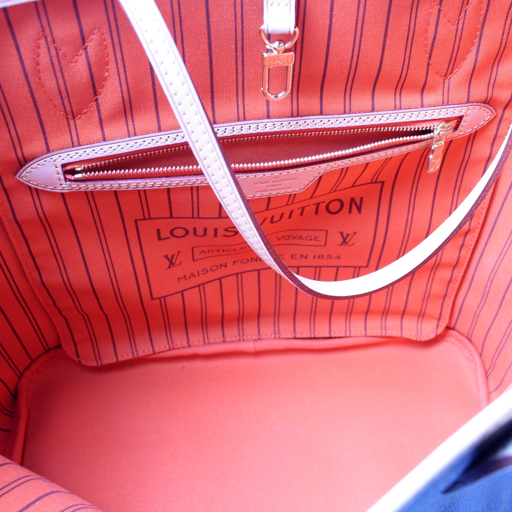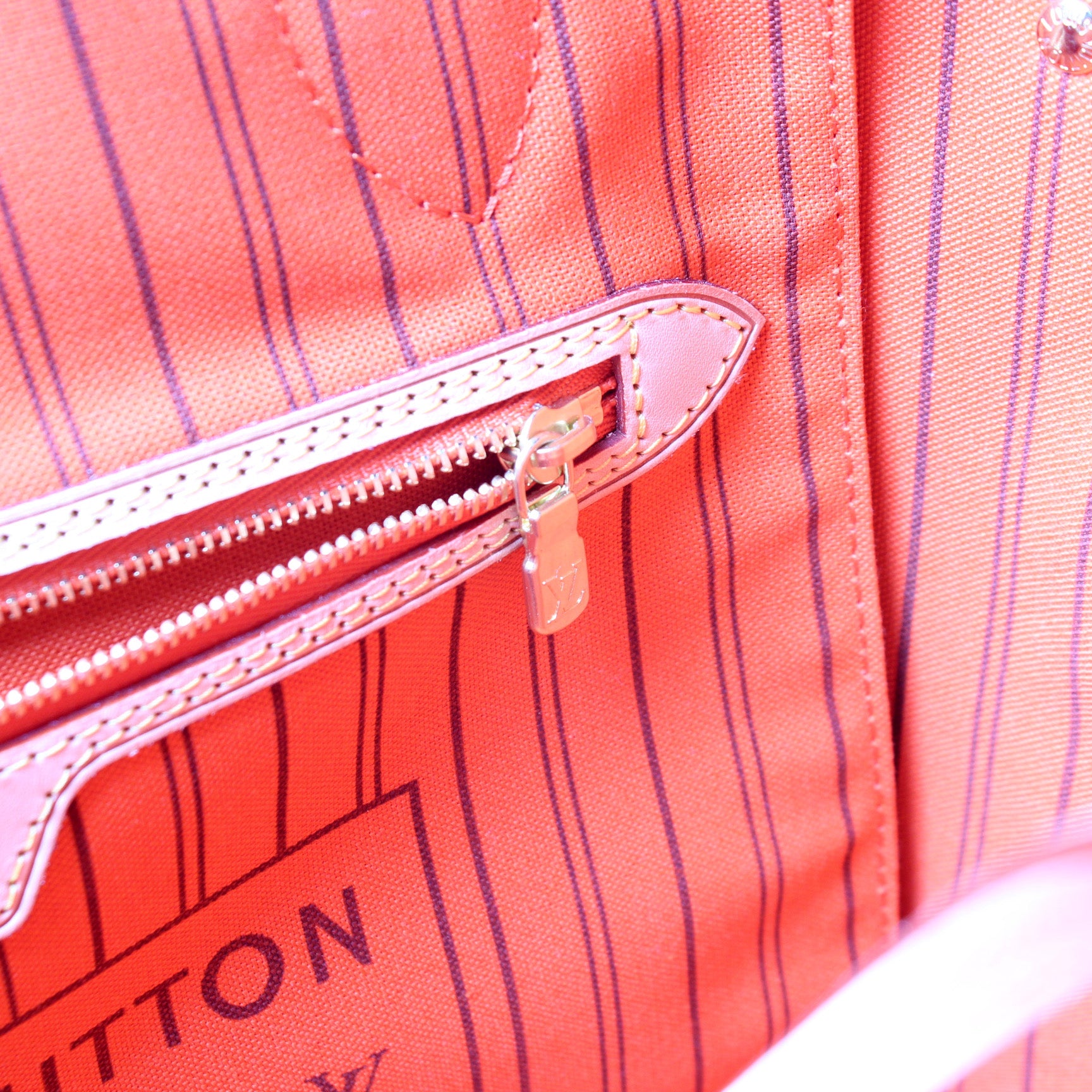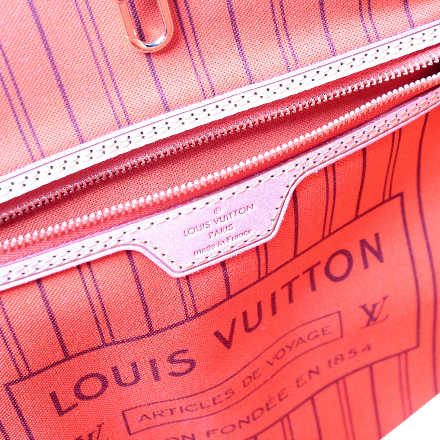 This pre-owned Louis Vuitton Neverfull MM is guaranteed 100% authentic. The exterior is in the classic Louis Vuitton Monogram coated canvas.