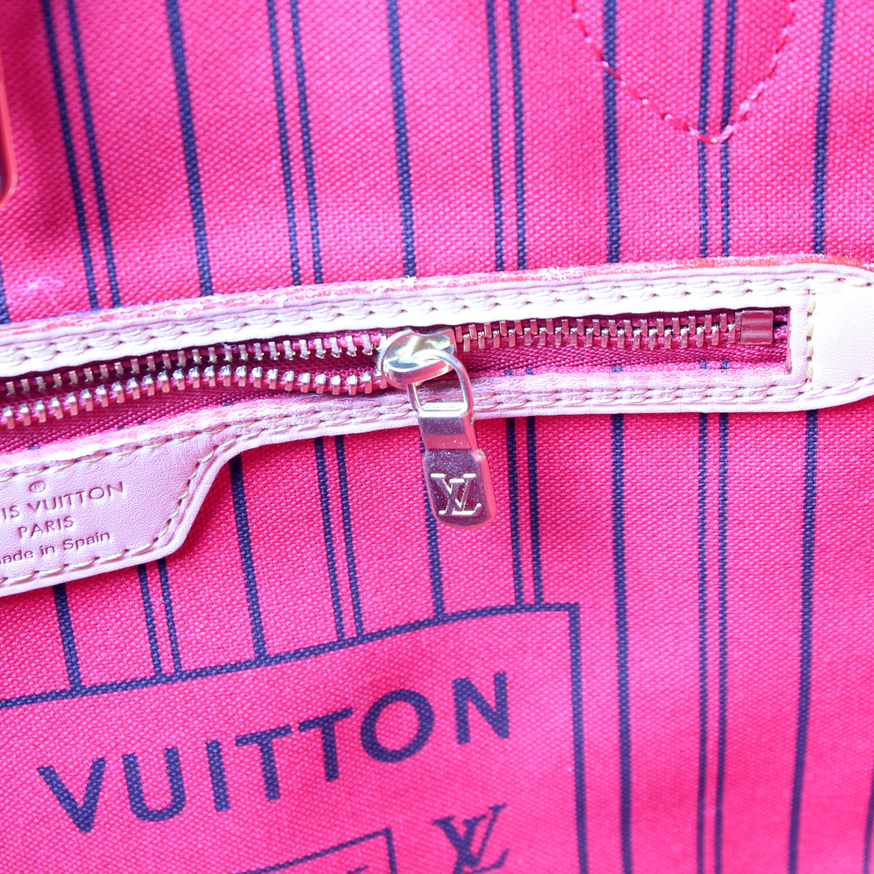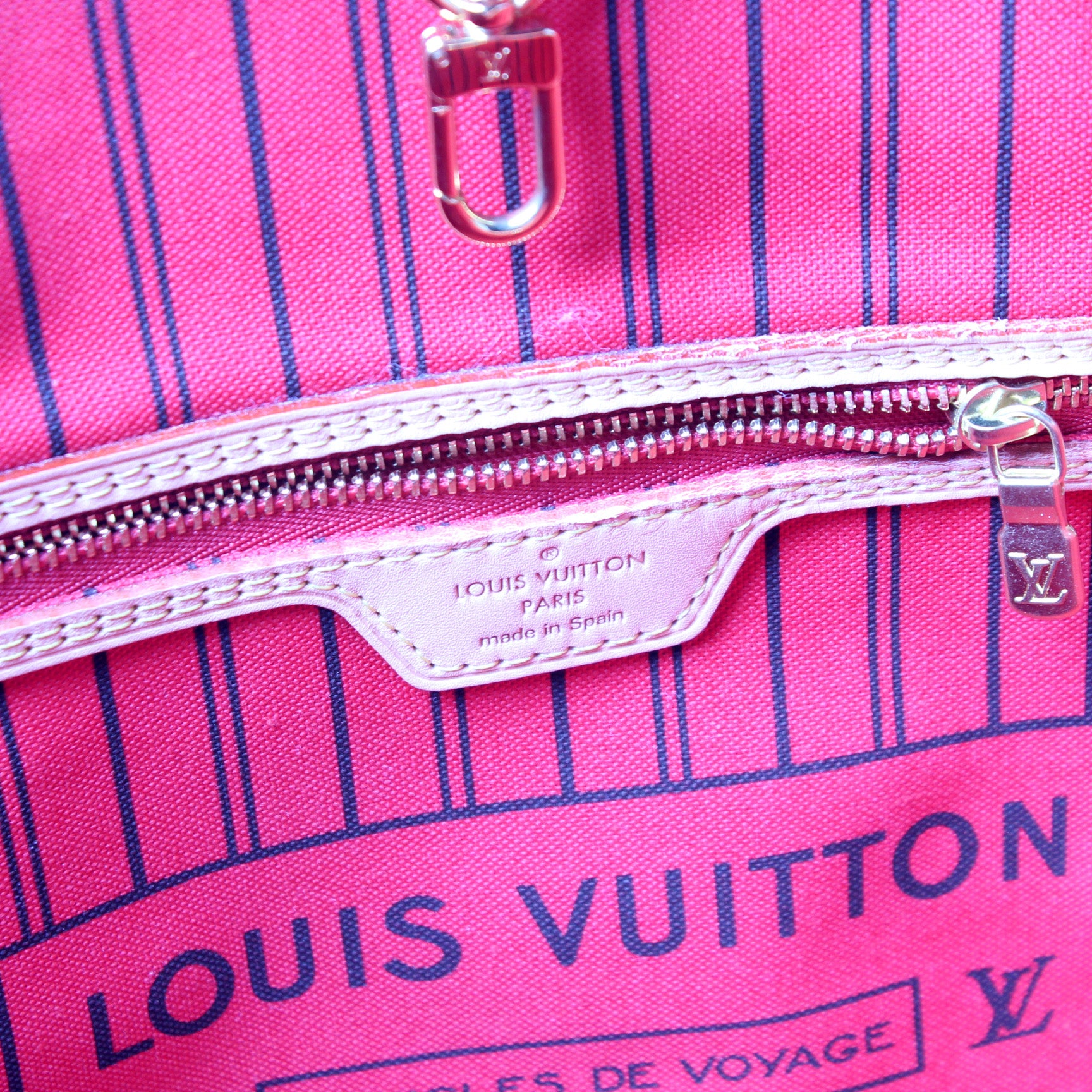 This pre-owned Louis Vuitton Neverfull MM is guaranteed 100% authentic. The exterior is in the classic Louis Vuitton Monogram coated canvas.