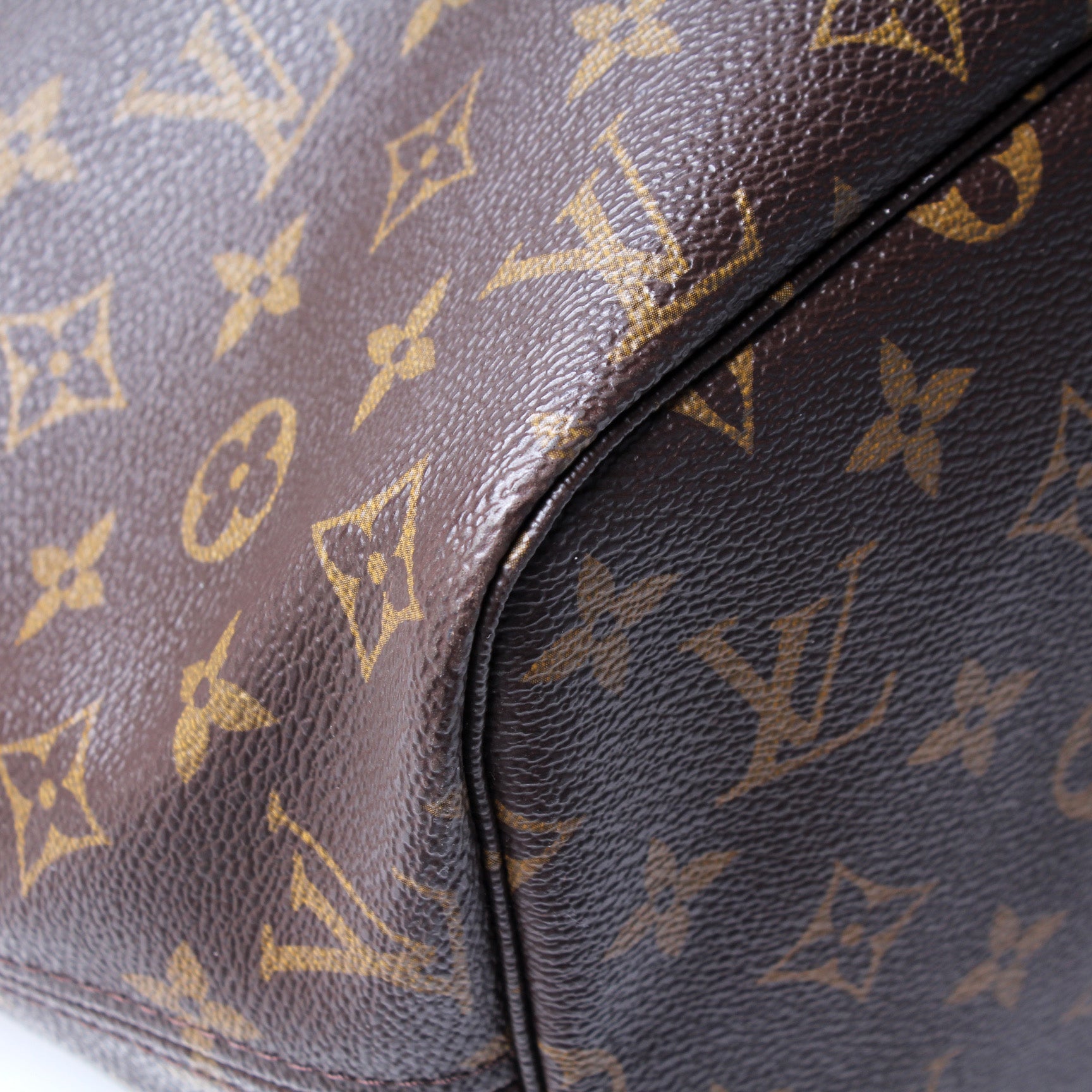 This pre-owned Louis Vuitton Neverfull MM is guaranteed 100% authentic. The exterior is in the classic Louis Vuitton Monogram coated canvas.