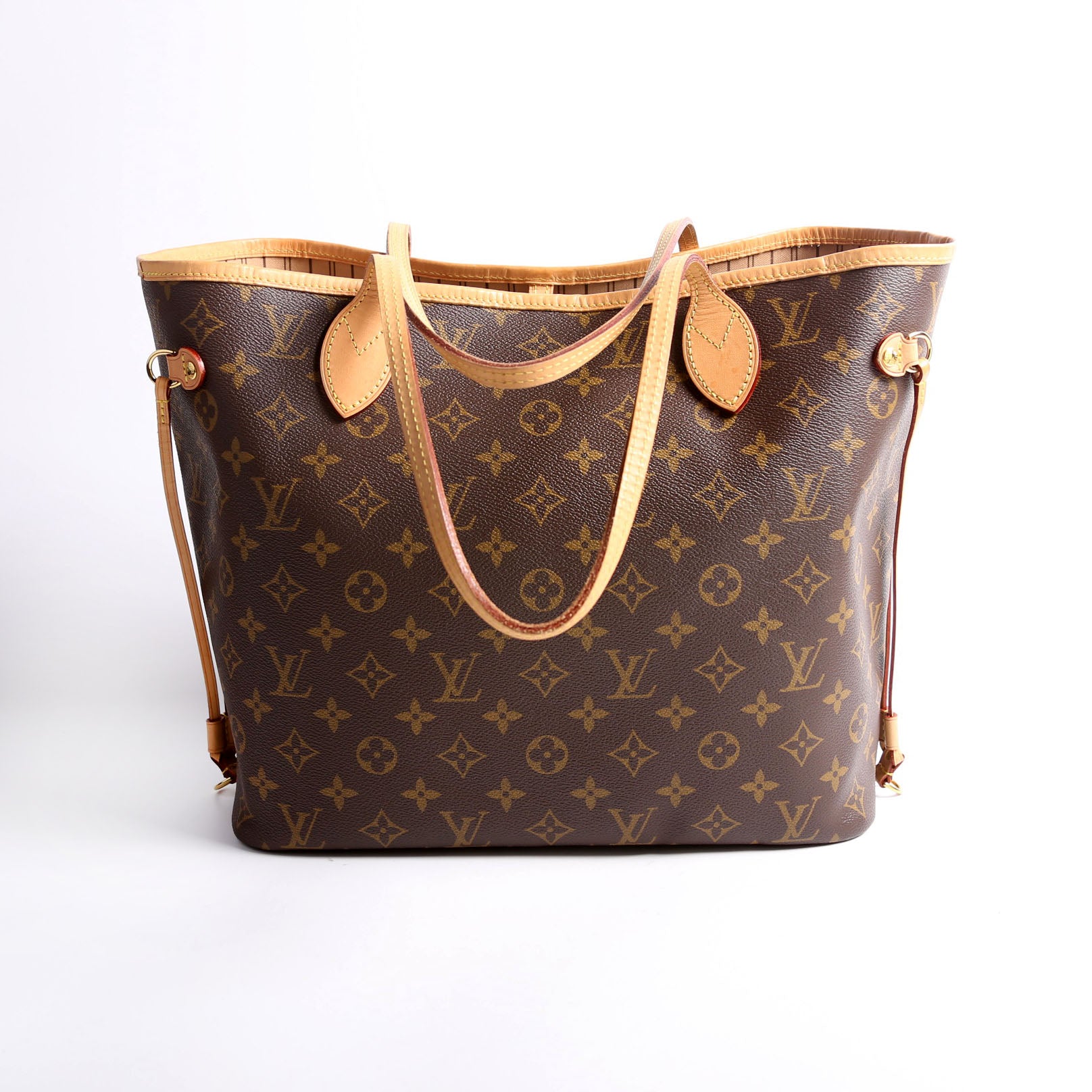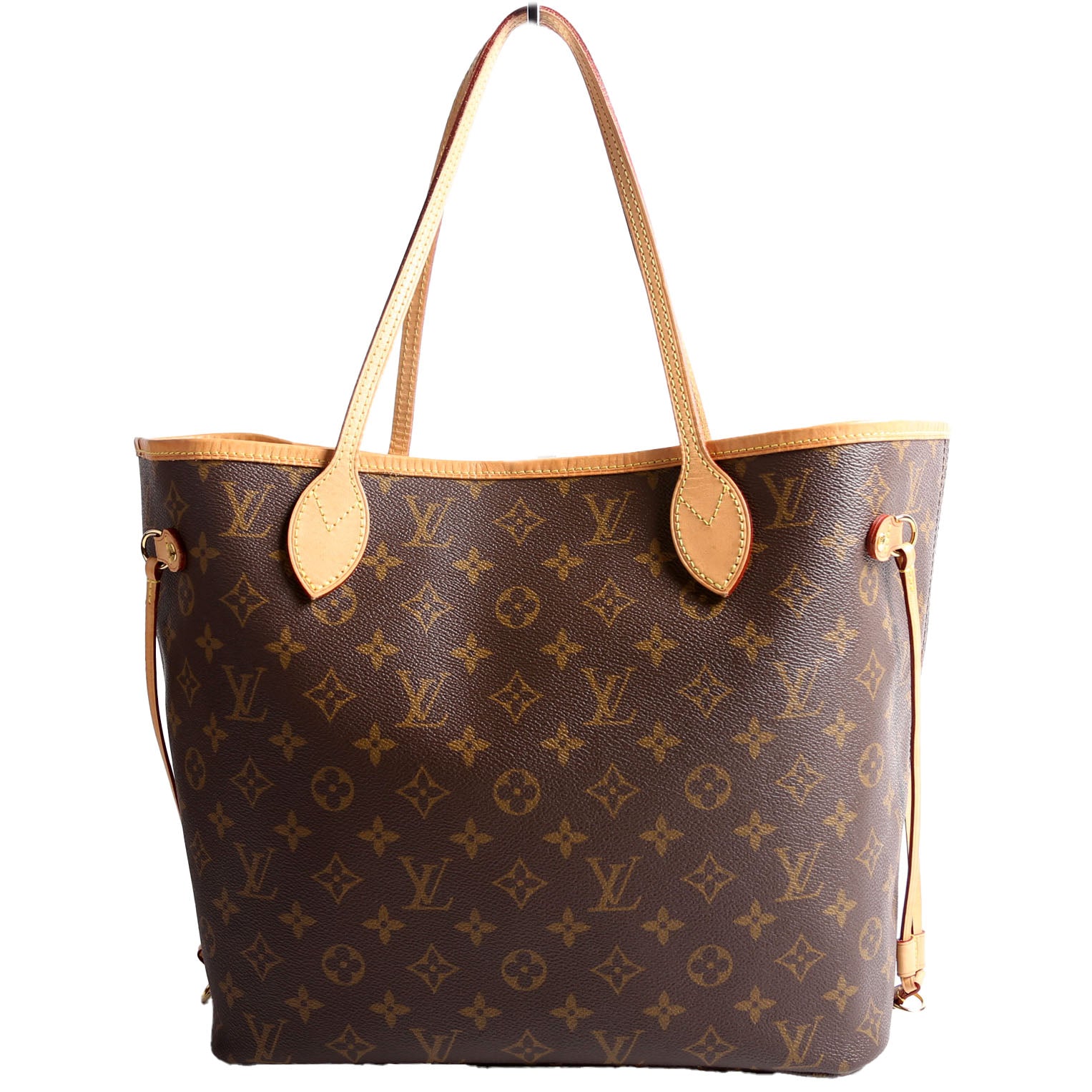 This pre-owned Louis Vuitton Neverfull MM is guaranteed 100% authentic. The exterior is in the classic Louis Vuitton Monogram coated canvas.