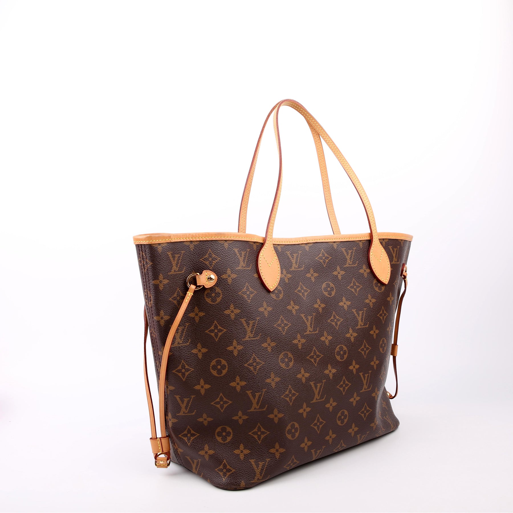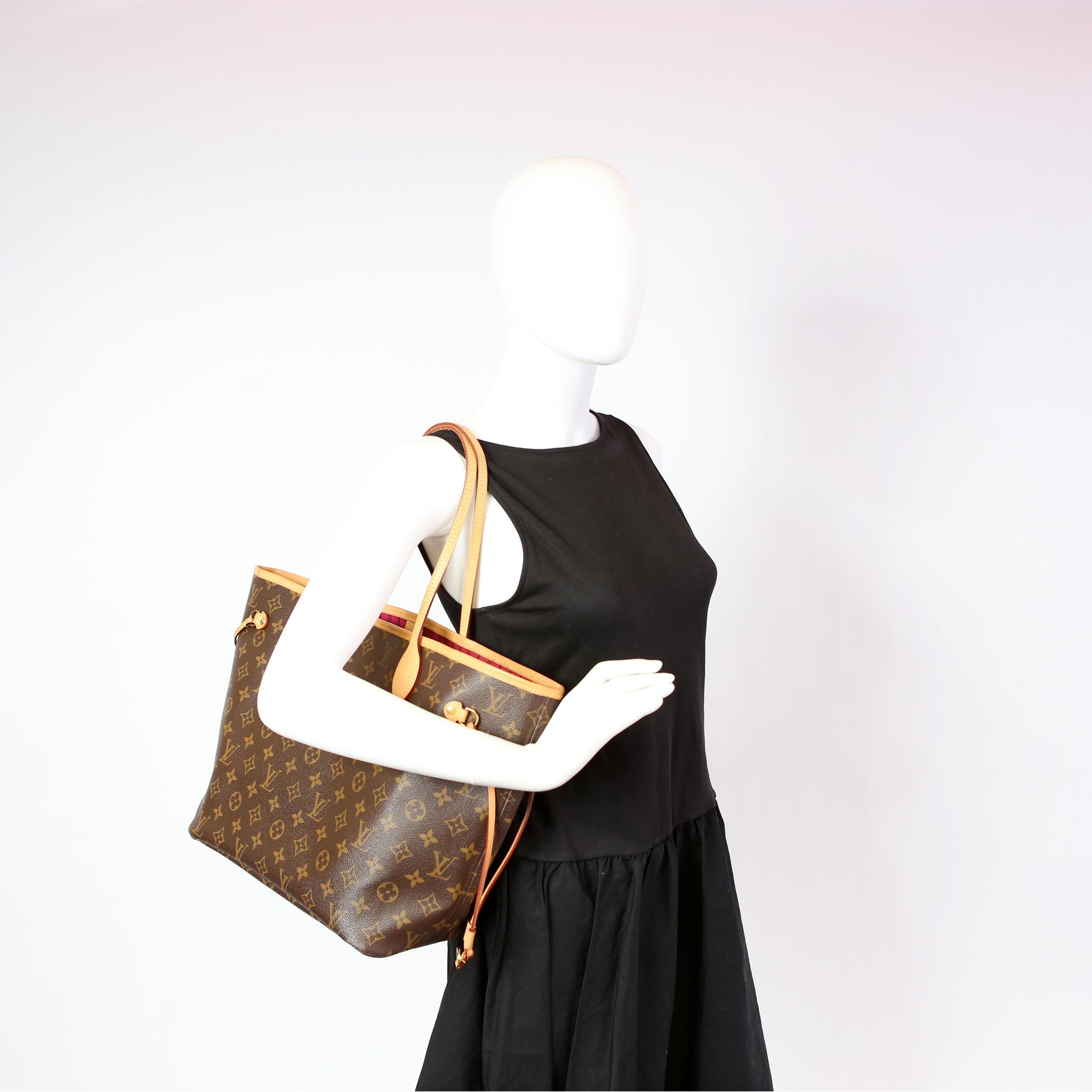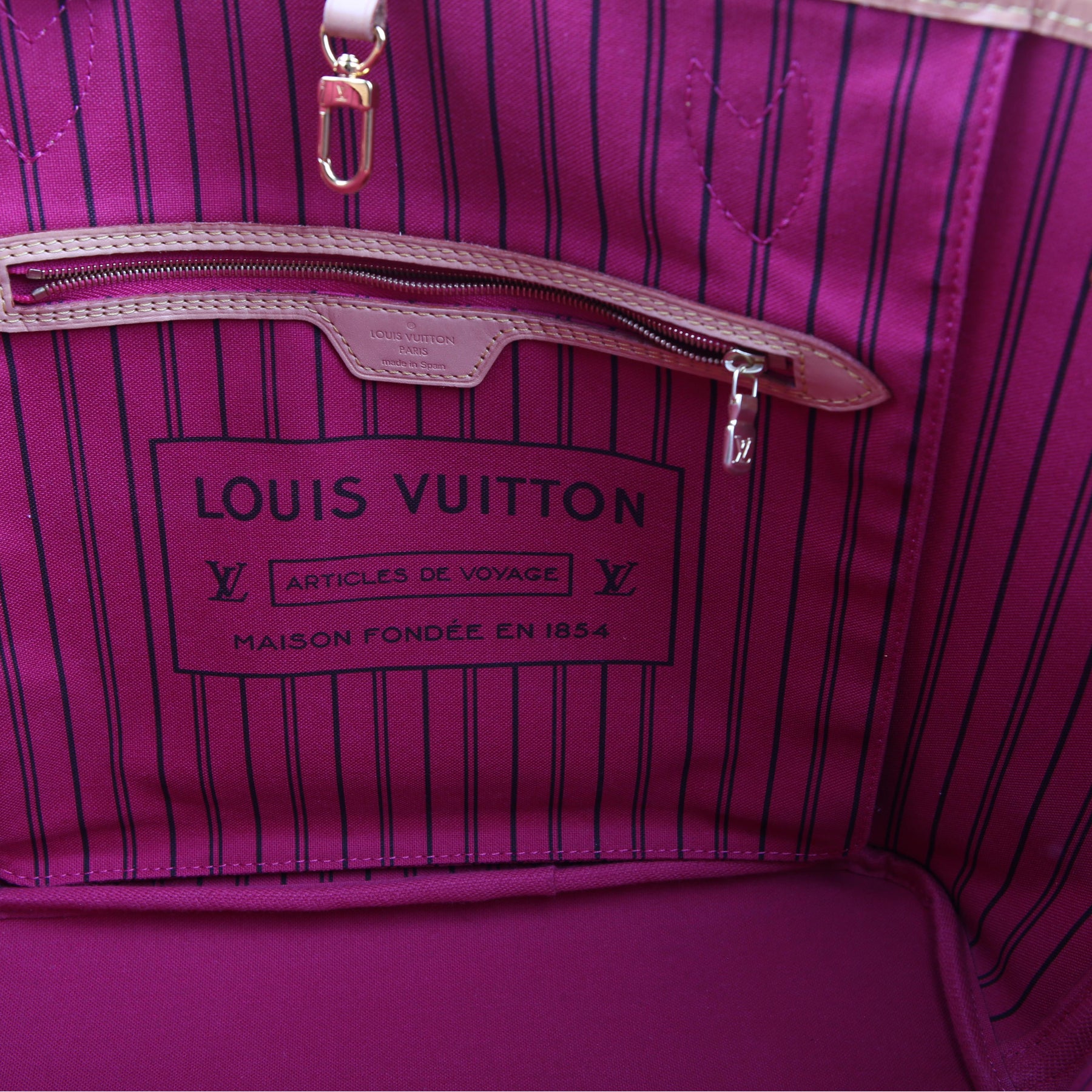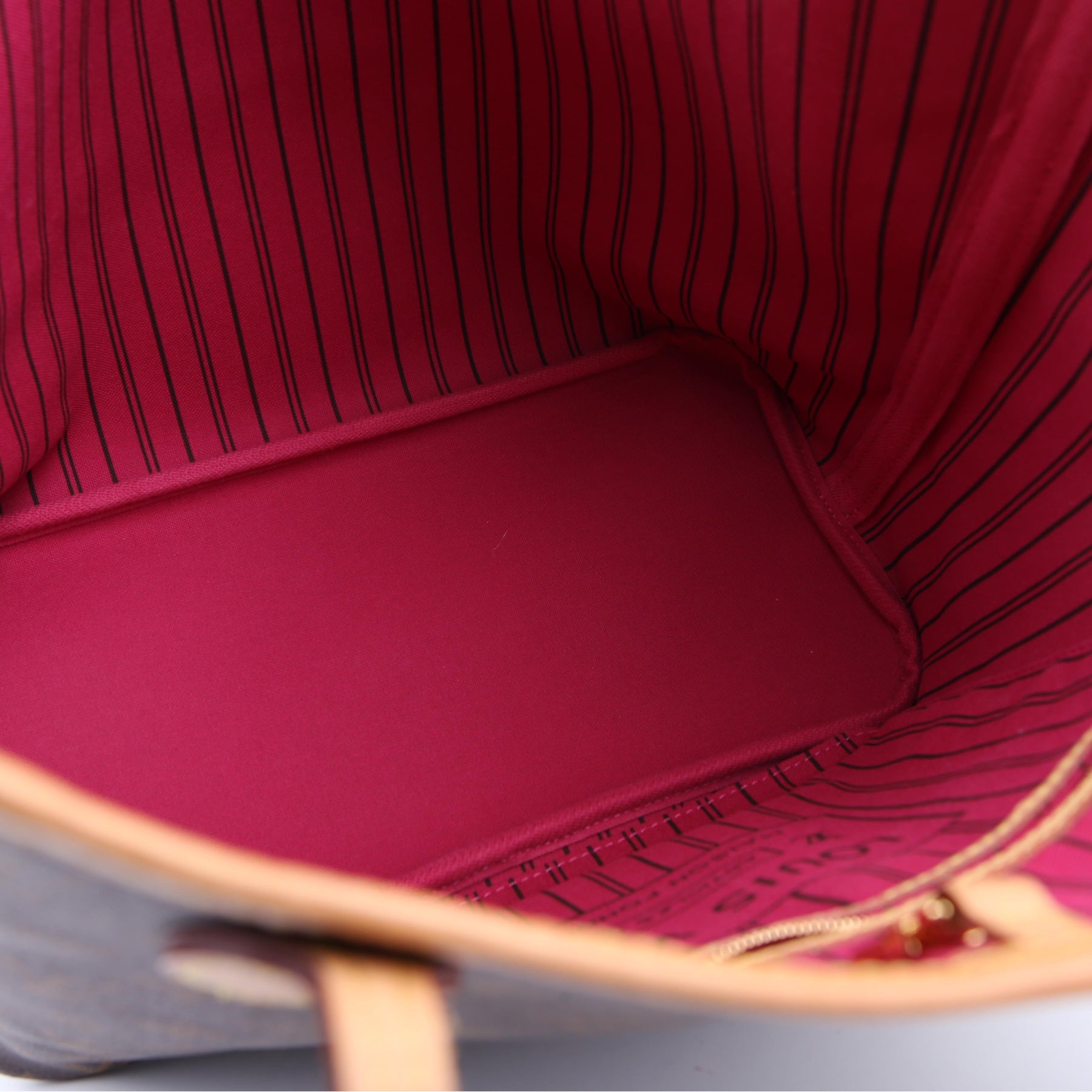 This pre-owned Louis Vuitton Neverfull MM is guaranteed 100% authentic. The exterior is in the classic Louis Vuitton Monogram coated canvas.