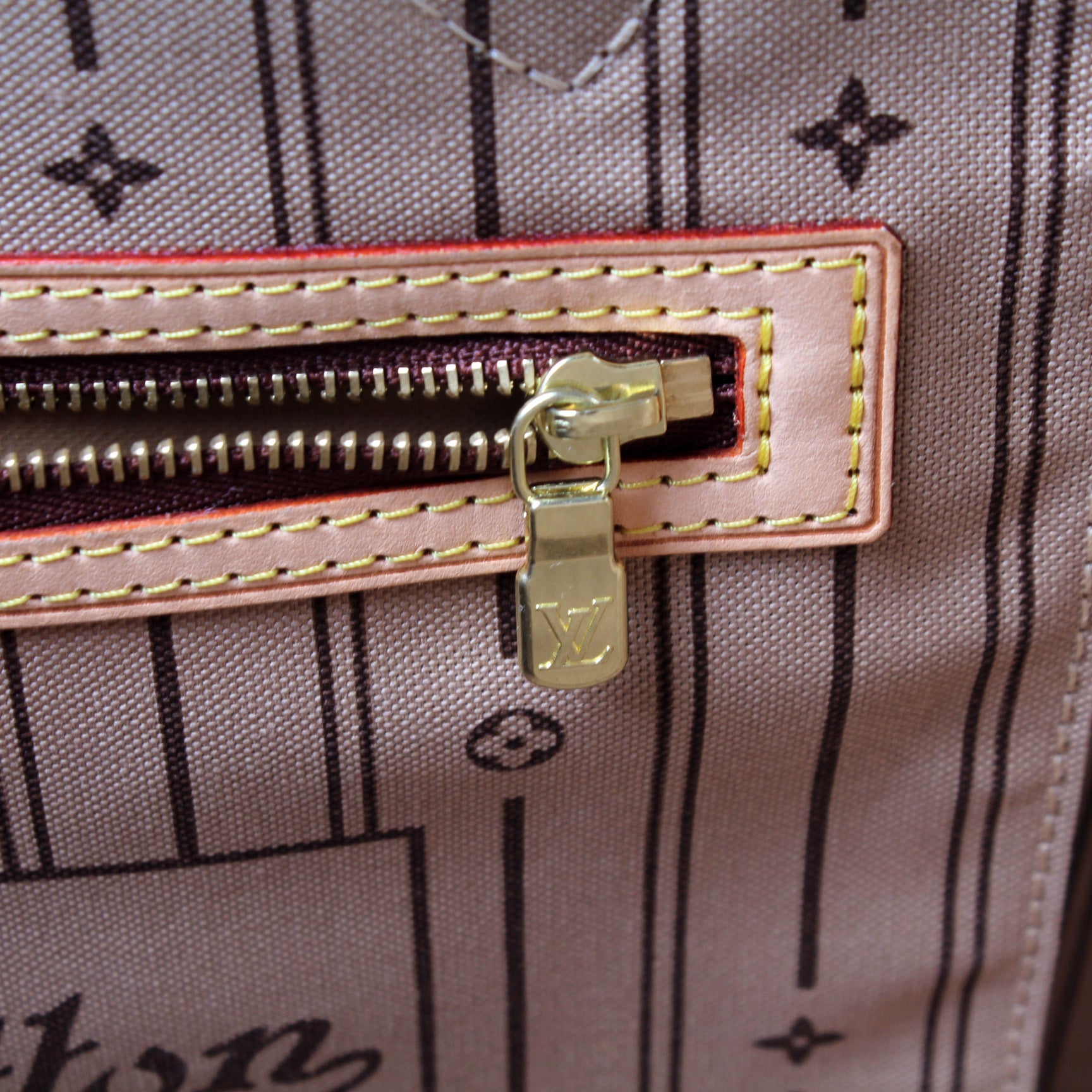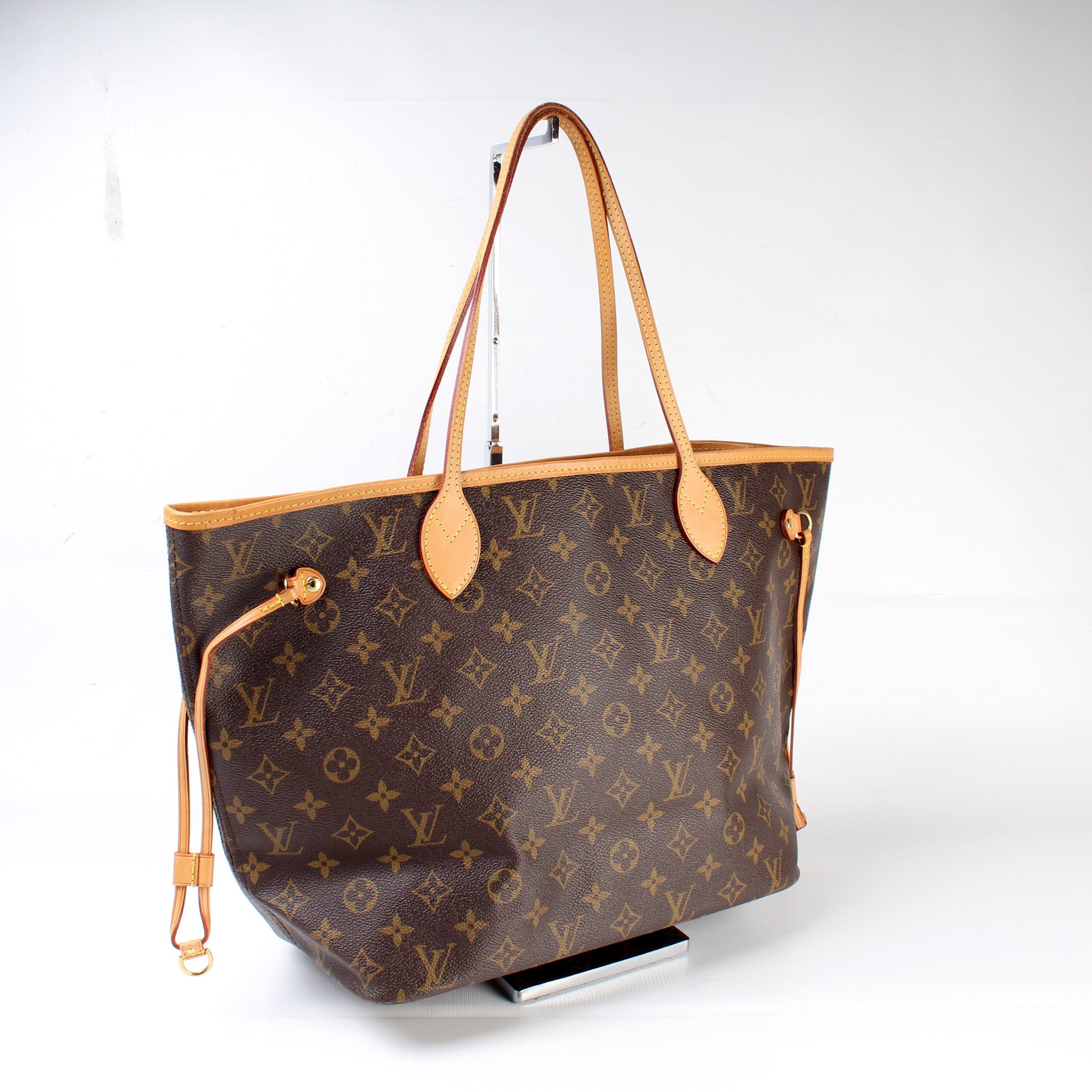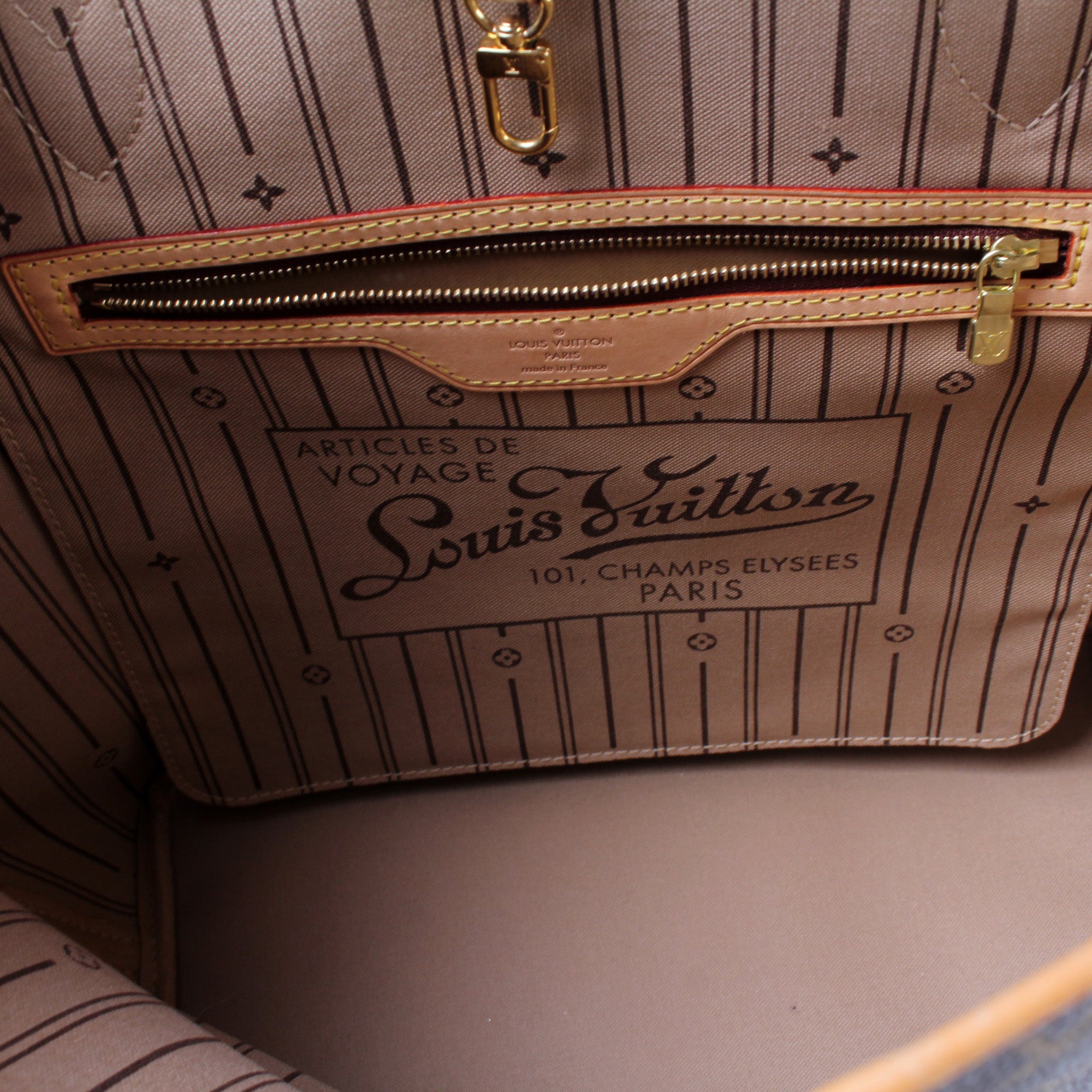 This pre-owned Louis Vuitton Neverfull MM is guaranteed 100% authentic. The exterior is in the classic Louis Vuitton Monogram coated canvas.