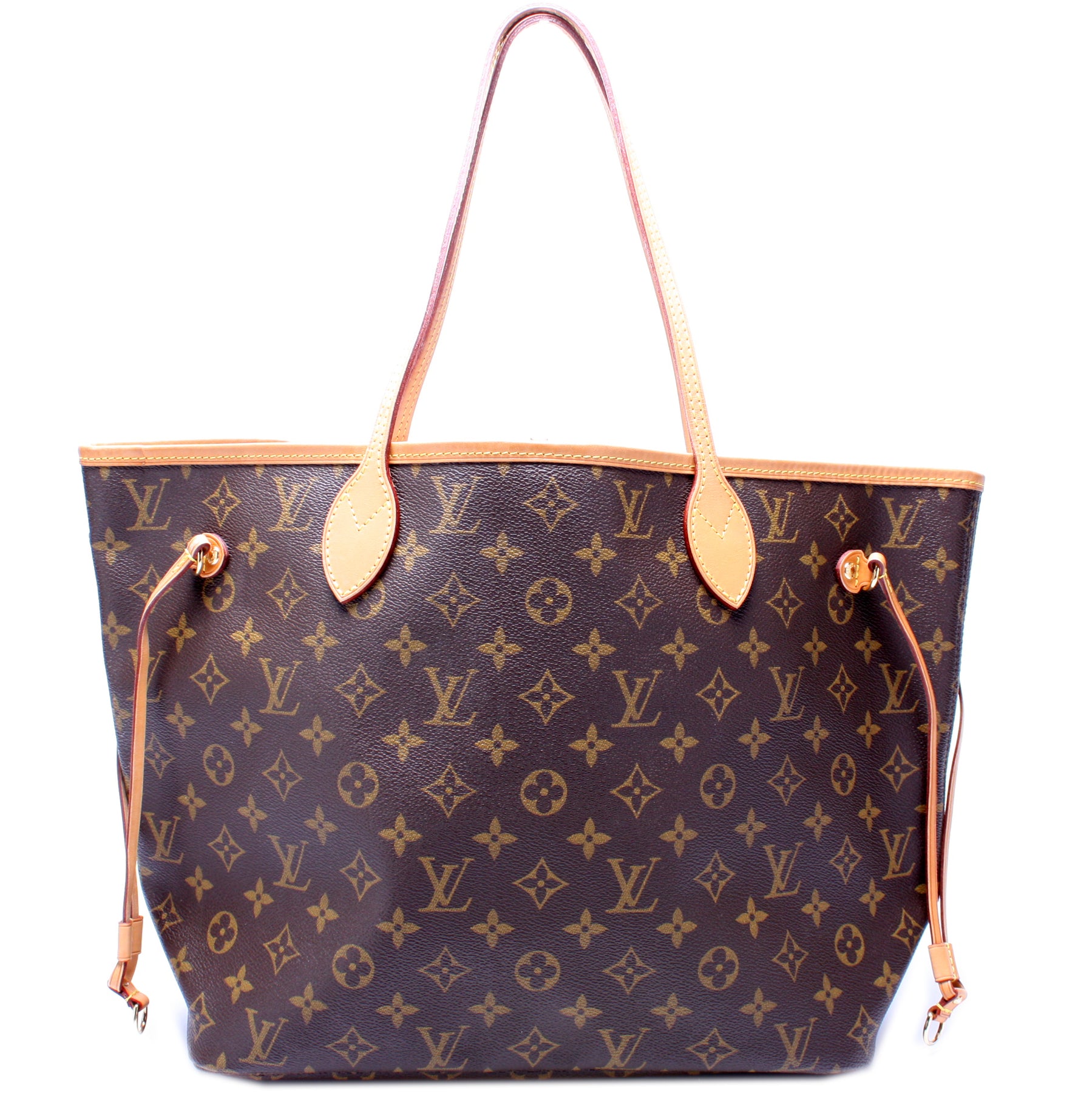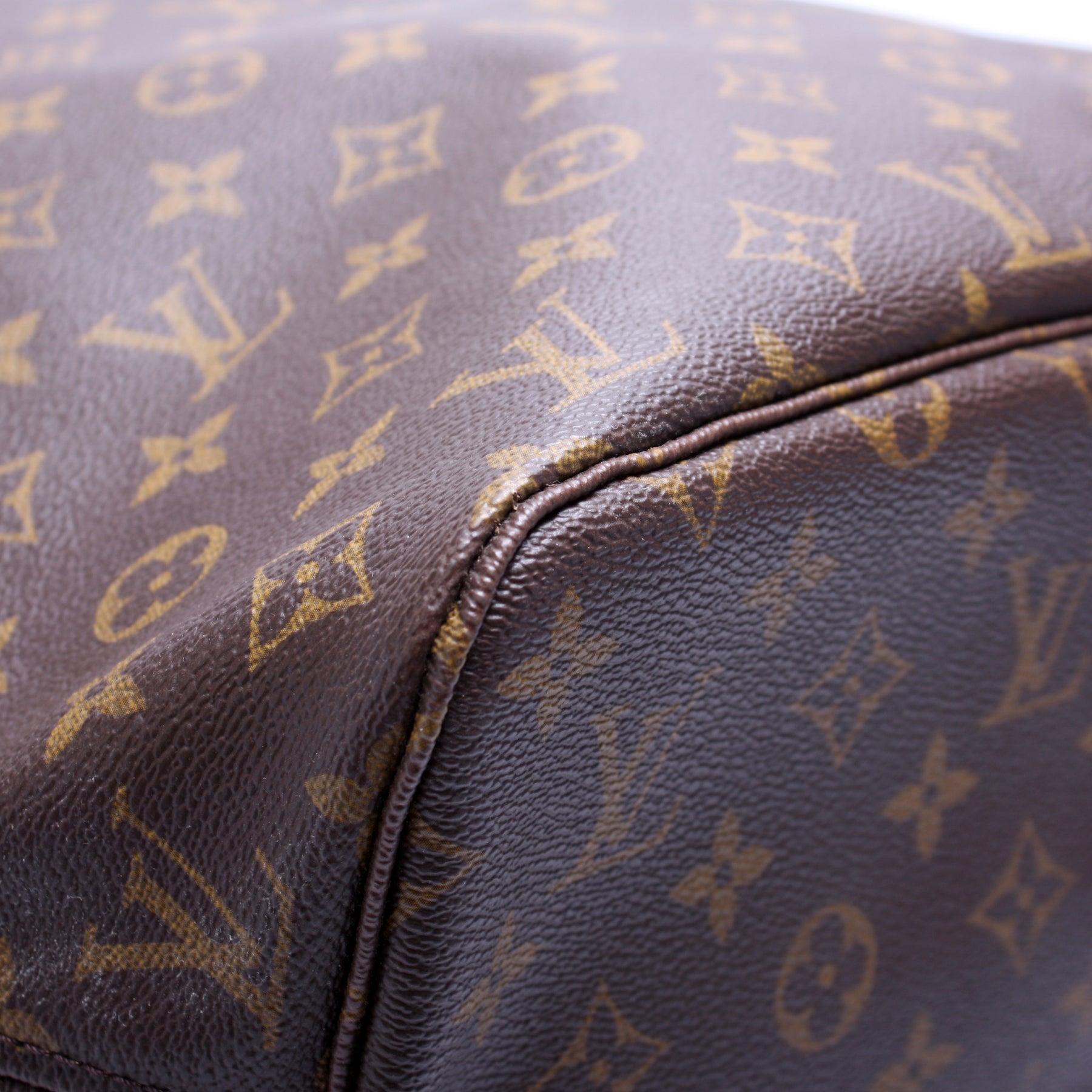 This pre-owned Louis Vuitton Neverfull MM is guaranteed 100% authentic. The exterior is in the classic Louis Vuitton Monogram coated canvas.