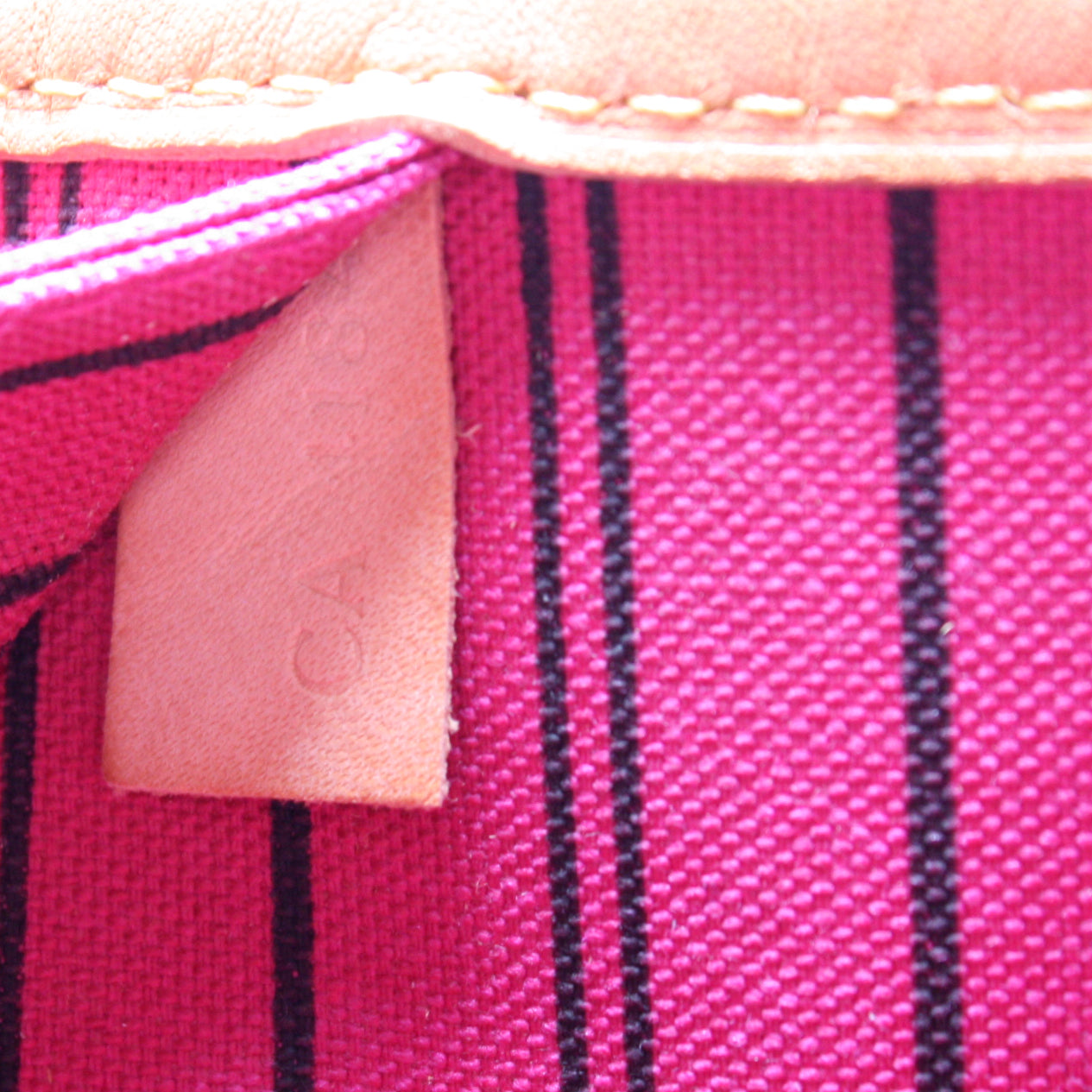 Handle: The leather handles have light discoloration.