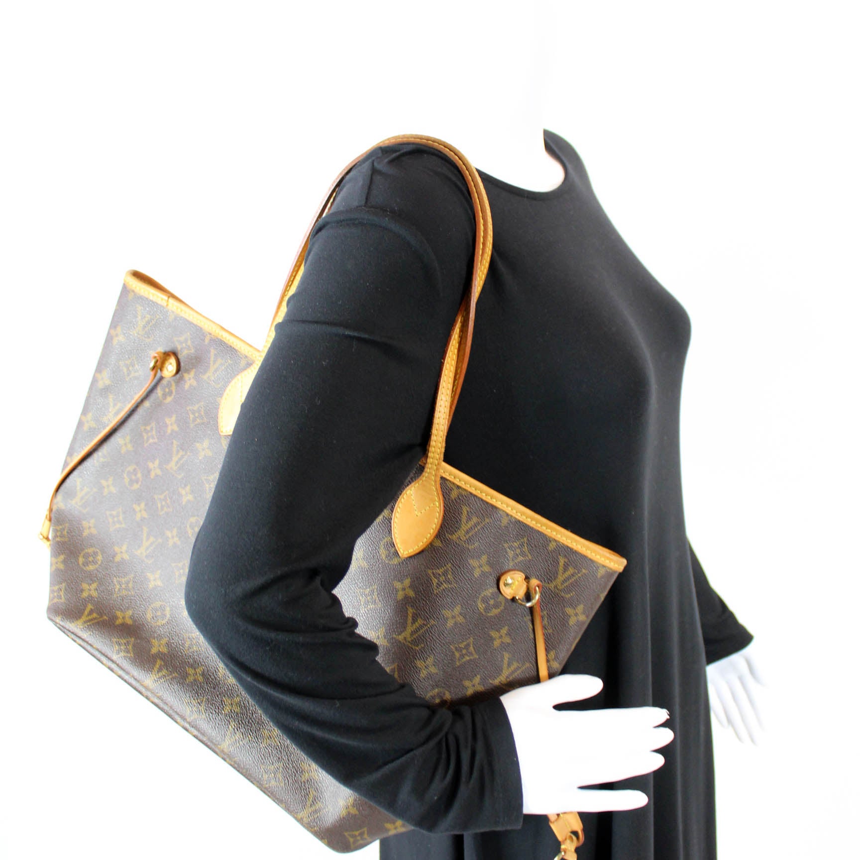 This pre-owned Louis Vuitton Neverfull MM is guaranteed 100% authentic. The exterior is in the classic Louis Vuitton Monogram coated canvas.