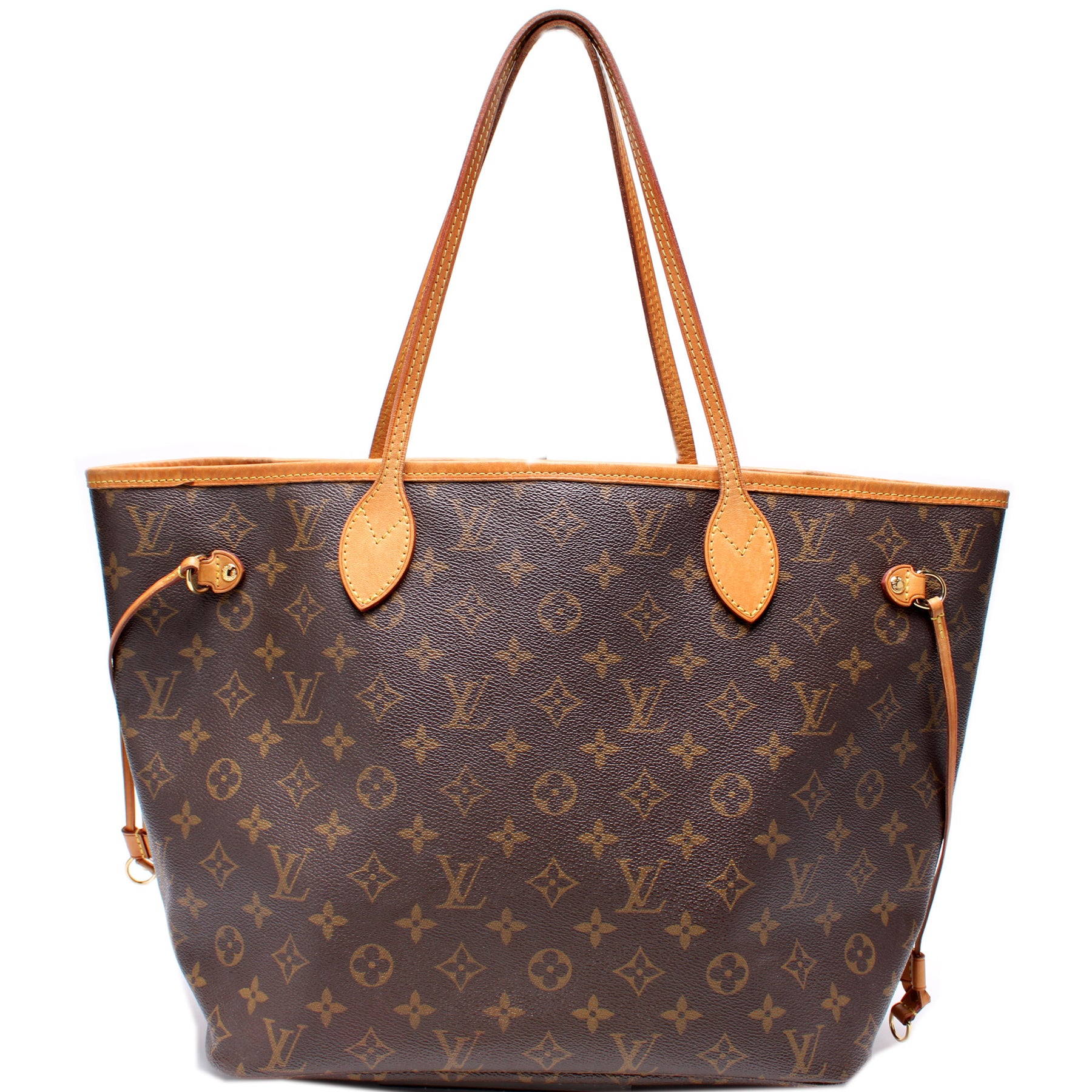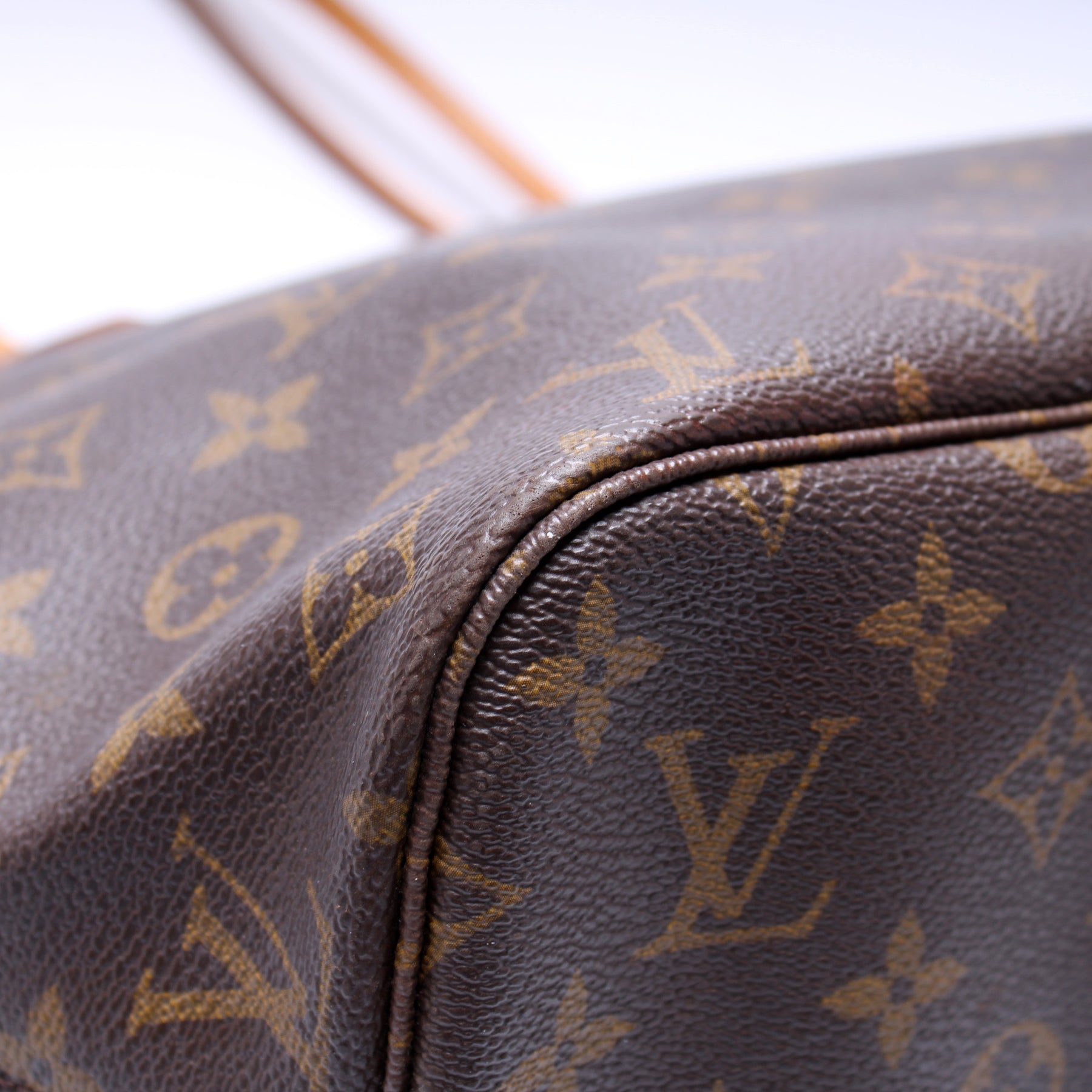 This pre-owned Louis Vuitton Neverfull MM is guaranteed 100% authentic. The exterior is in the classic Louis Vuitton Monogram coated canvas.