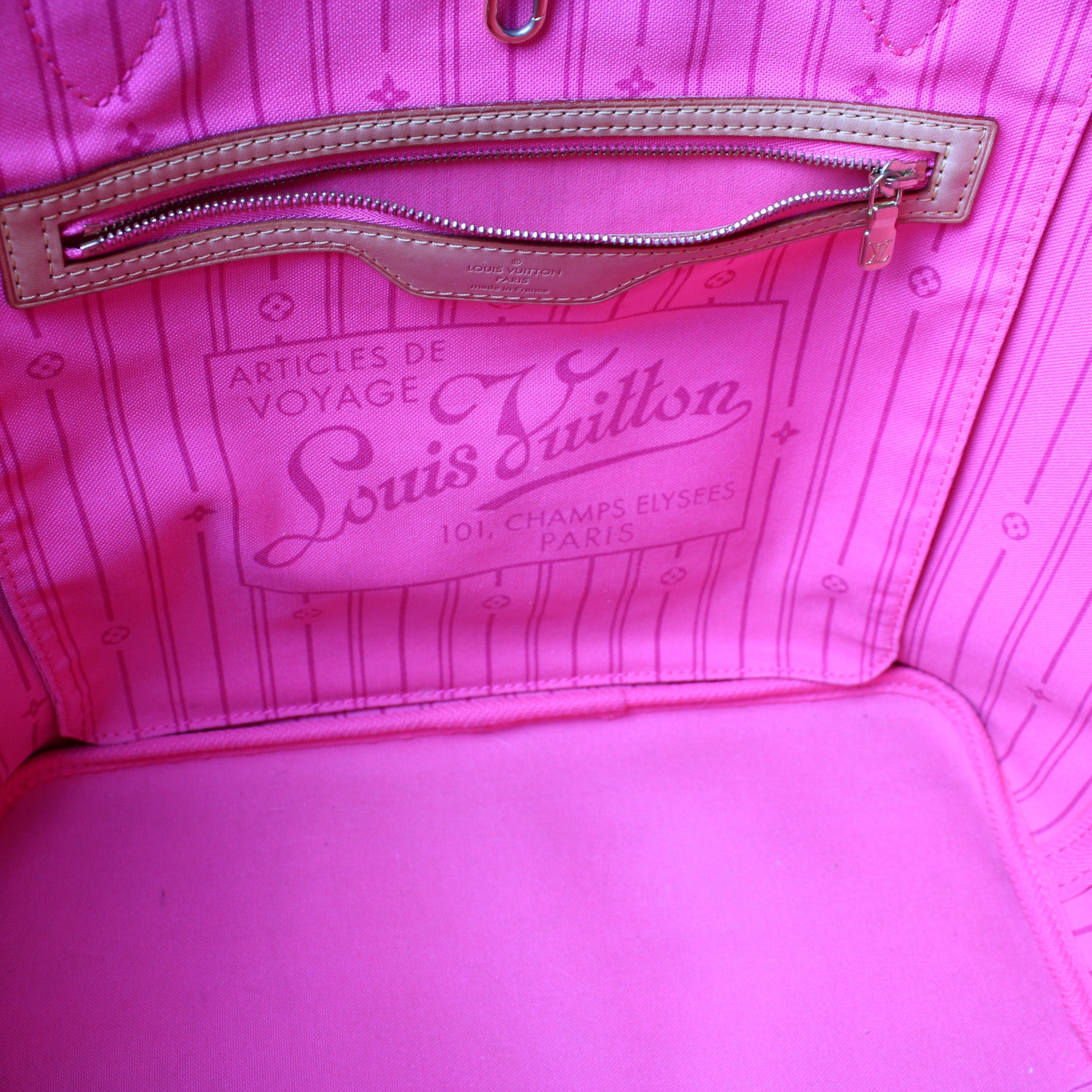 This pre-owned Louis Vuitton Neverfull MM is guaranteed 100% authentic. The exterior is in the classic Louis Vuitton monogram roses coated canvas.