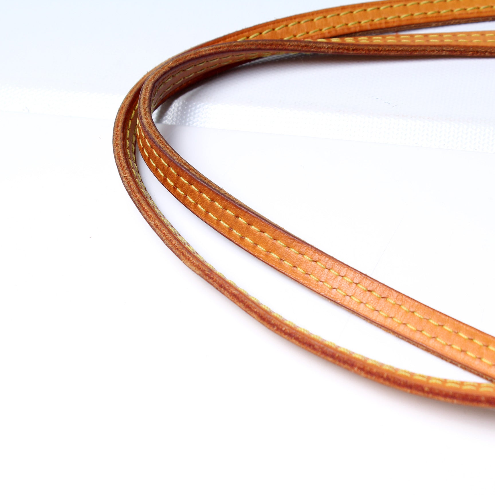 Exterior: The exterior canvas is free of any cracking. The corners have light rubbing. The leather trim have major discoloration and wear along the pipping.