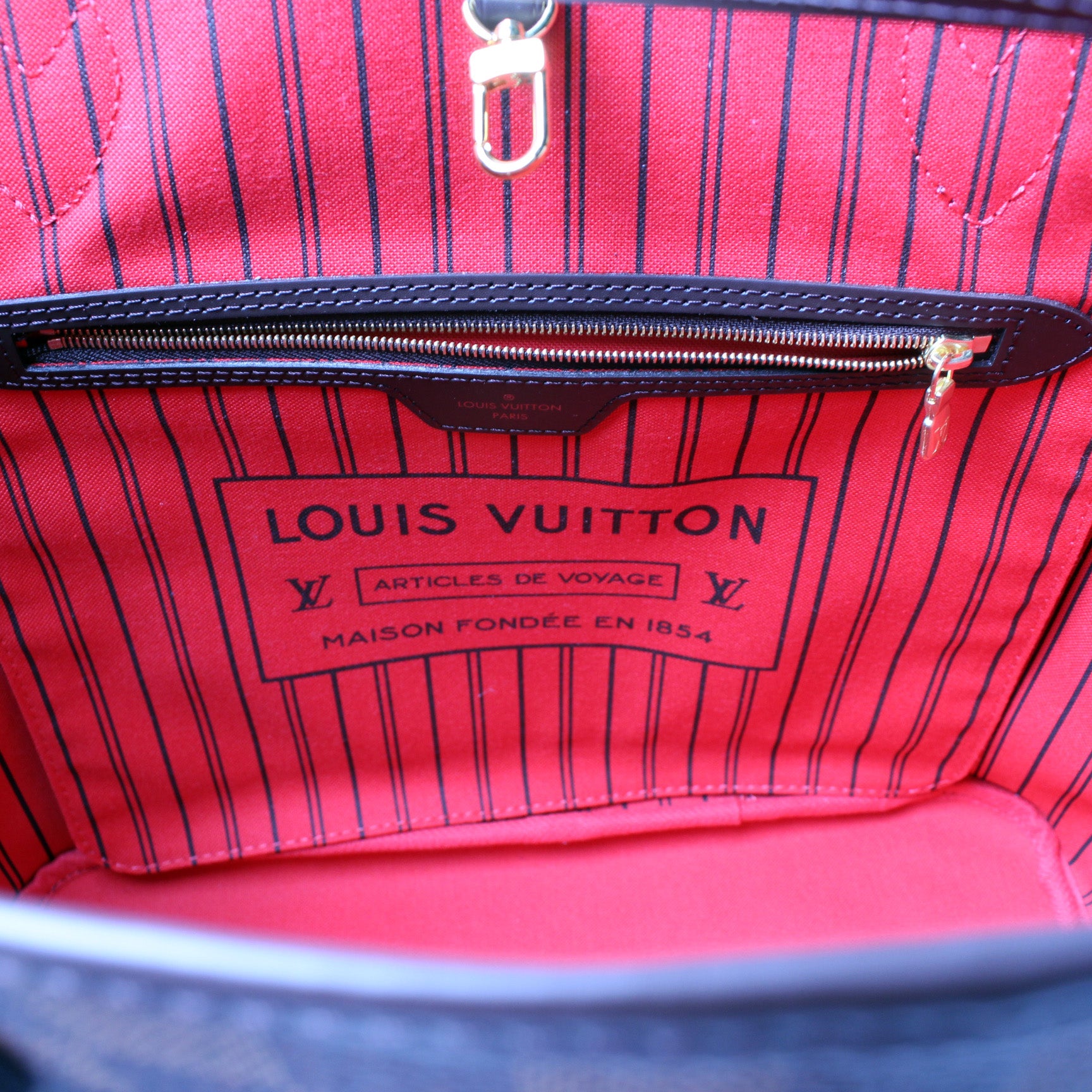 Interior: The interior is clean and free of rips or tears. The interior features one zip closure pocket and one removable pochette.