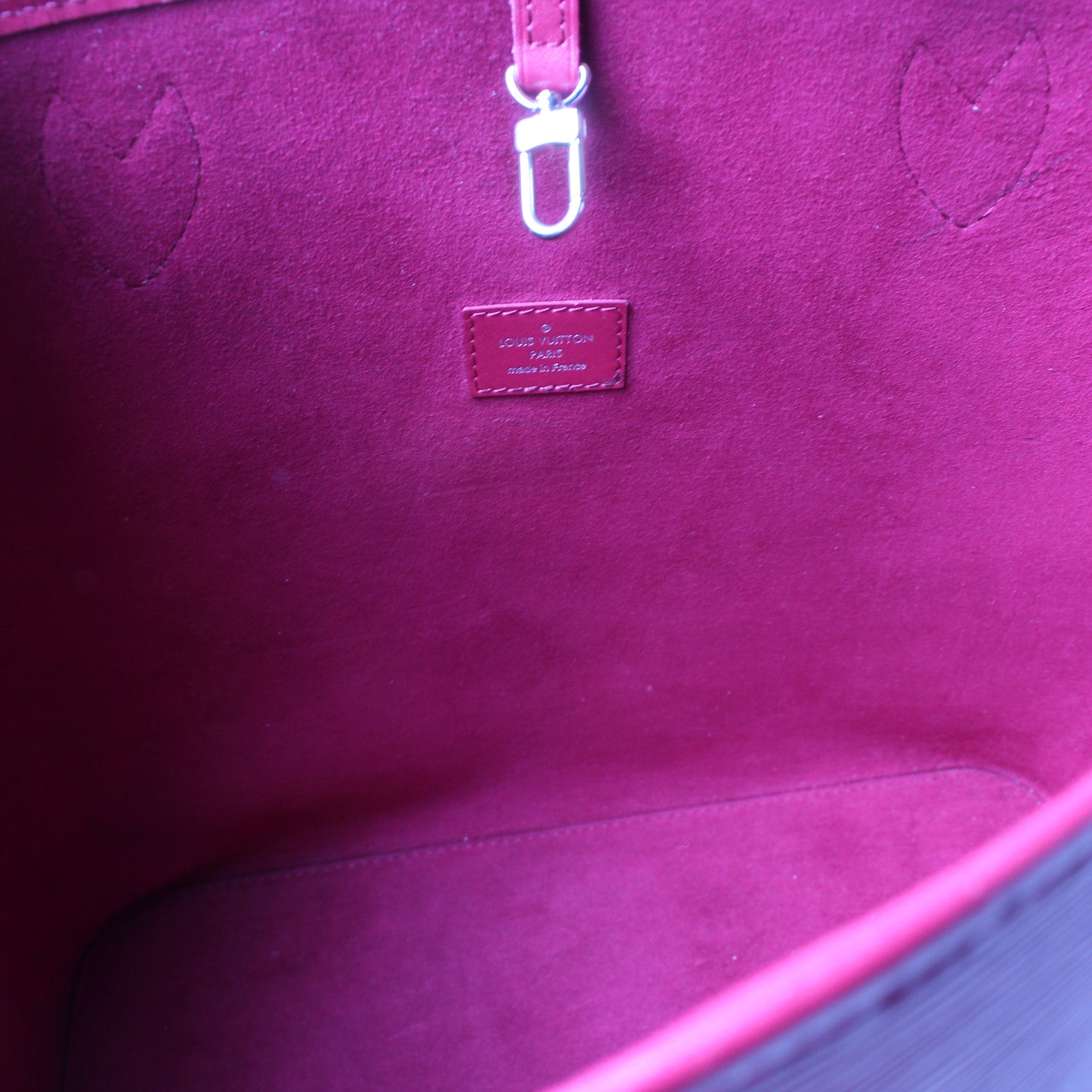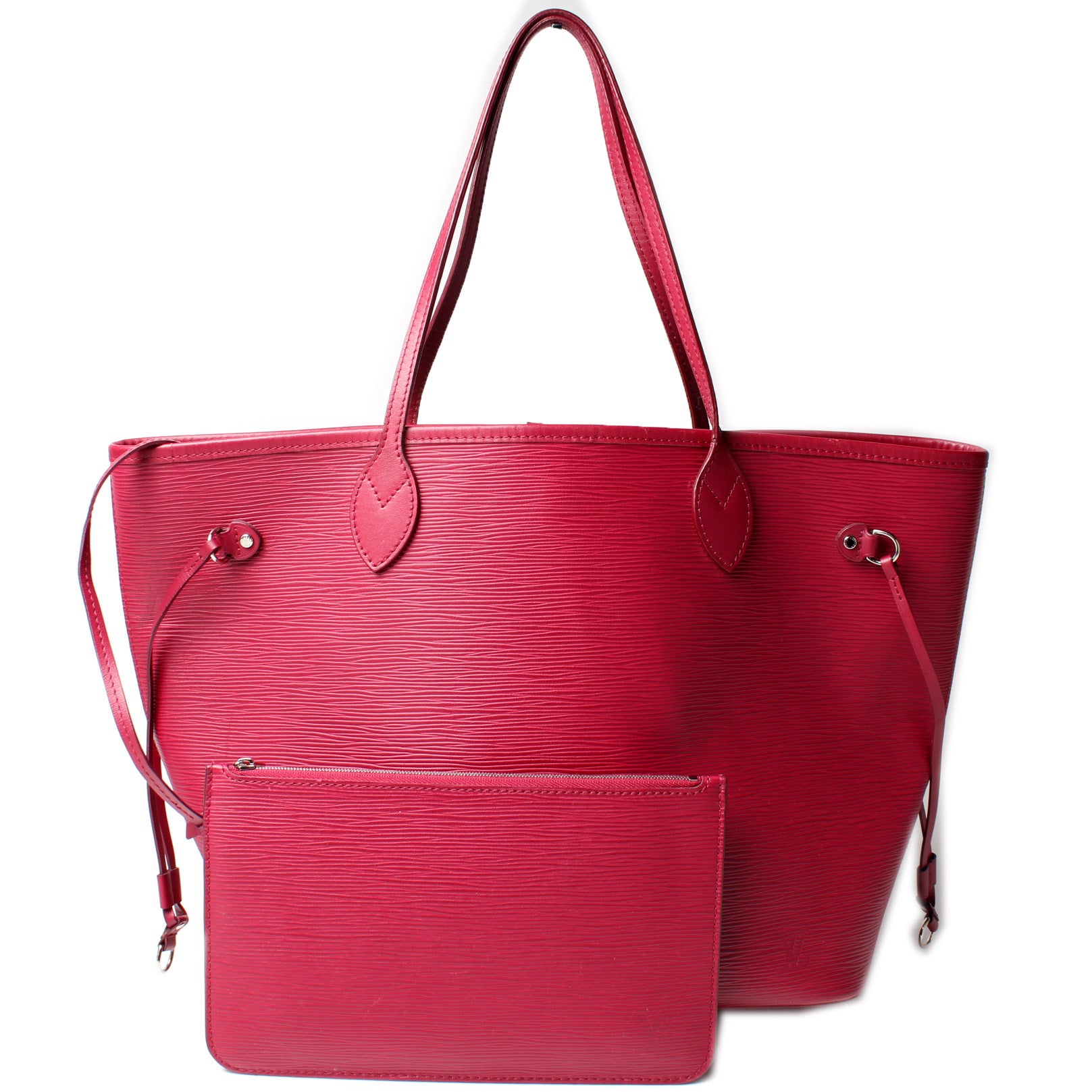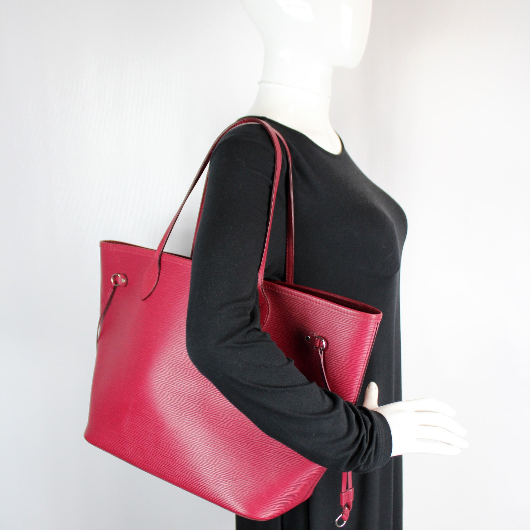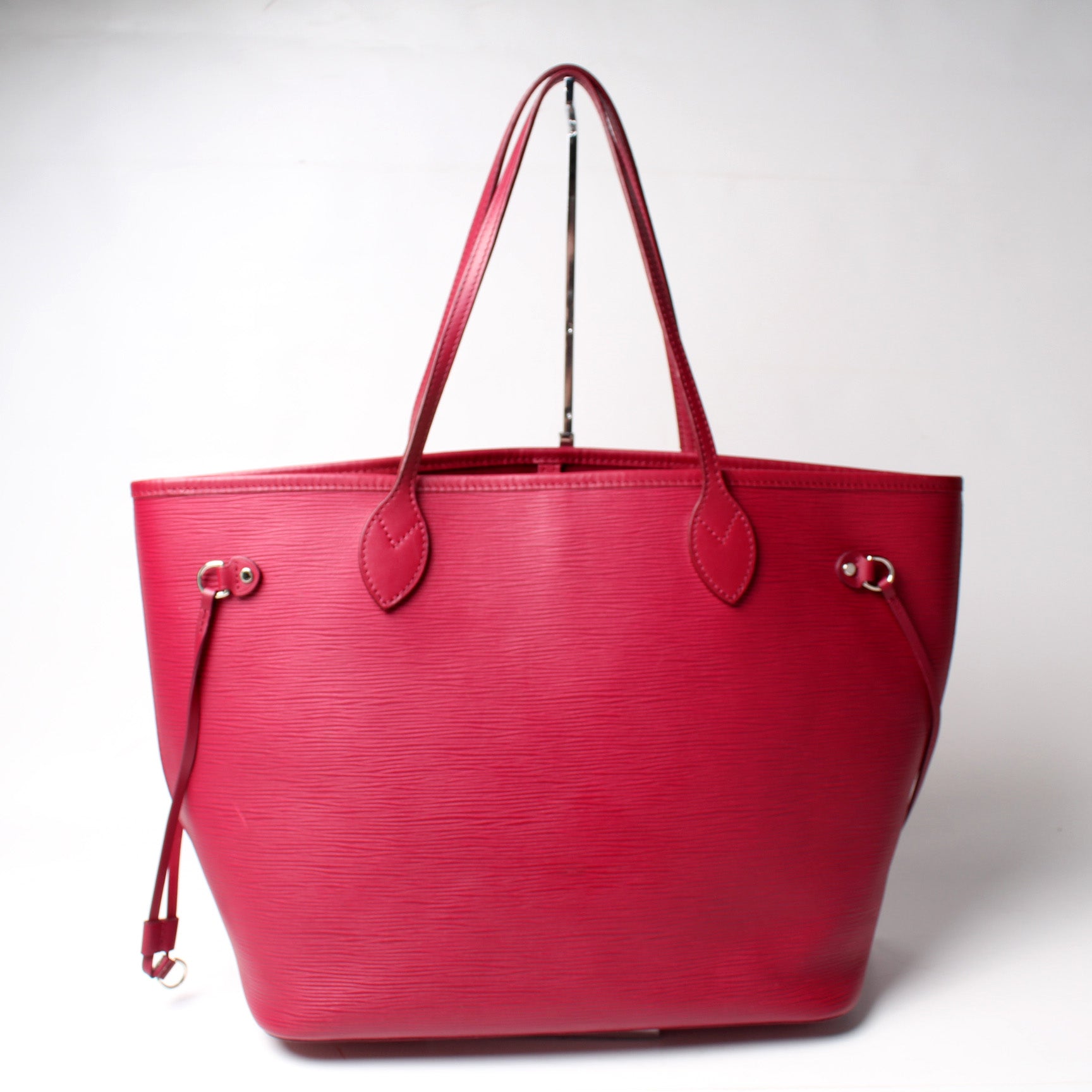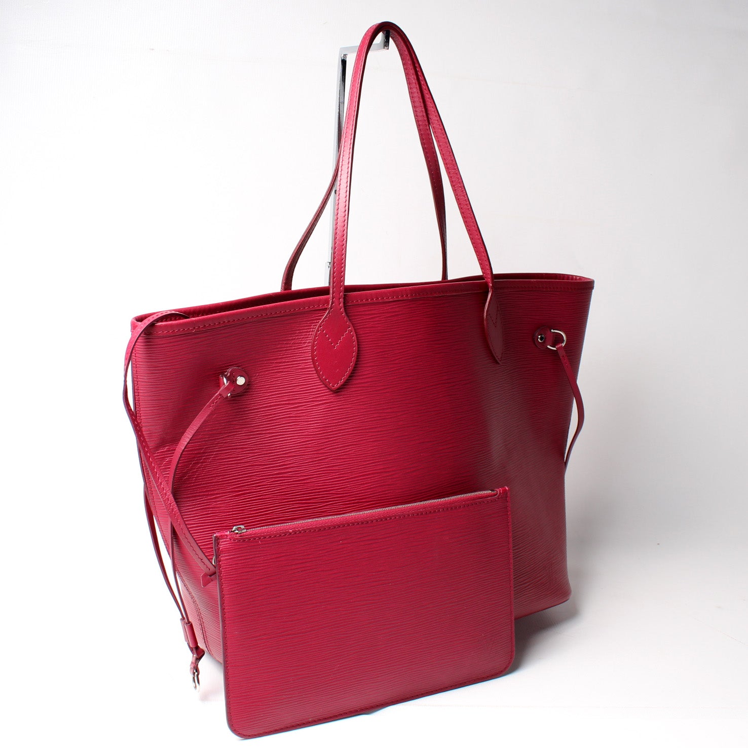 This pre-owned Louis Vuitton Neverfull MM W/ Wallet is guaranteed 100% authentic. The exterior is in the classic Louis Vuitton Epi leather.