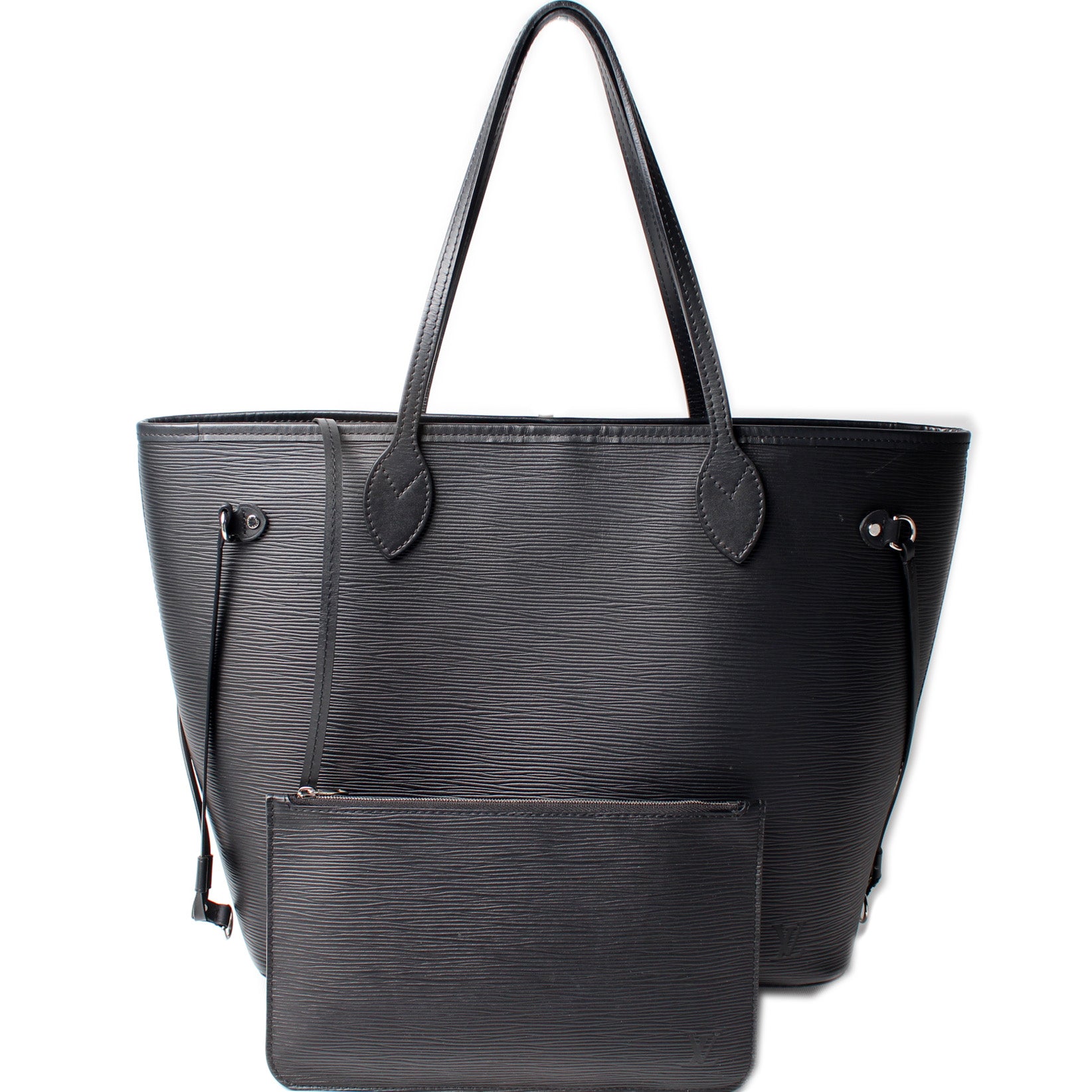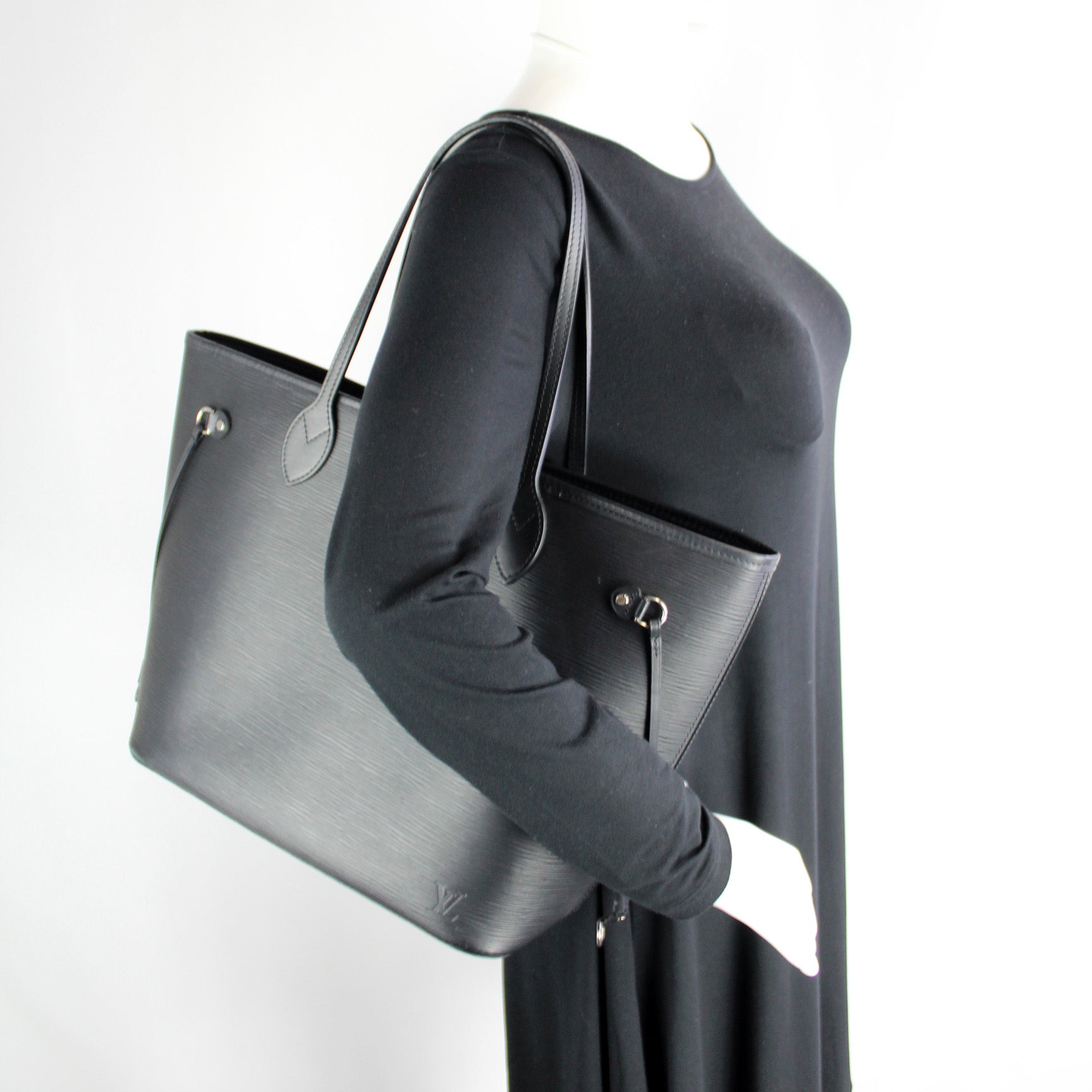 This pre-owned Louis Vuitton Neverfull W/Wallet MM is guaranteed 100% authentic. The exterior is in the classic Louis Vuitton Epi leather.