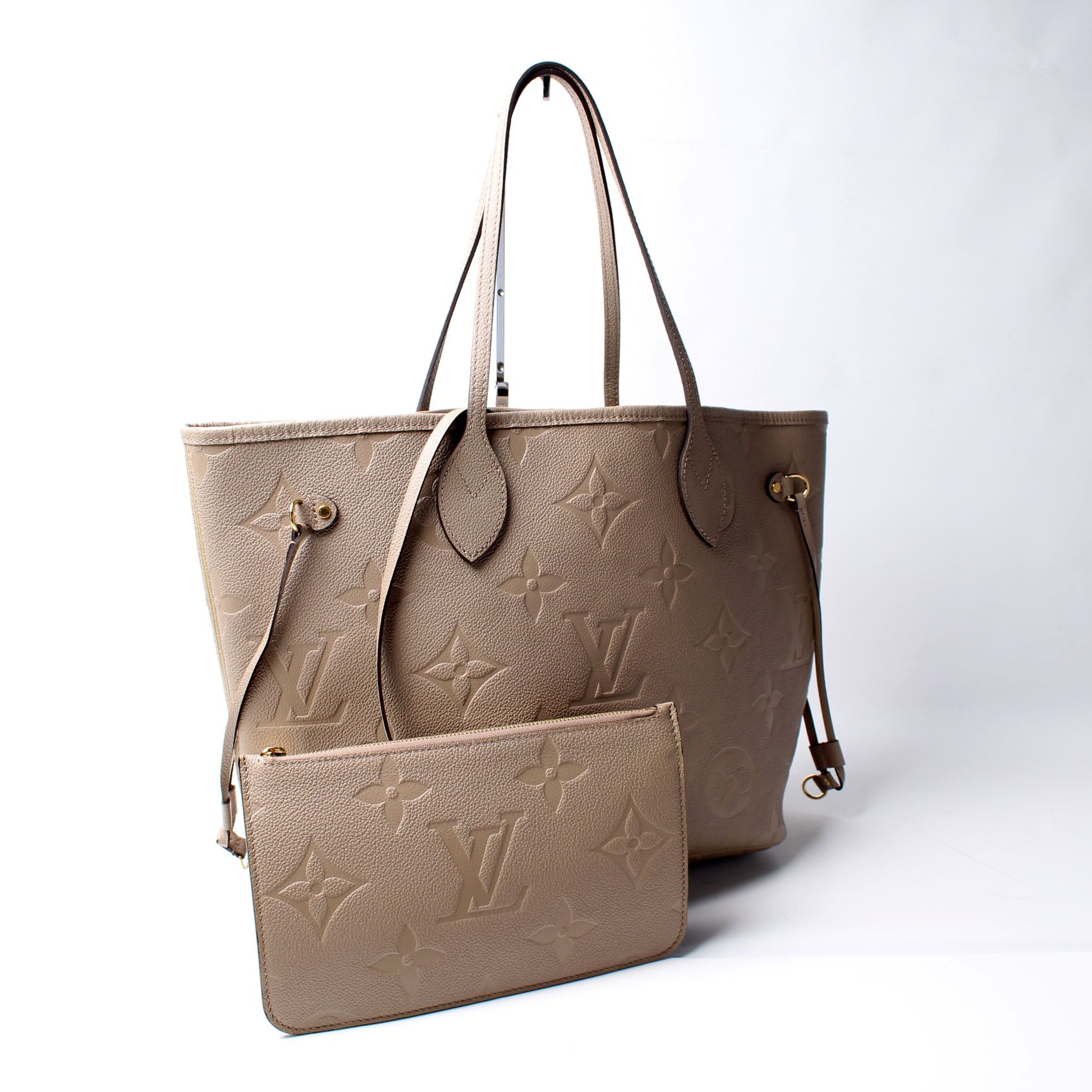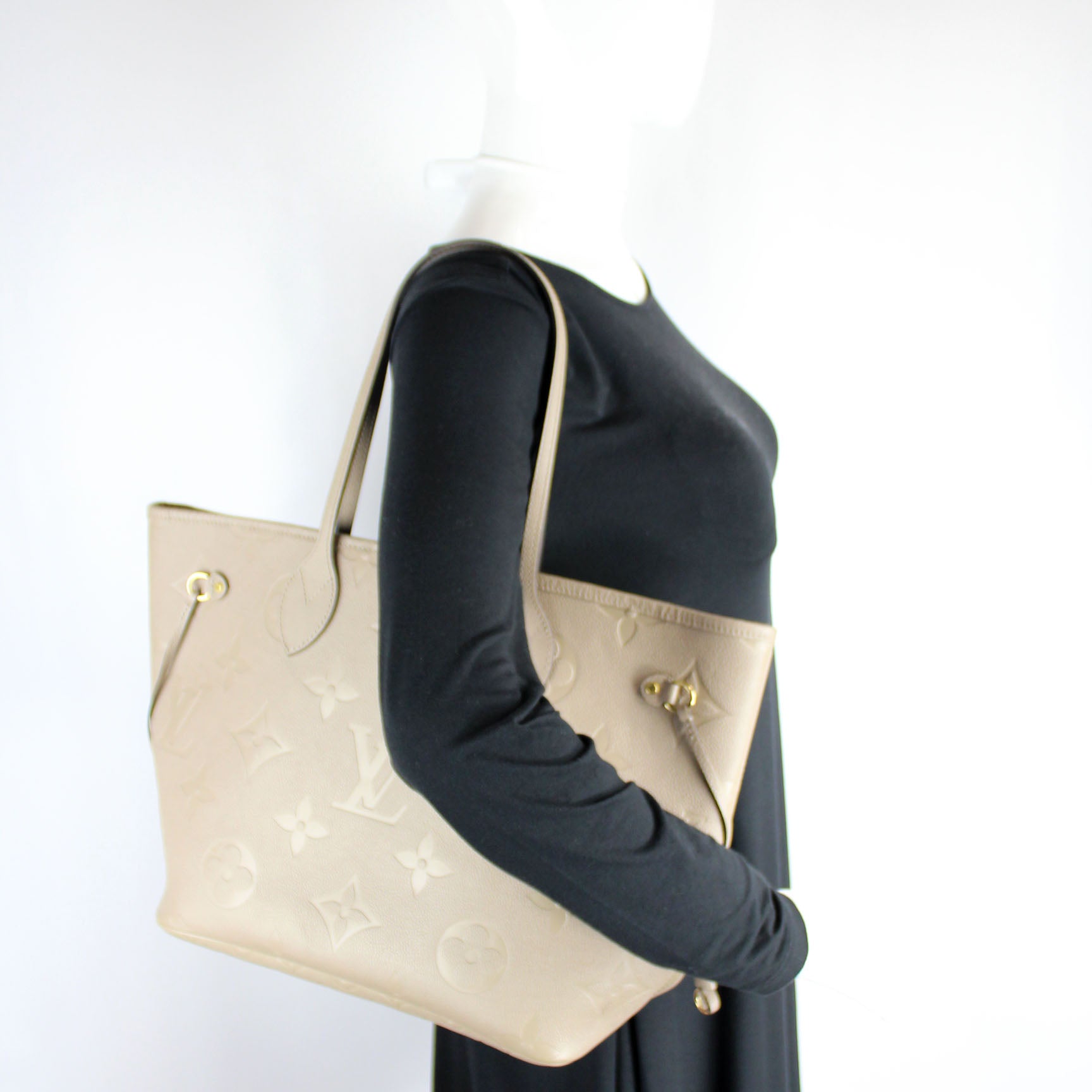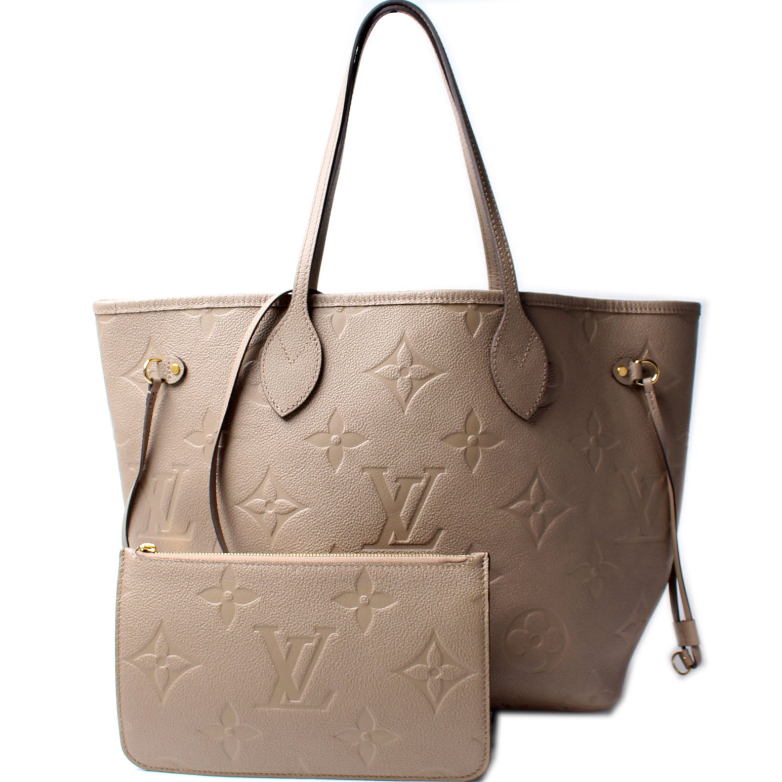 This pre-owned Louis Vuitton Neverfull MM W/Wallet is guaranteed 100% authentic. The exterior is in the classic Louis Vuitton Empreinte leather.