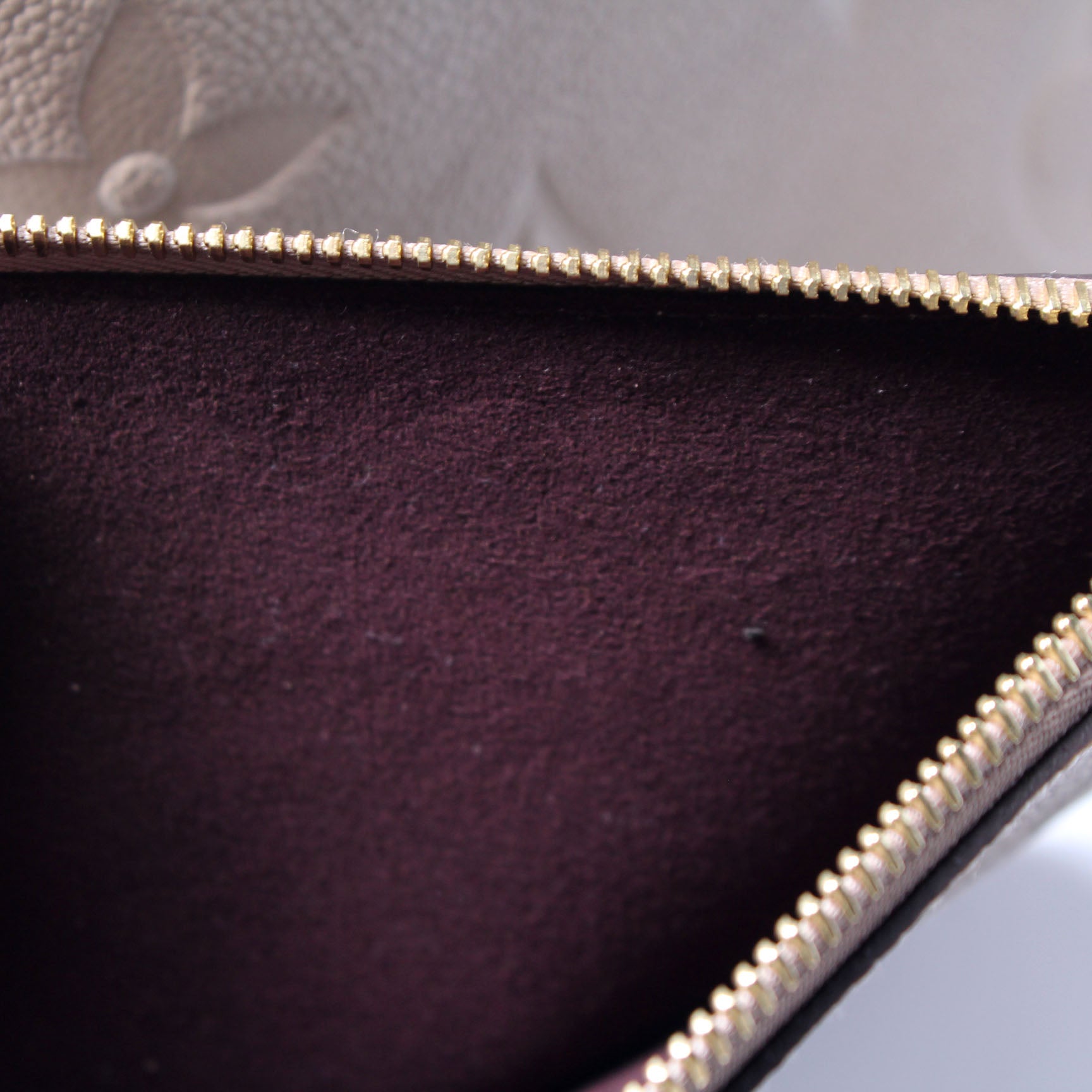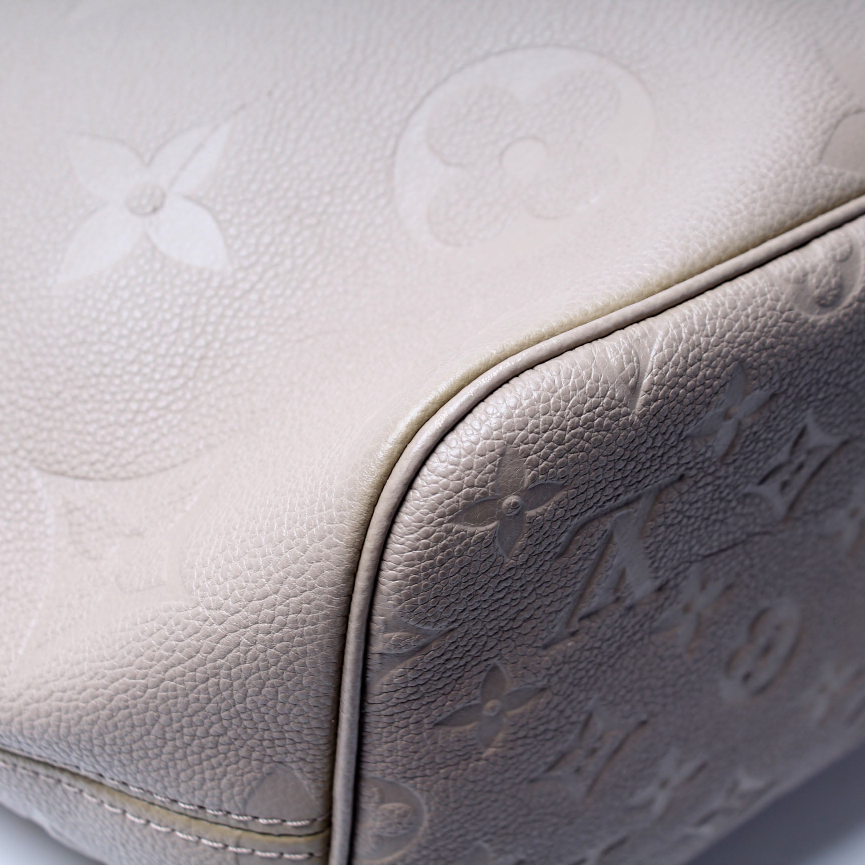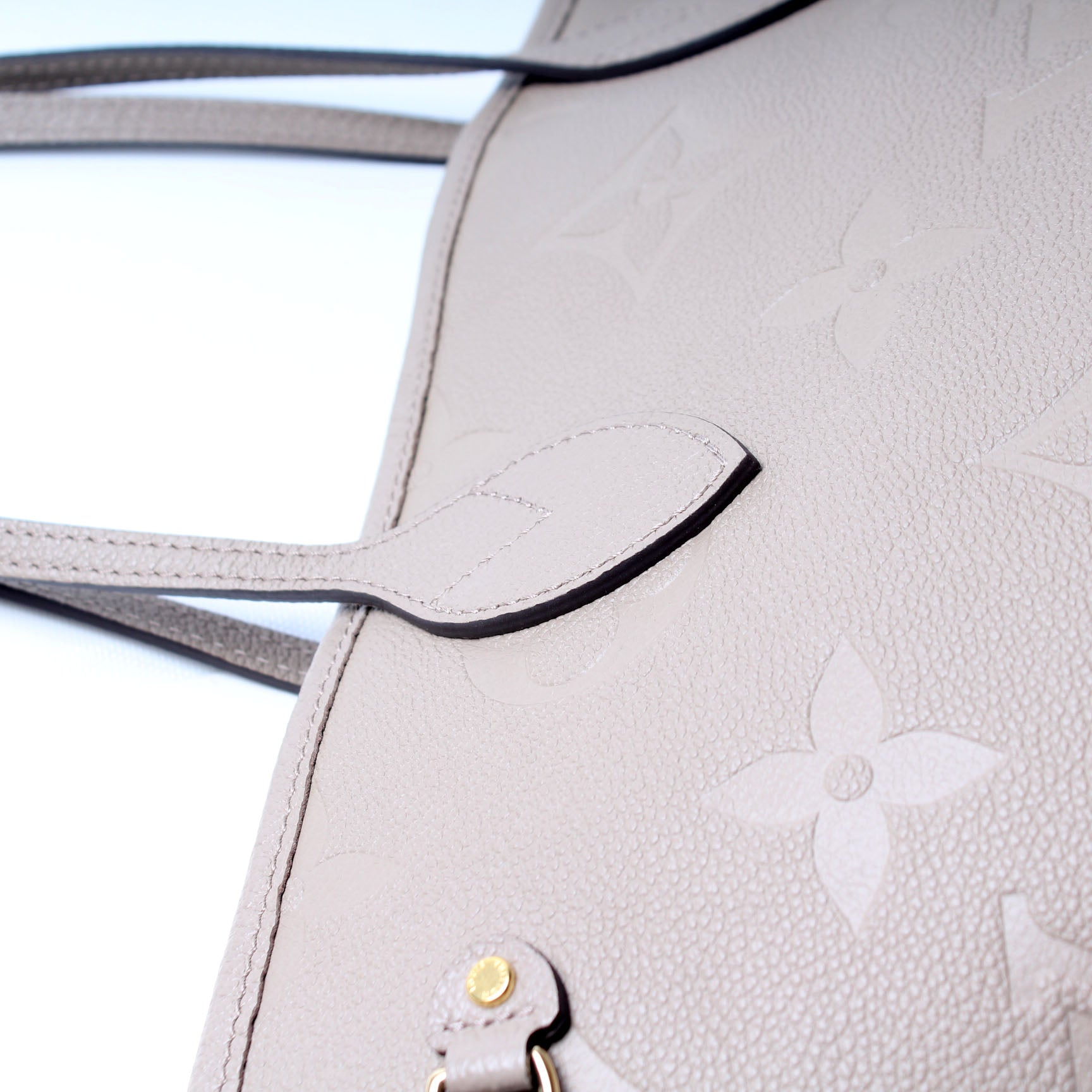 This pre-owned Louis Vuitton Neverfull MM W/Wallet is guaranteed 100% authentic. The exterior is in the classic Louis Vuitton Empreinte leather.