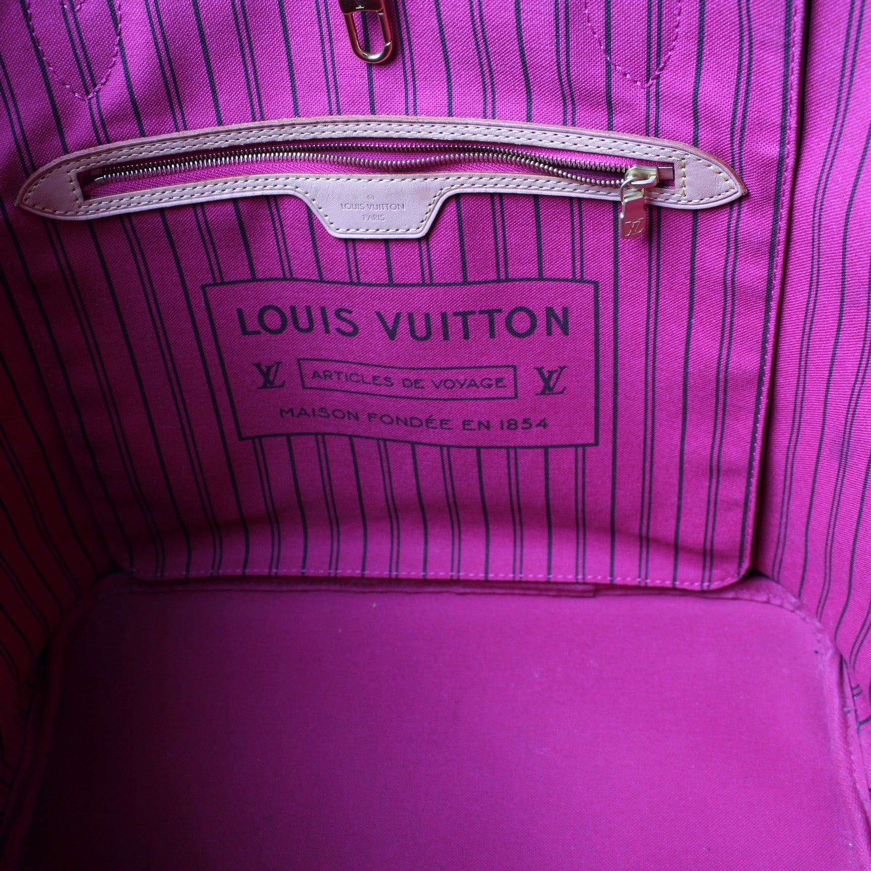 This pre-owned Louis Vuitton Neverfull MM is guaranteed 100% authentic. The exterior is in the classic Louis Vuitton Monogram coated canvas.