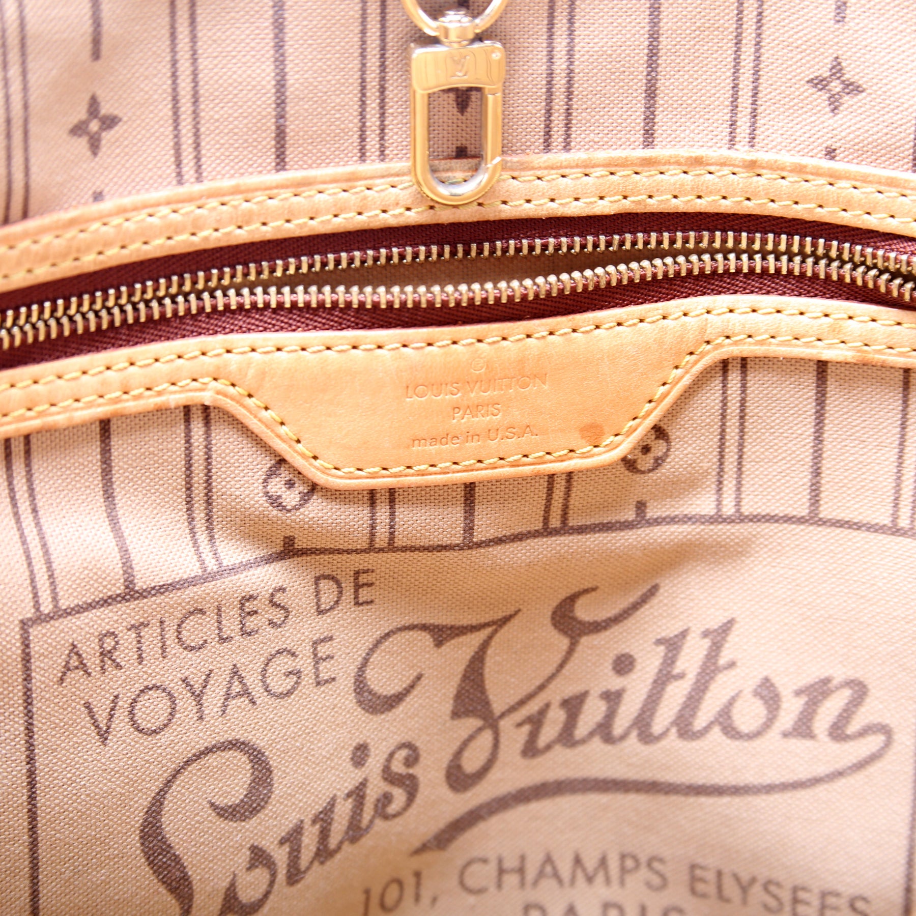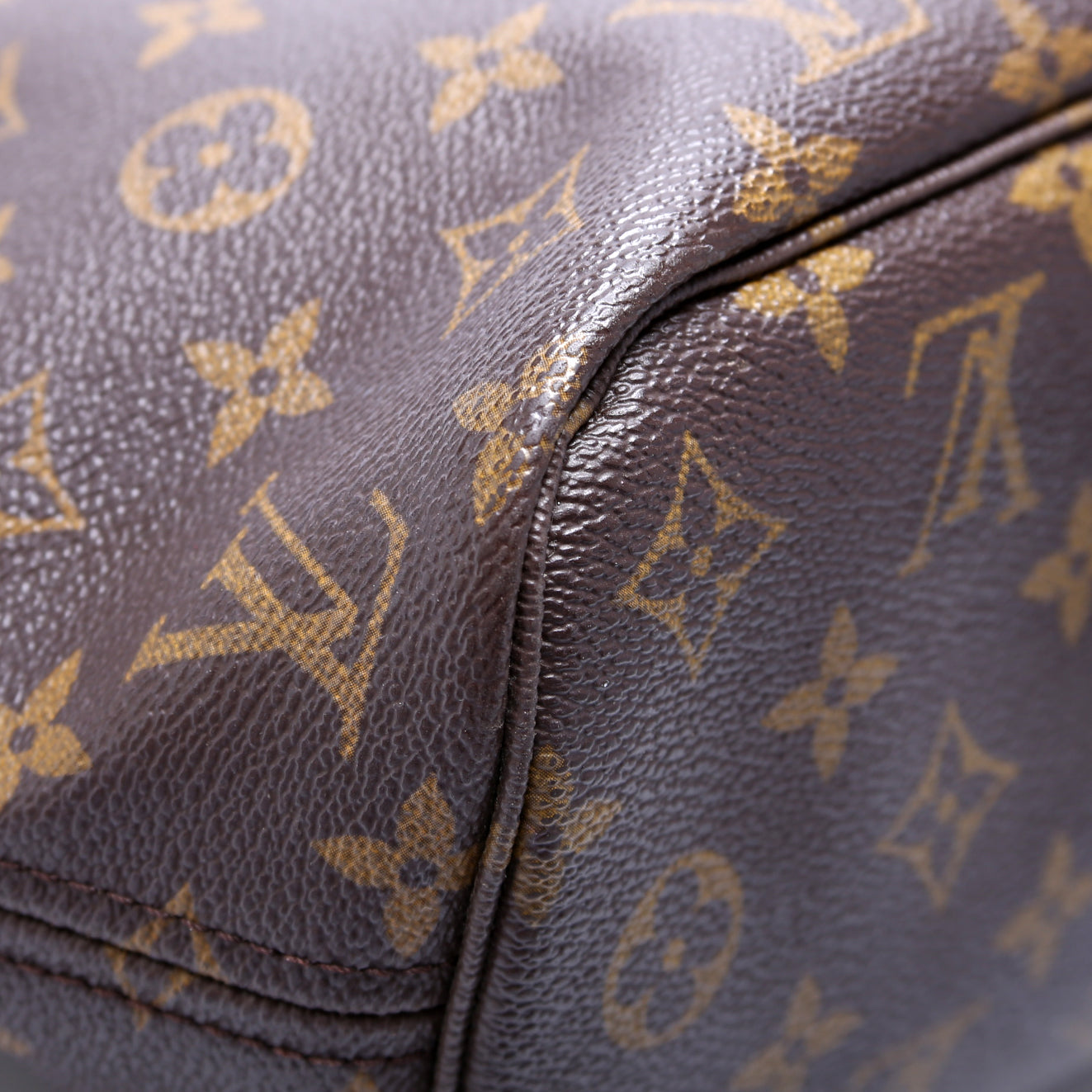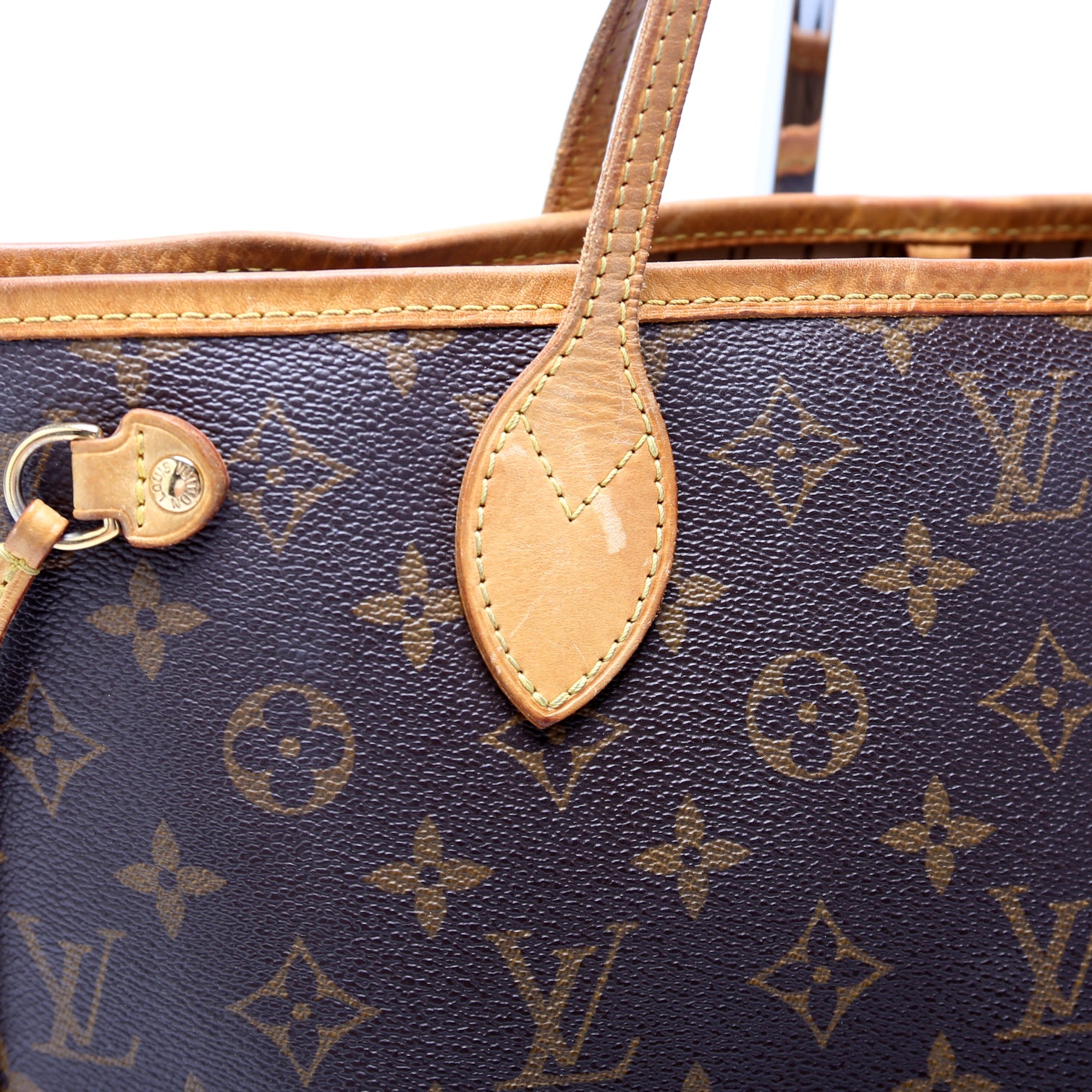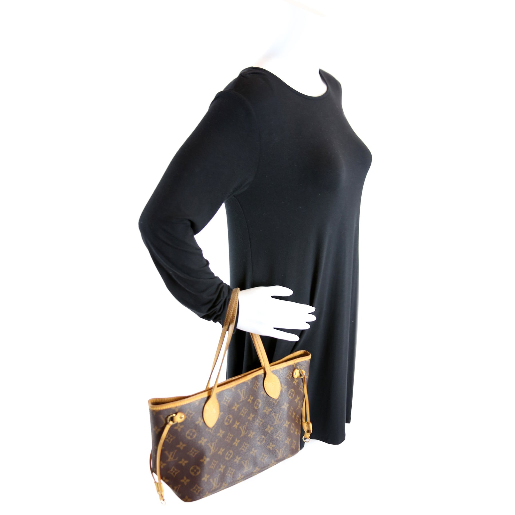 This pre-owned Louis Vuitton Neverfull PM is guaranteed 100% authentic. The exterior is in the classic Louis Vuitton Monogram coated canvas.