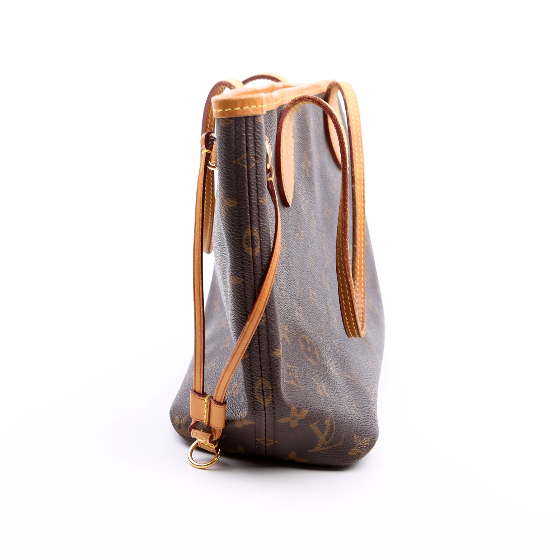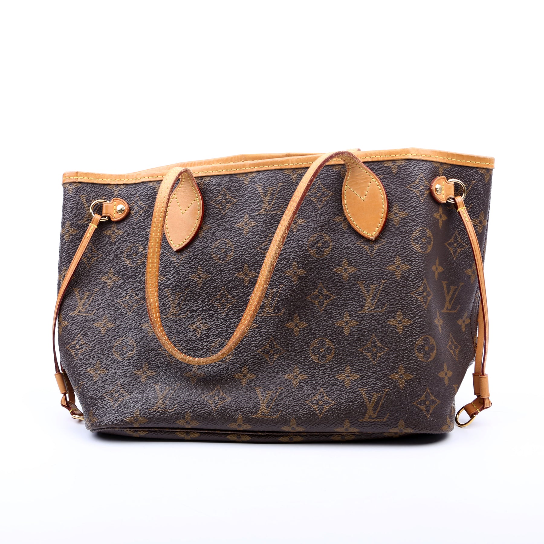 This pre-owned Louis Vuitton Neverfull PM is guaranteed 100% authentic. The exterior is in the classic Louis Vuitton Monogram coated canvas.
