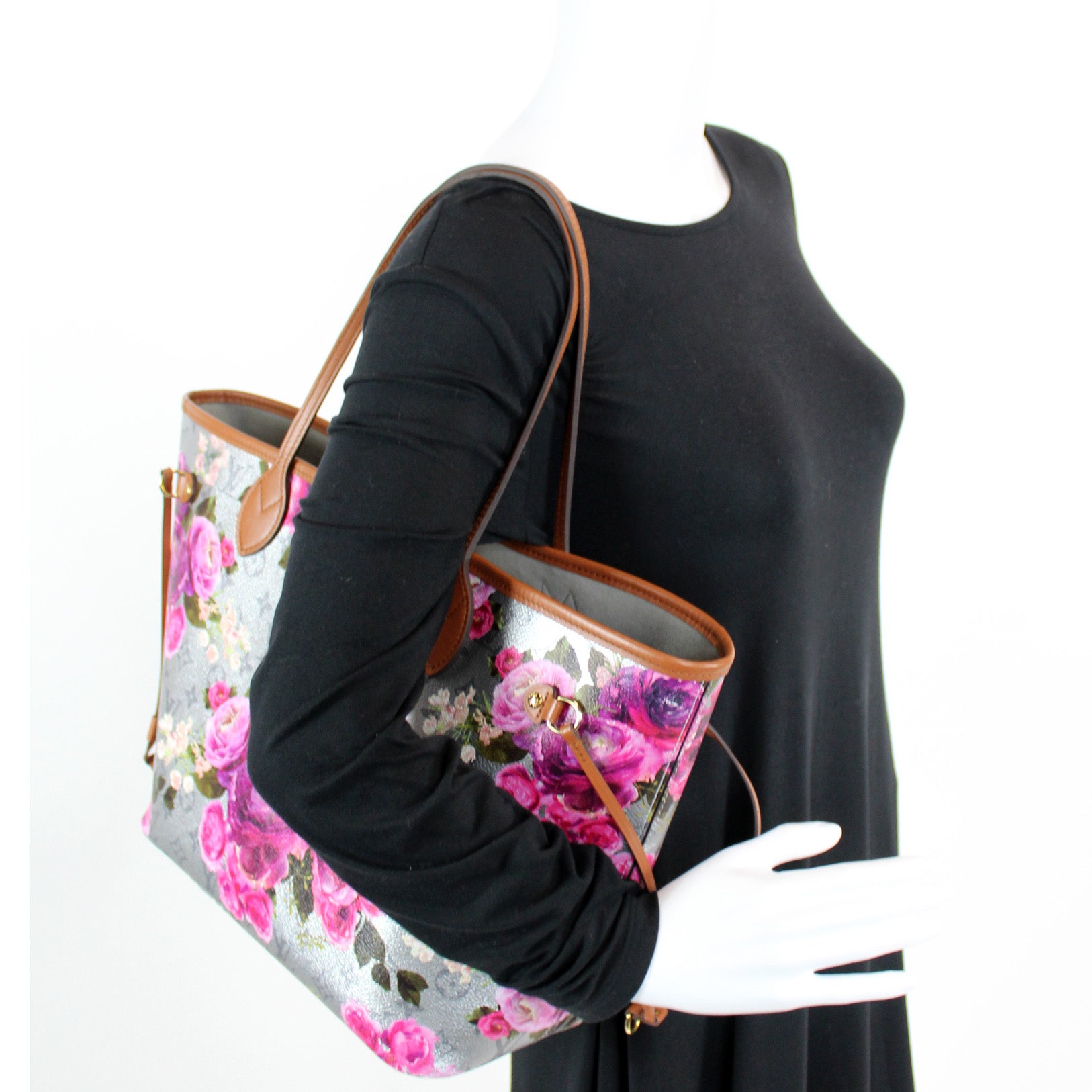 This pre-owned Louis Vuitton Neverfull MM is guaranteed 100% authentic. The exterior is in the classic Louis Vuitton Garden capsule canvas.