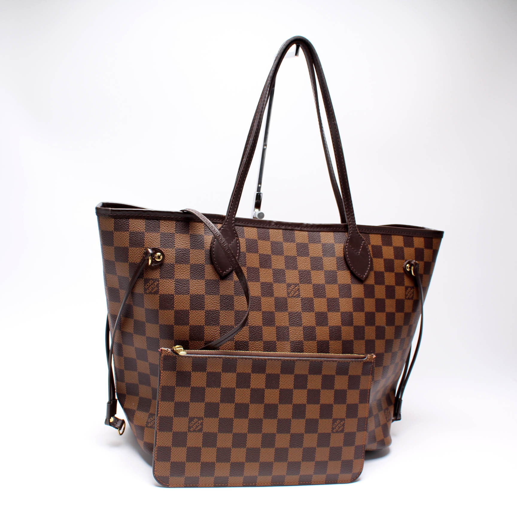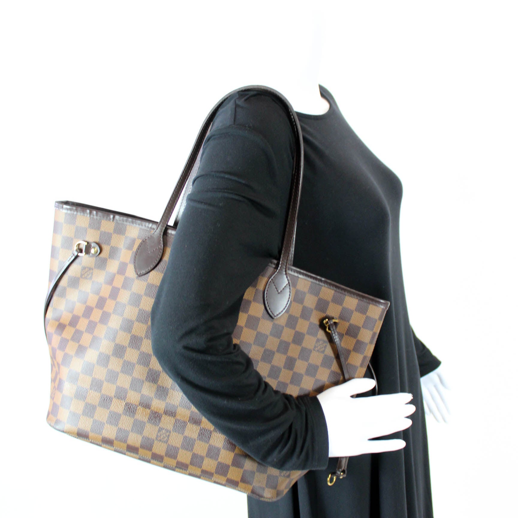This pre-owned Louis Vuitton Neverfull MM is guaranteed 100% authentic. The exterior is in the classic Louis Vuitton Monogram coated canvas.