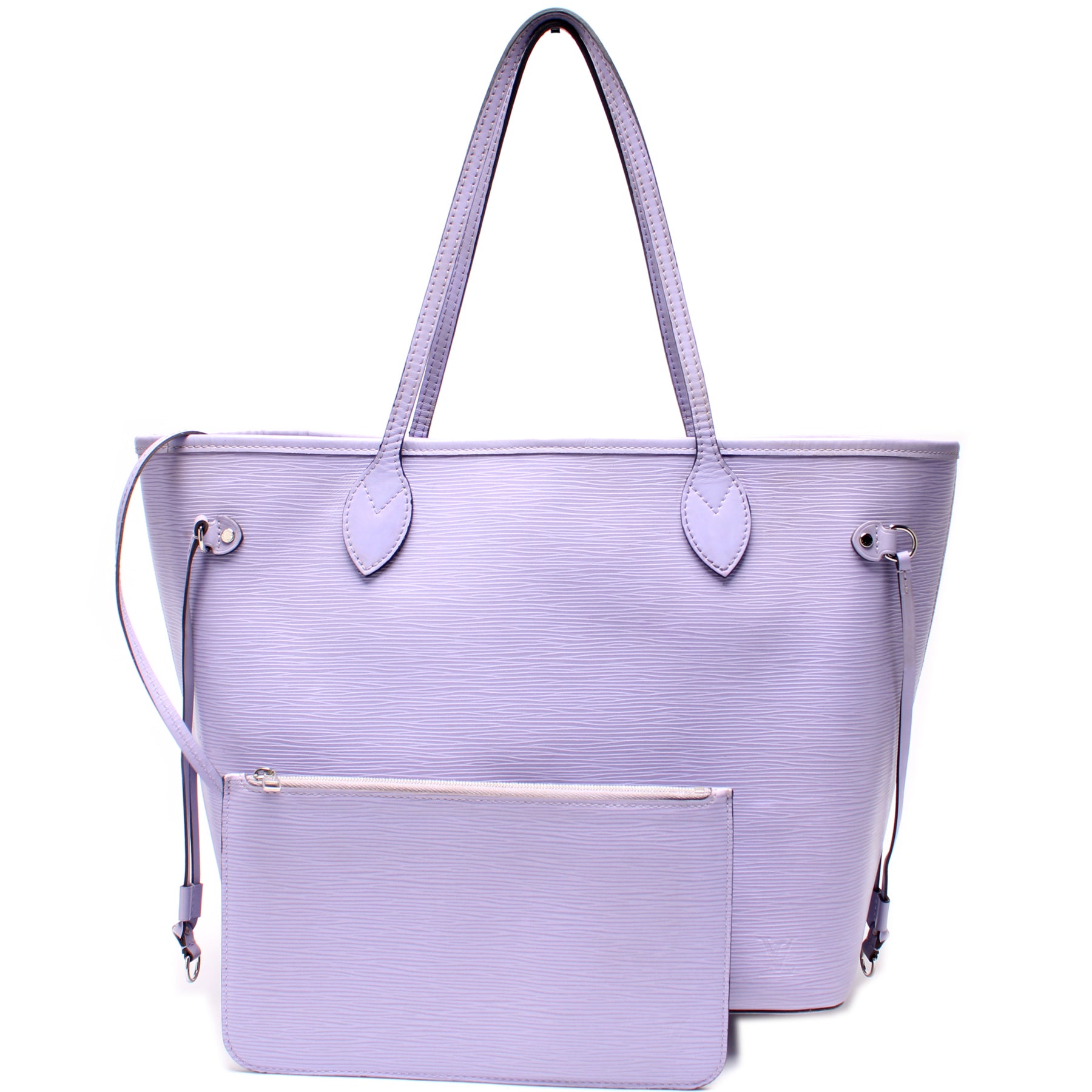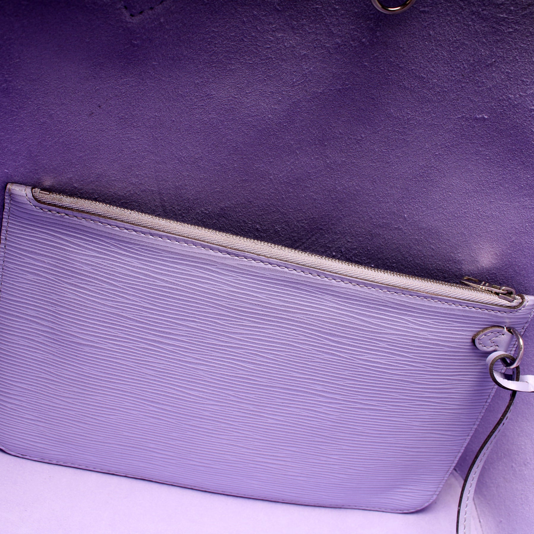 This pre-owned Louis Vuitton Neverfull MM W/ Wallet is guaranteed 100% authentic. The exterior is in the classic Louis Vuitton Epi leather.