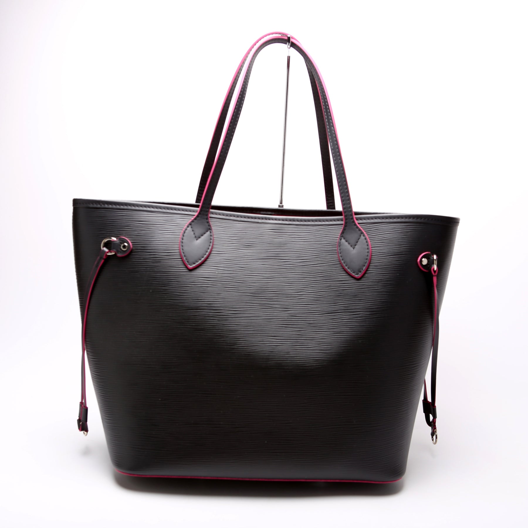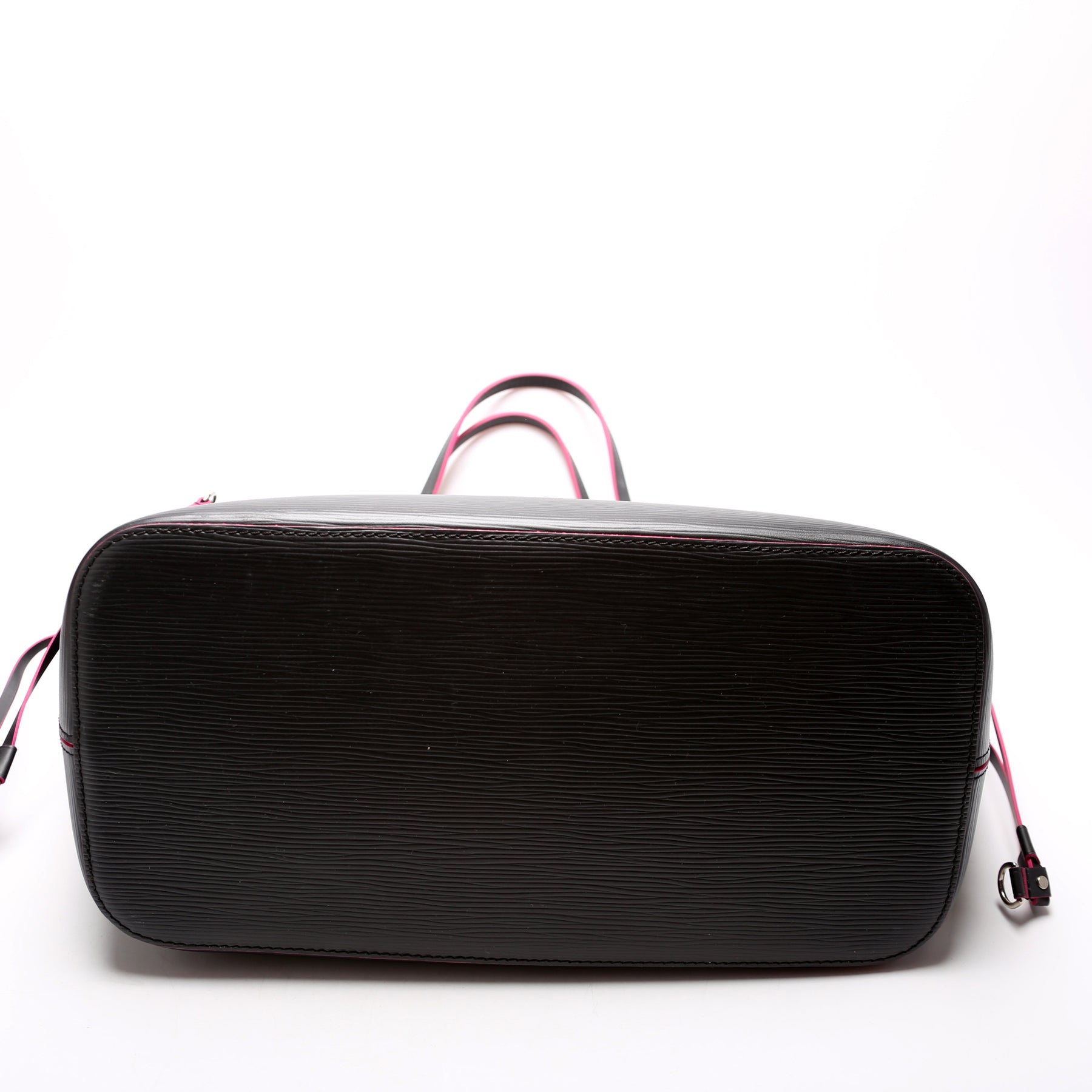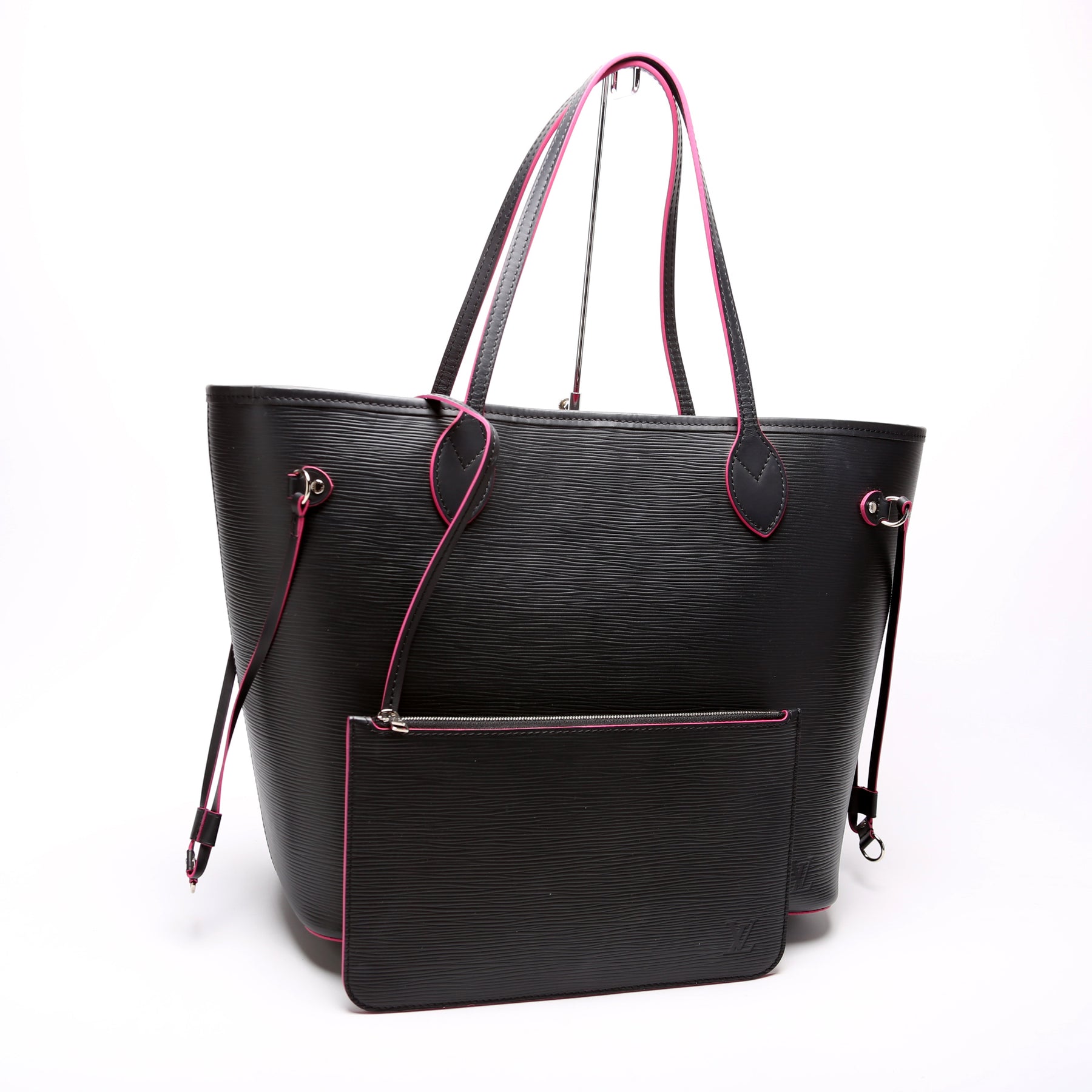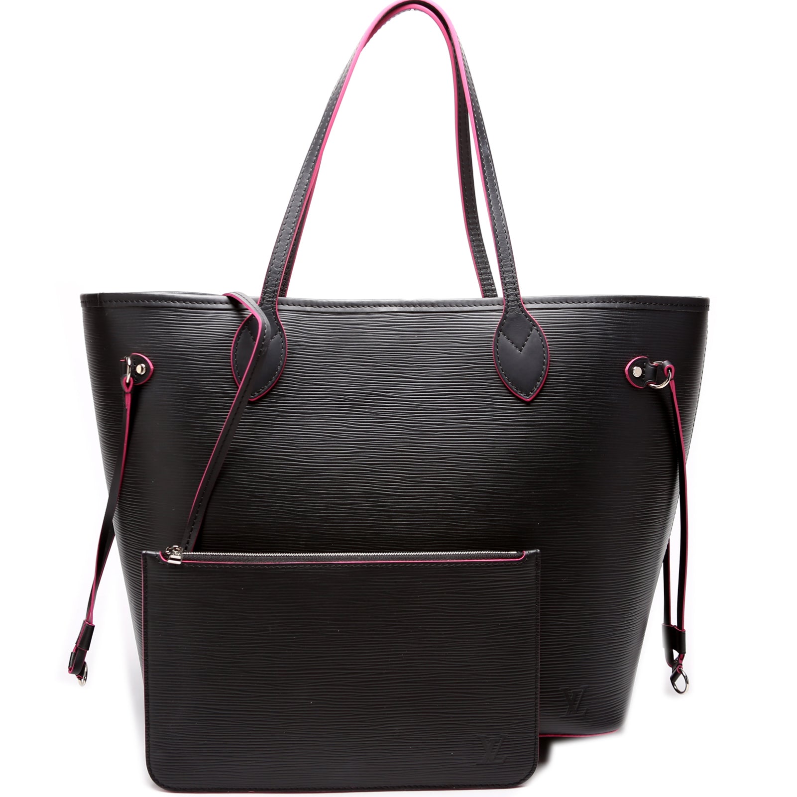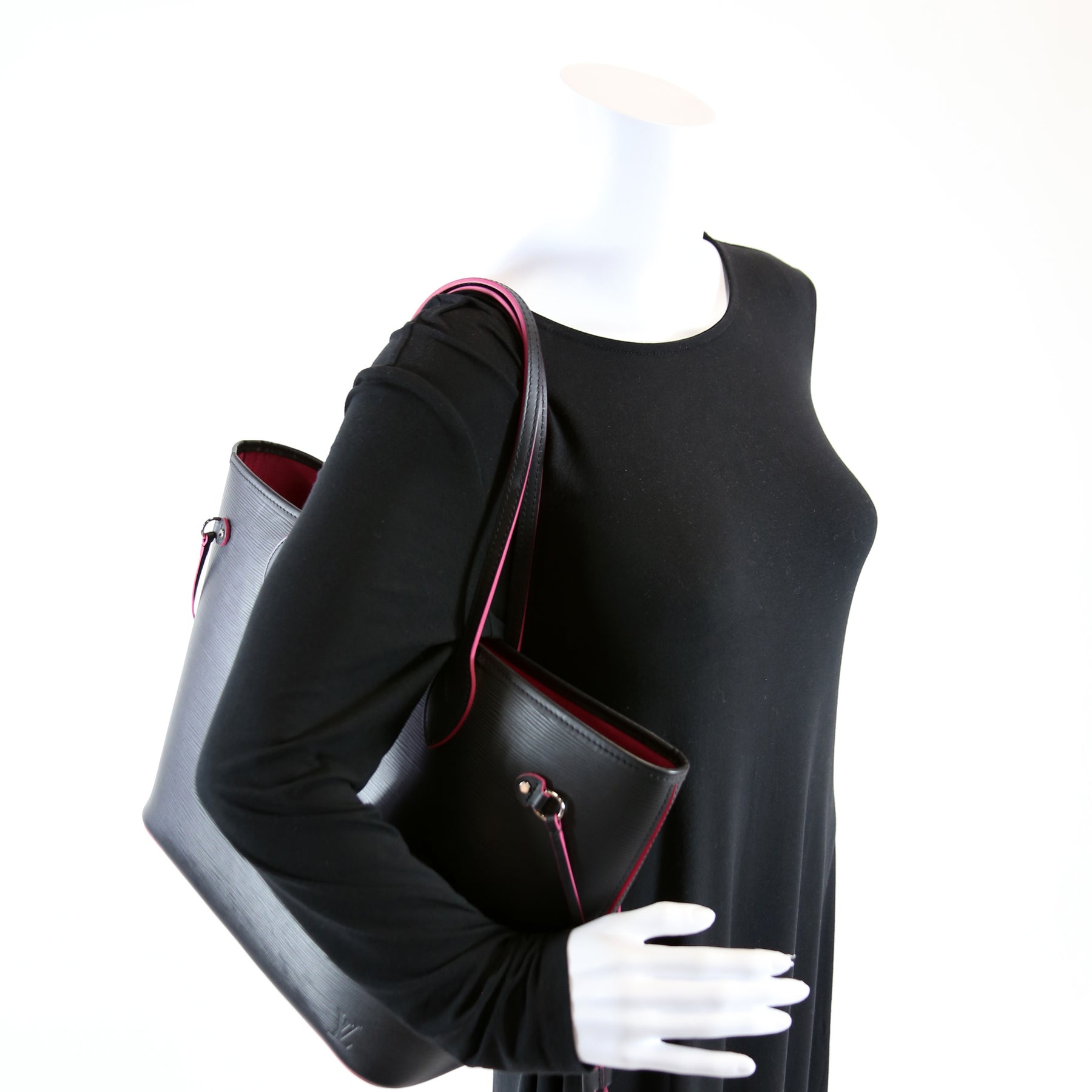 This pre-owned Louis Vuitton Neverfull MM W/Wallet is guaranteed 100% authentic. The exterior is in the classic Louis Vuitton Epi leather.