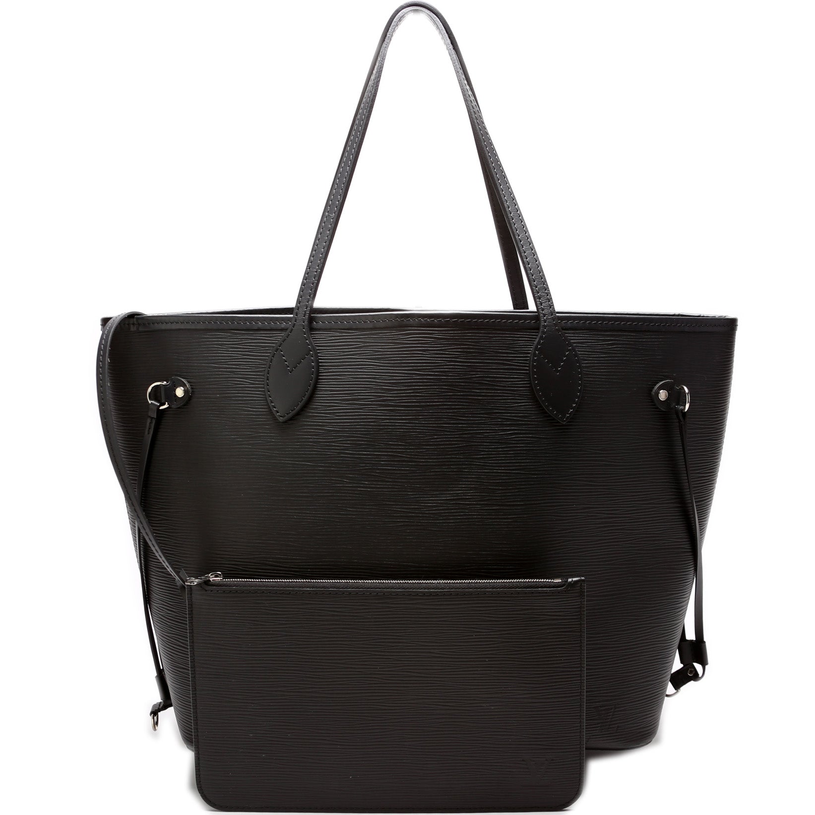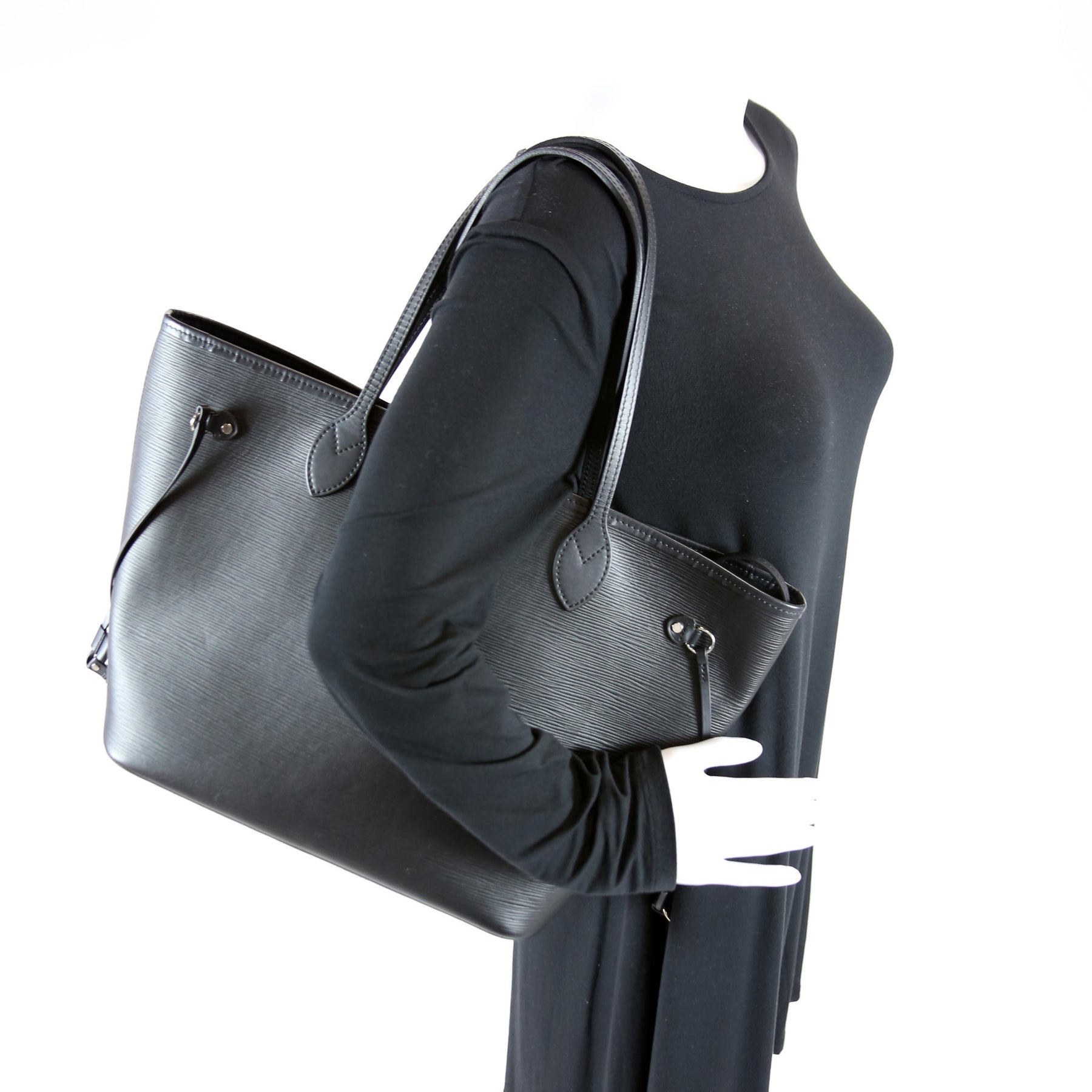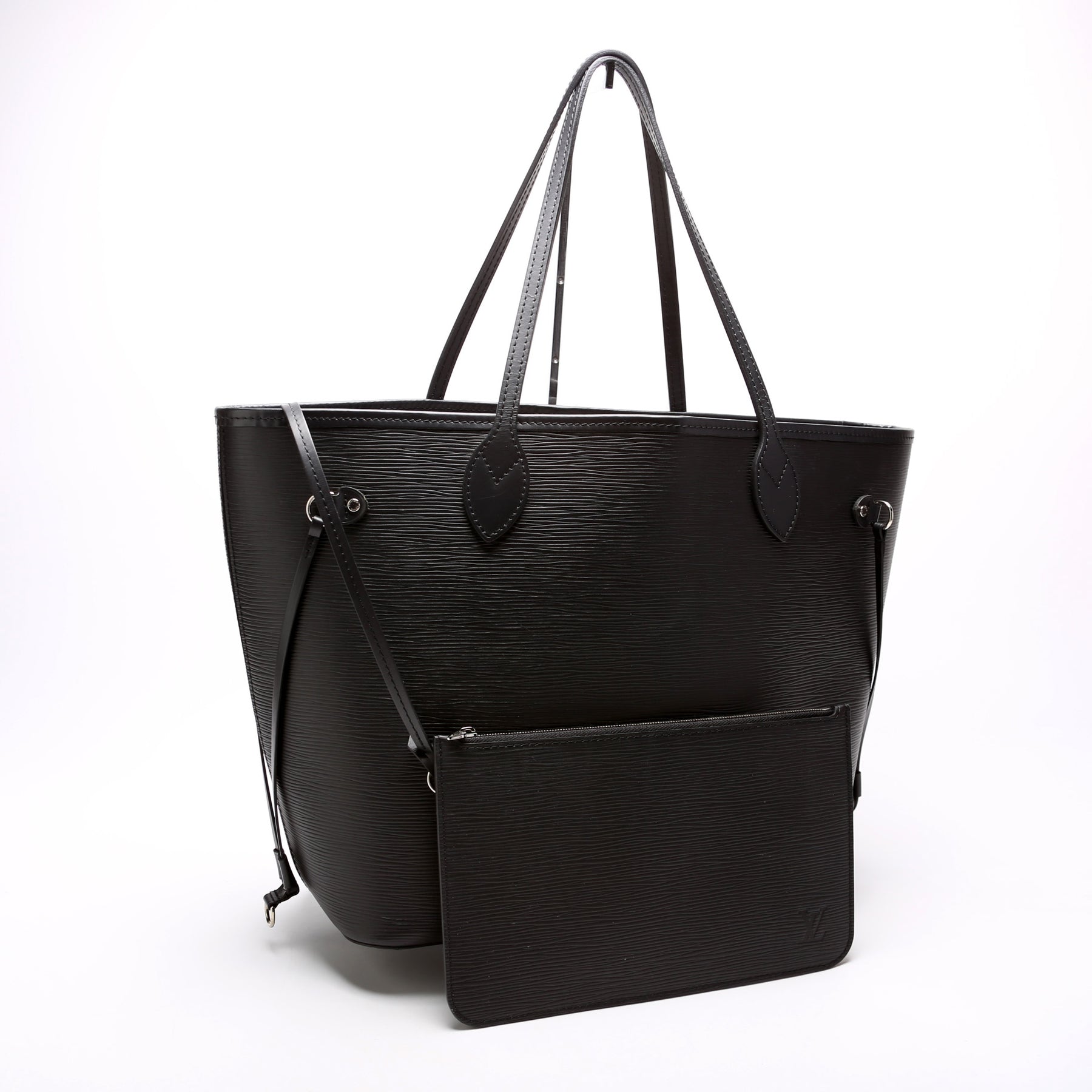 This pre-owned Louis Vuitton Neverfull MM W/ Wallet is guaranteed 100% authentic. The exterior is in the classic Louis Vuitton Epi leather.