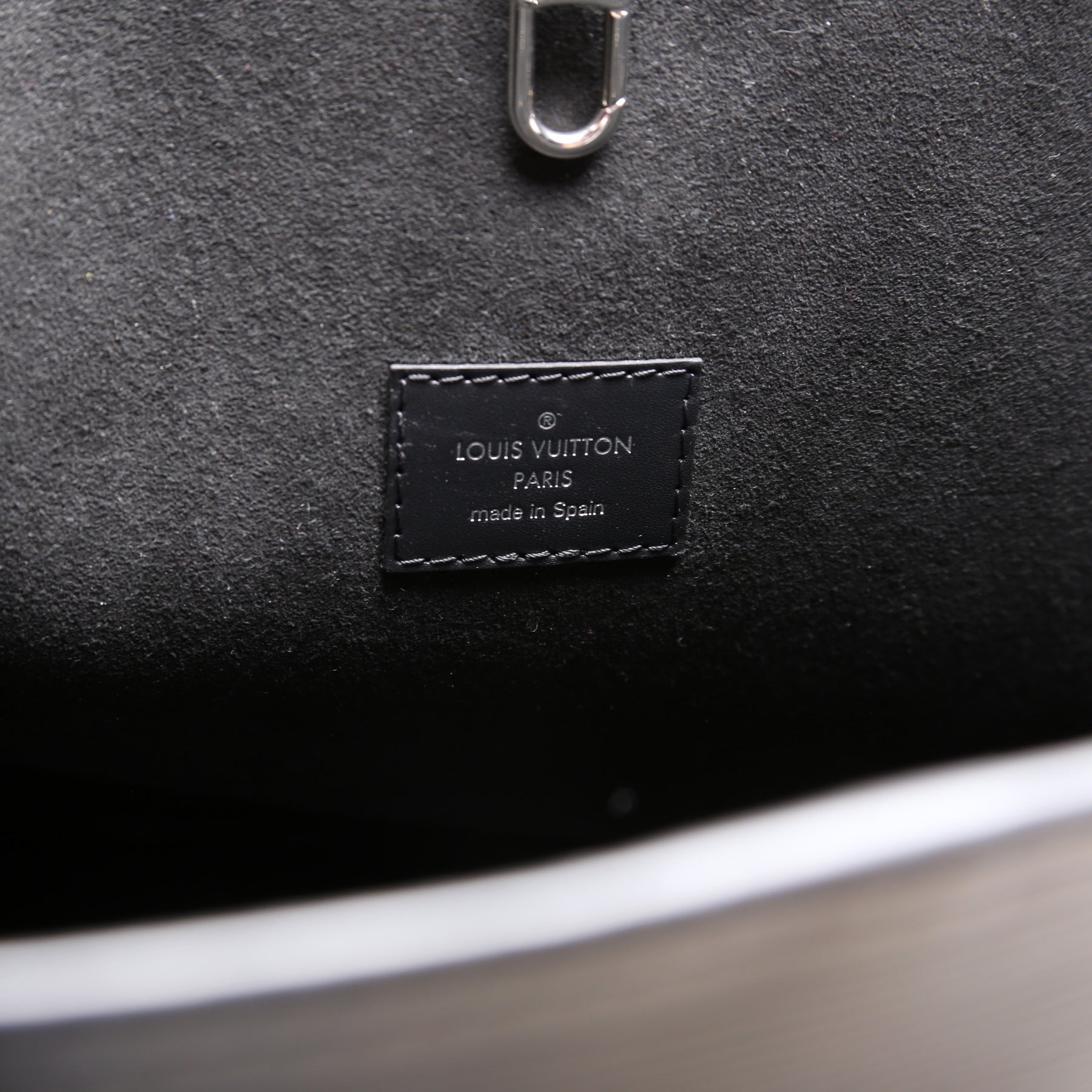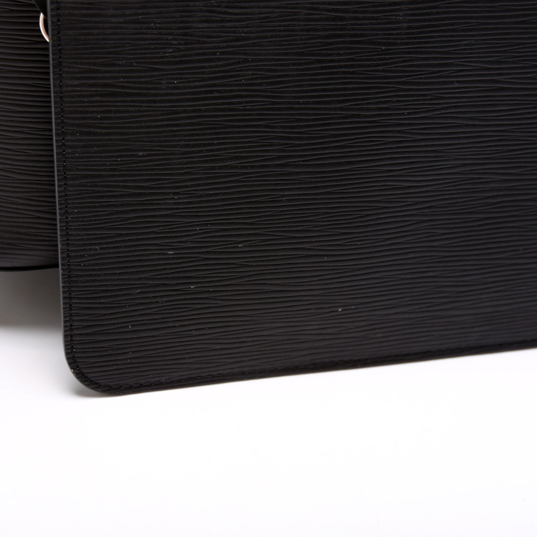 Interior: The interior shows light wear and discoloration. The pochette shows minor scuffs and wear to the leather.